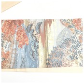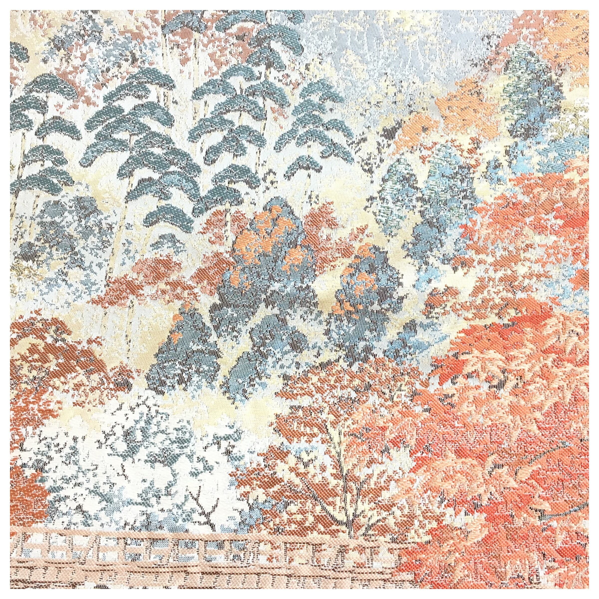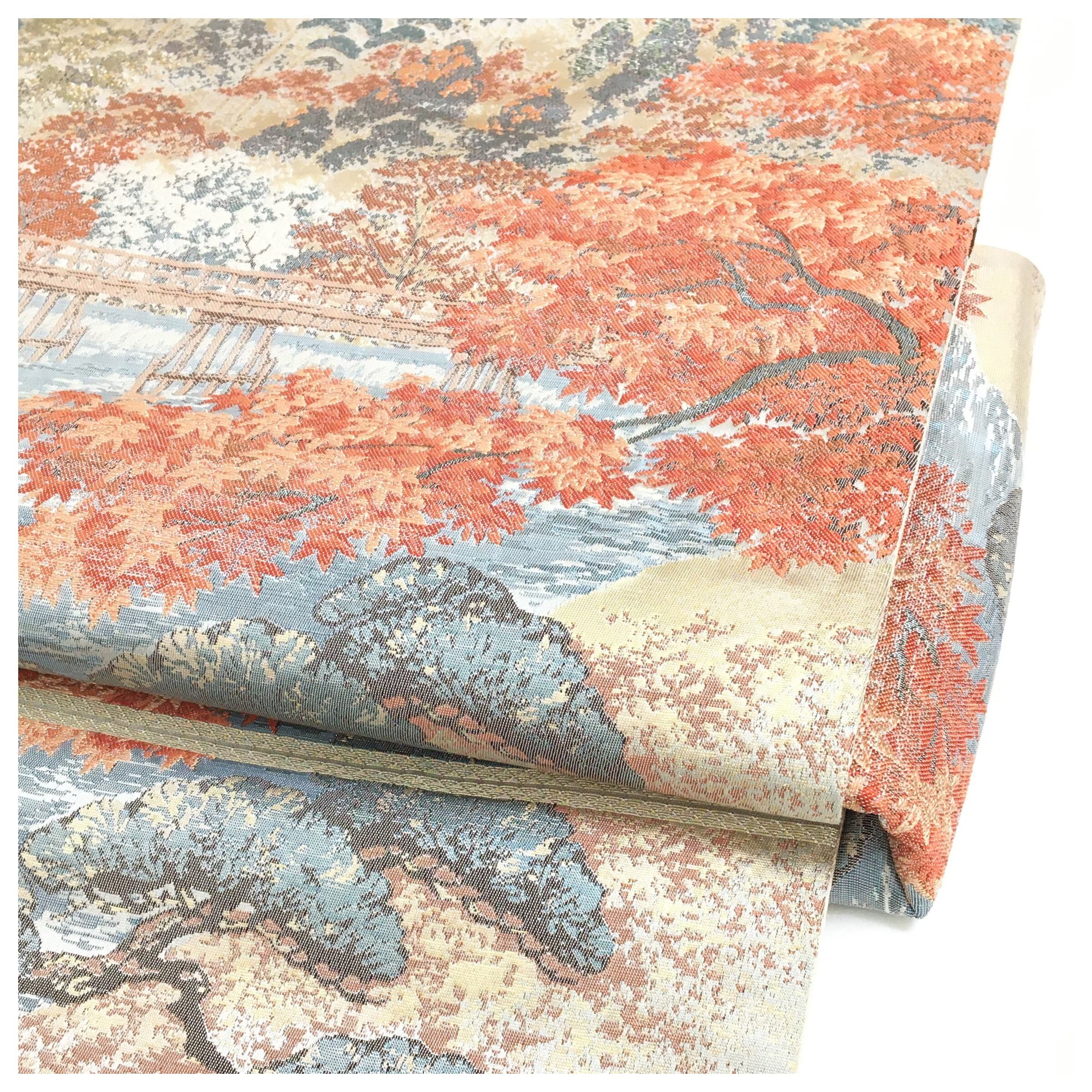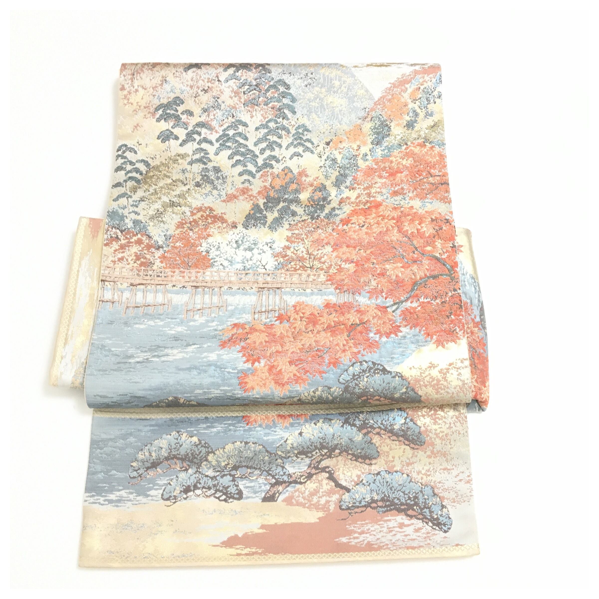 正絹 楽帯 袋帯 織り 風景柄 クリーム 二部式 二重太鼓 作り帯 です。