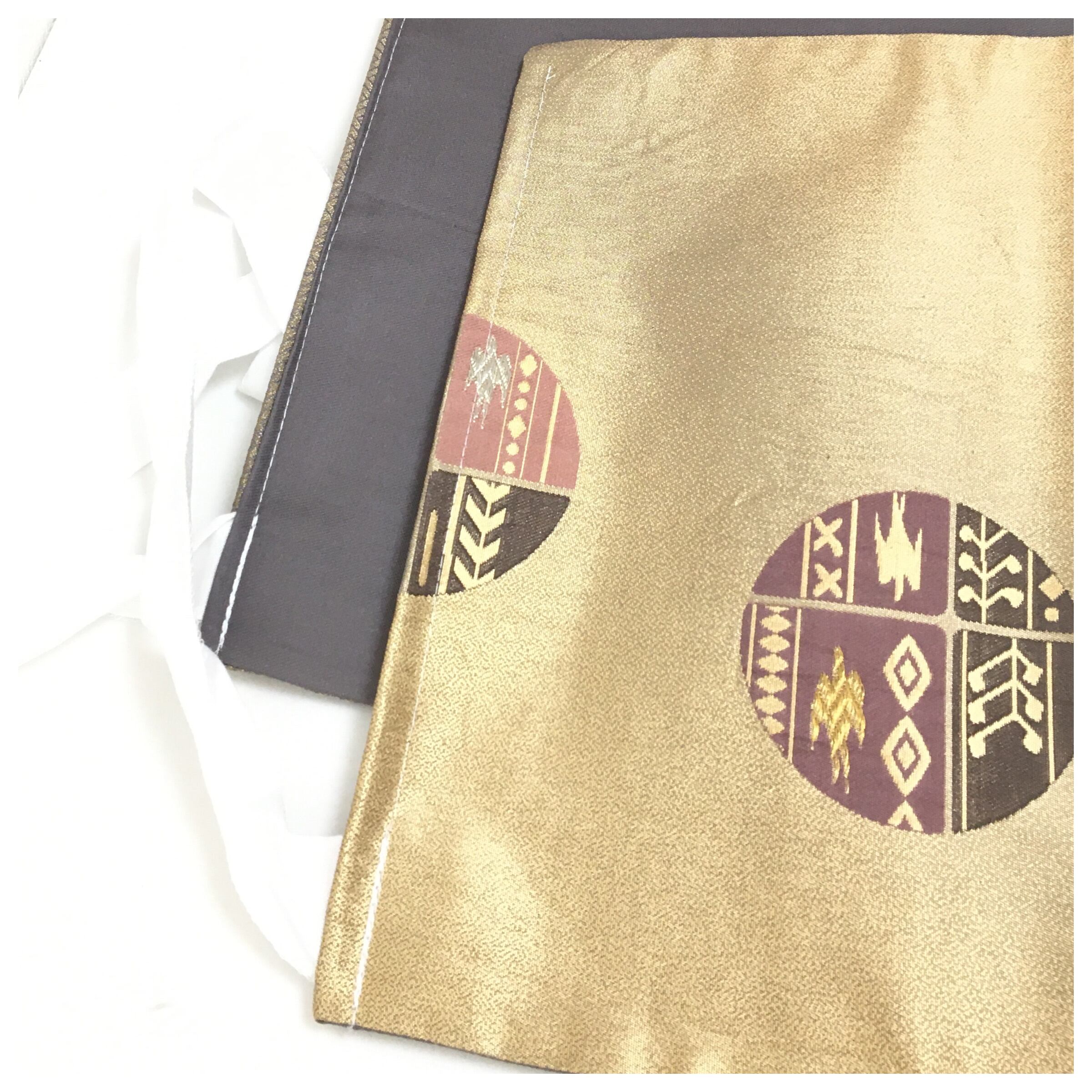◇作り帯◇ 正絹 金彩 丸紋 薄手 二重太鼓 二部式 付け帯
