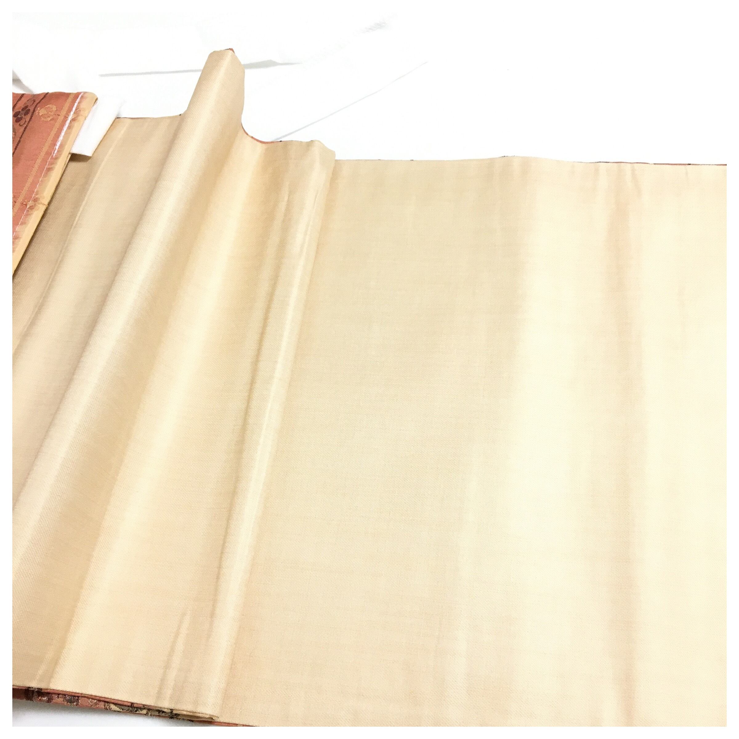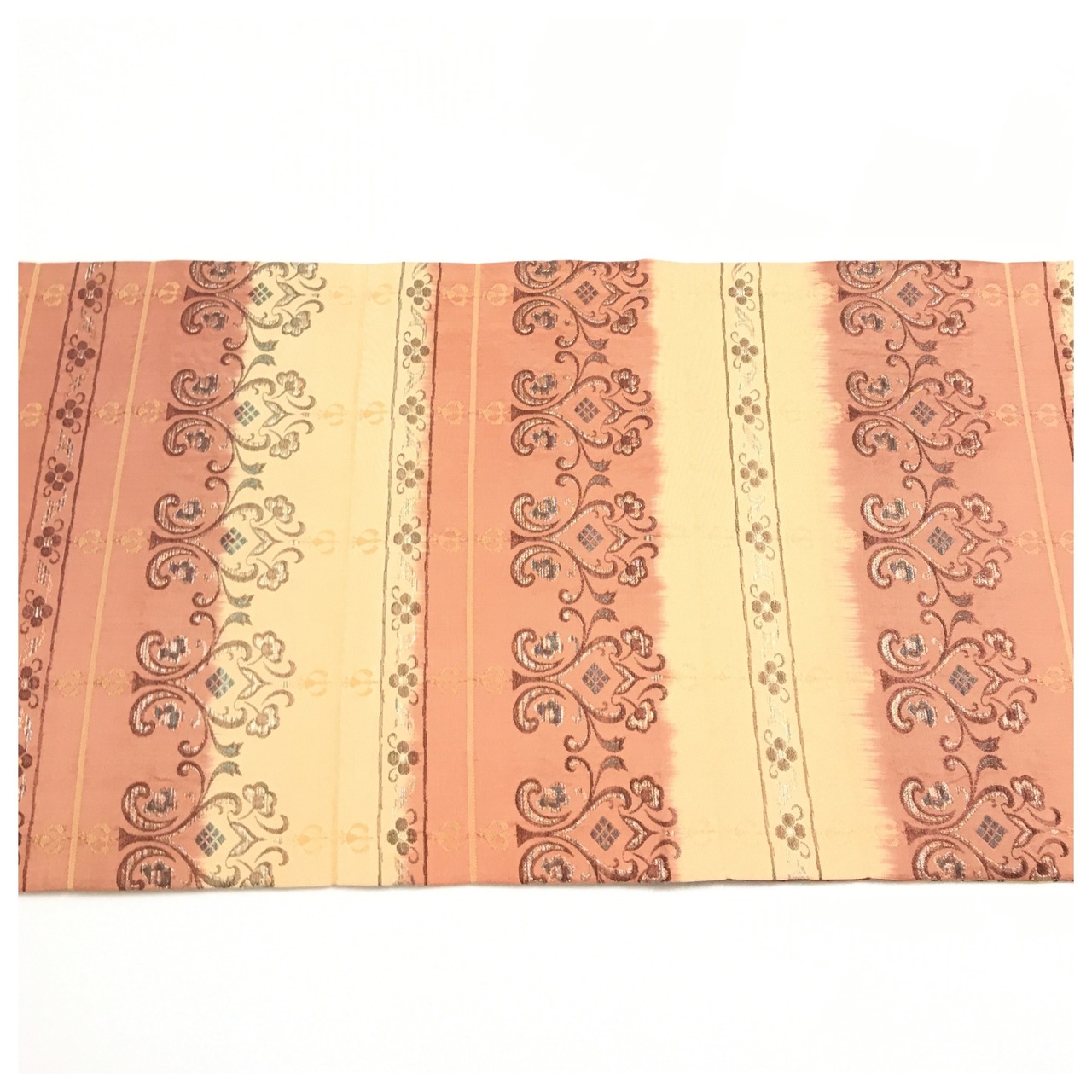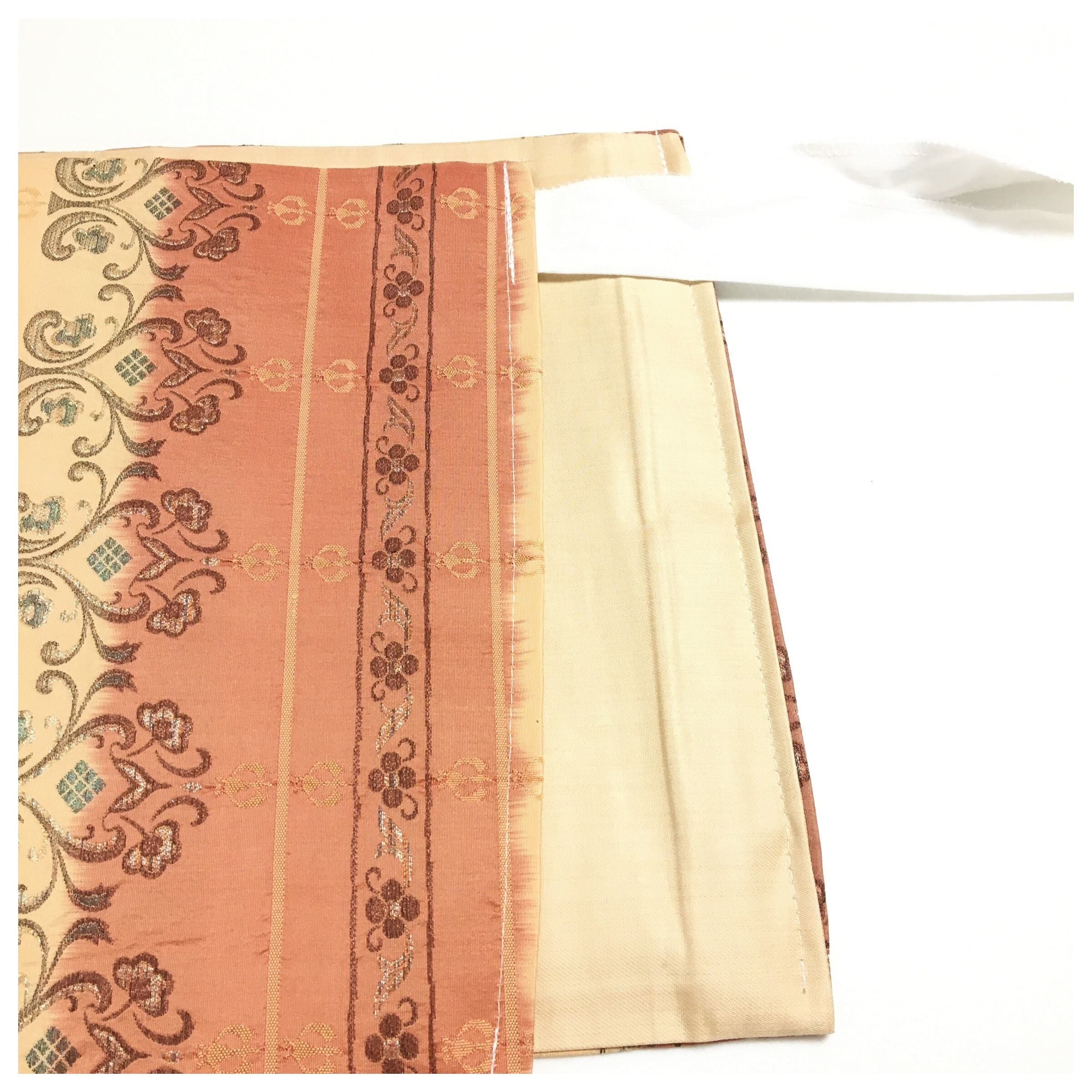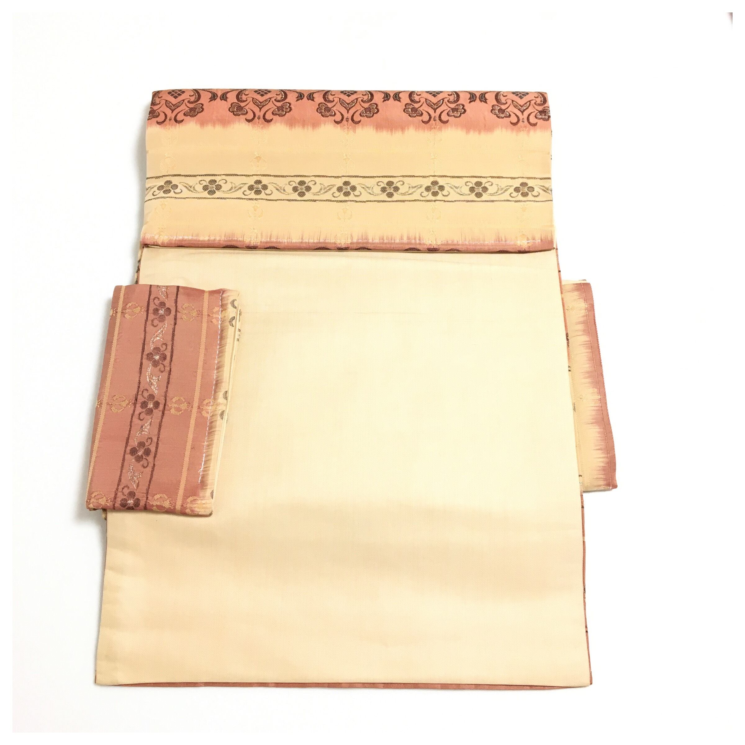 正絹 楽帯 袋帯 染分け 横段 華 二部式 織り柄 二重太鼓 作り帯 です。
