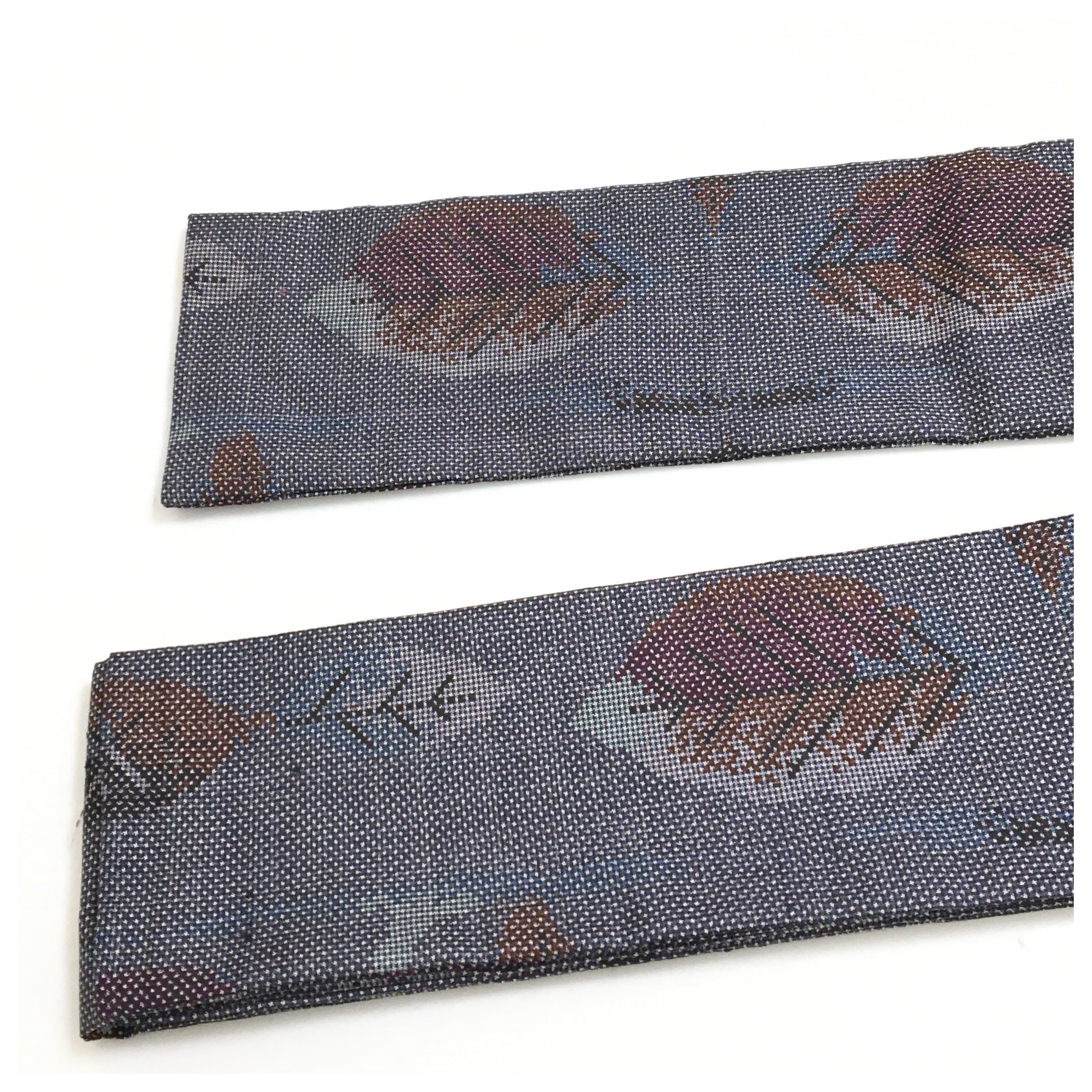 美品 正絹 角帯 お召 葉っぱ柄 個性派 男物 長尺388 巾9.7 です。