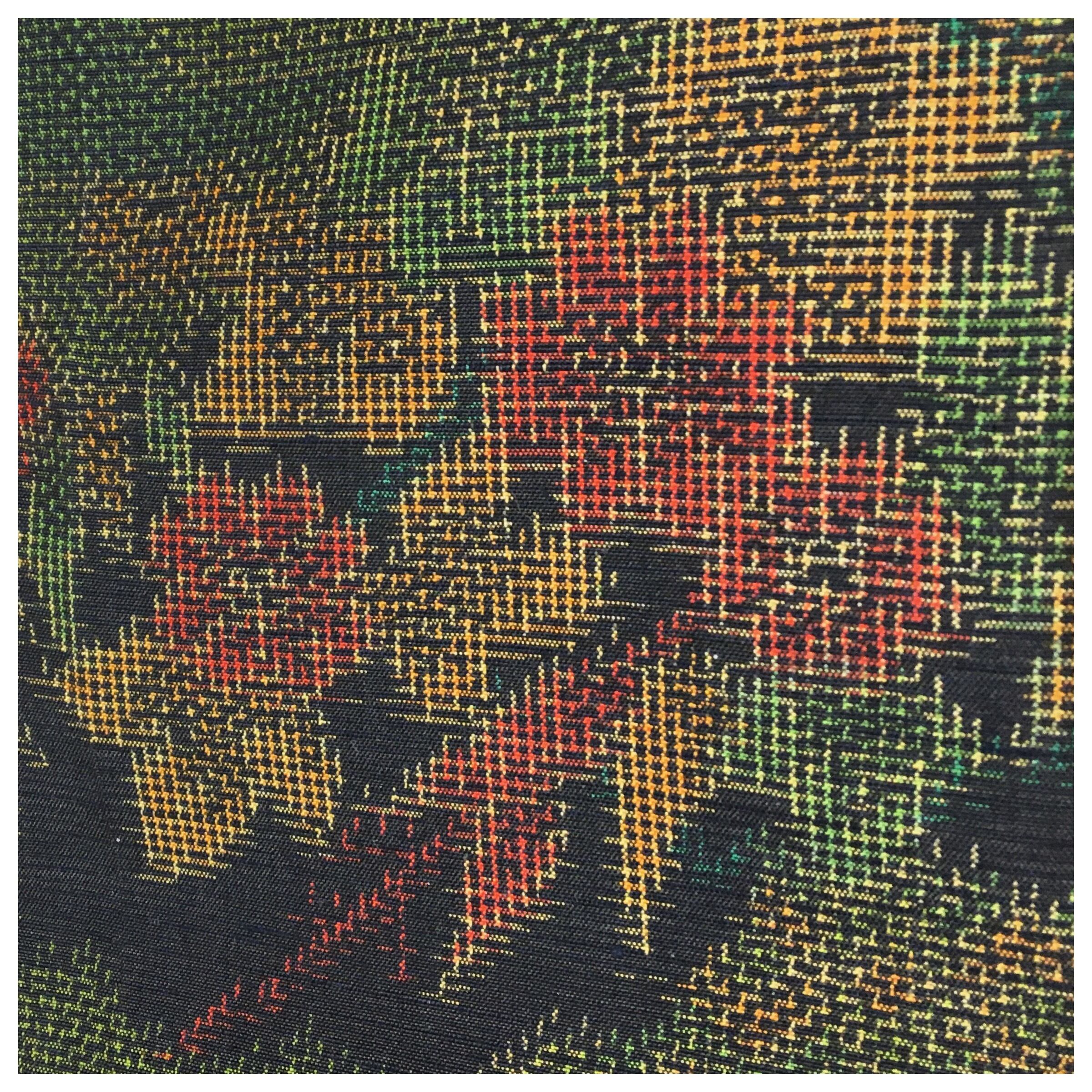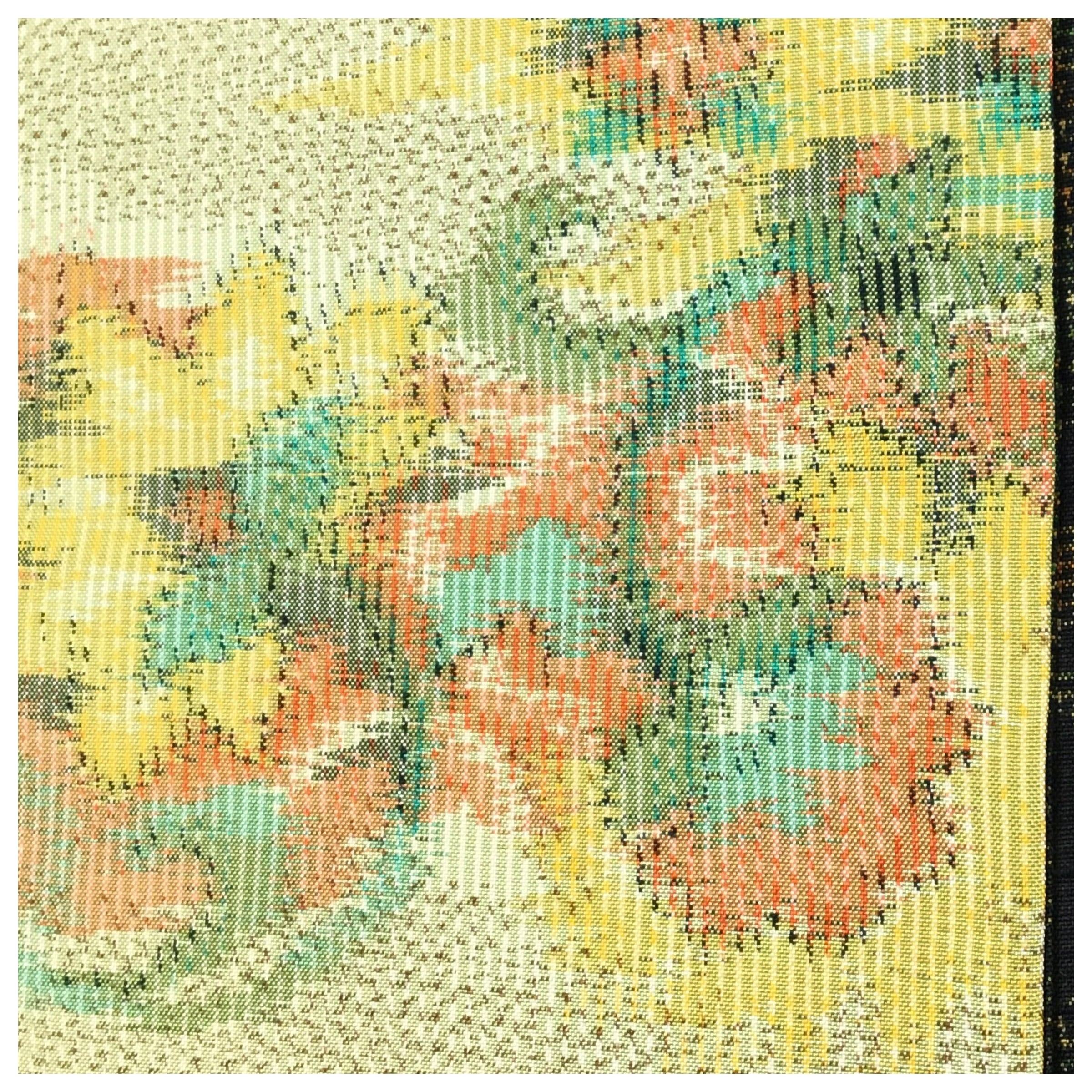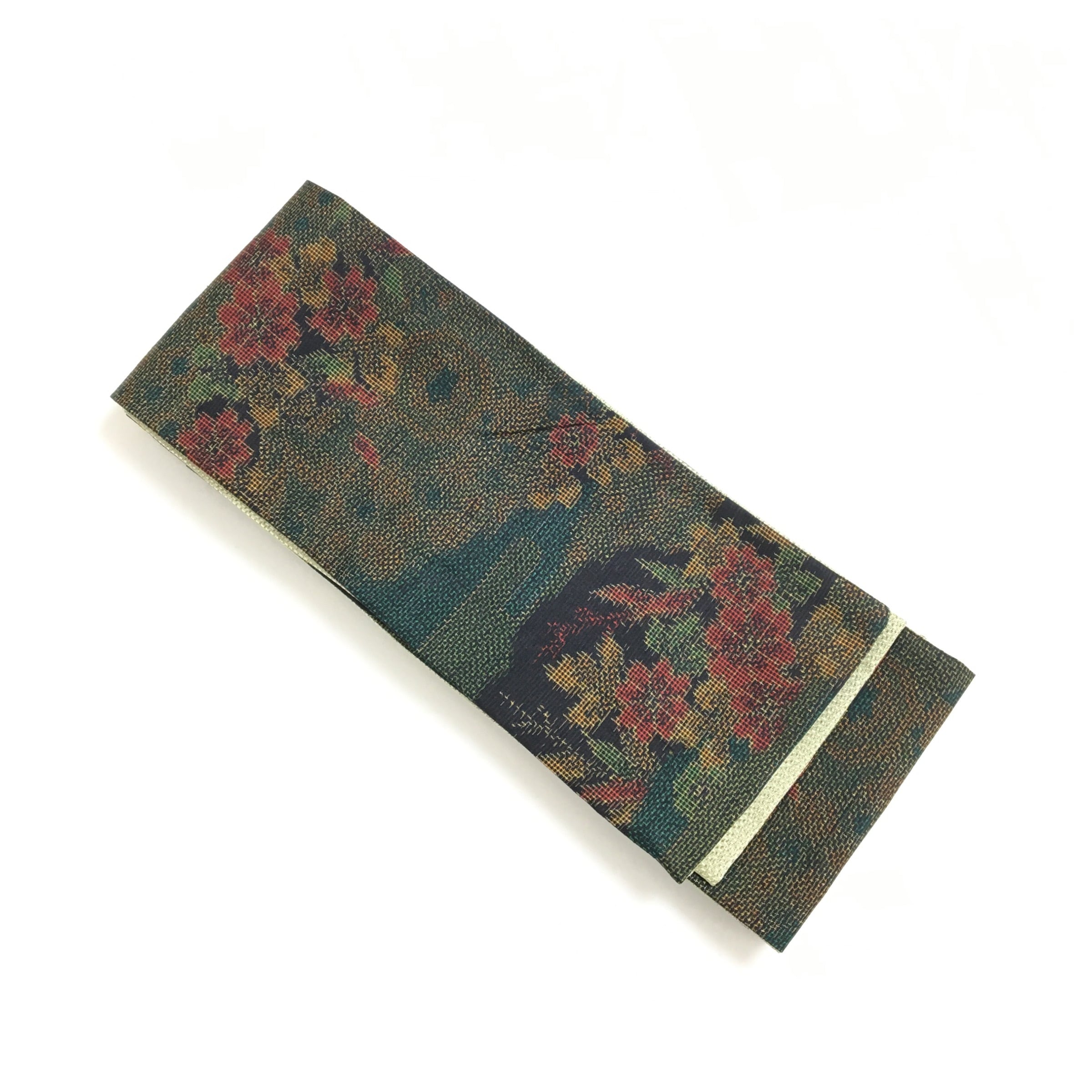 美品 上質 正絹 紬 半幅 グリーン系 両面違い 長尺460cm