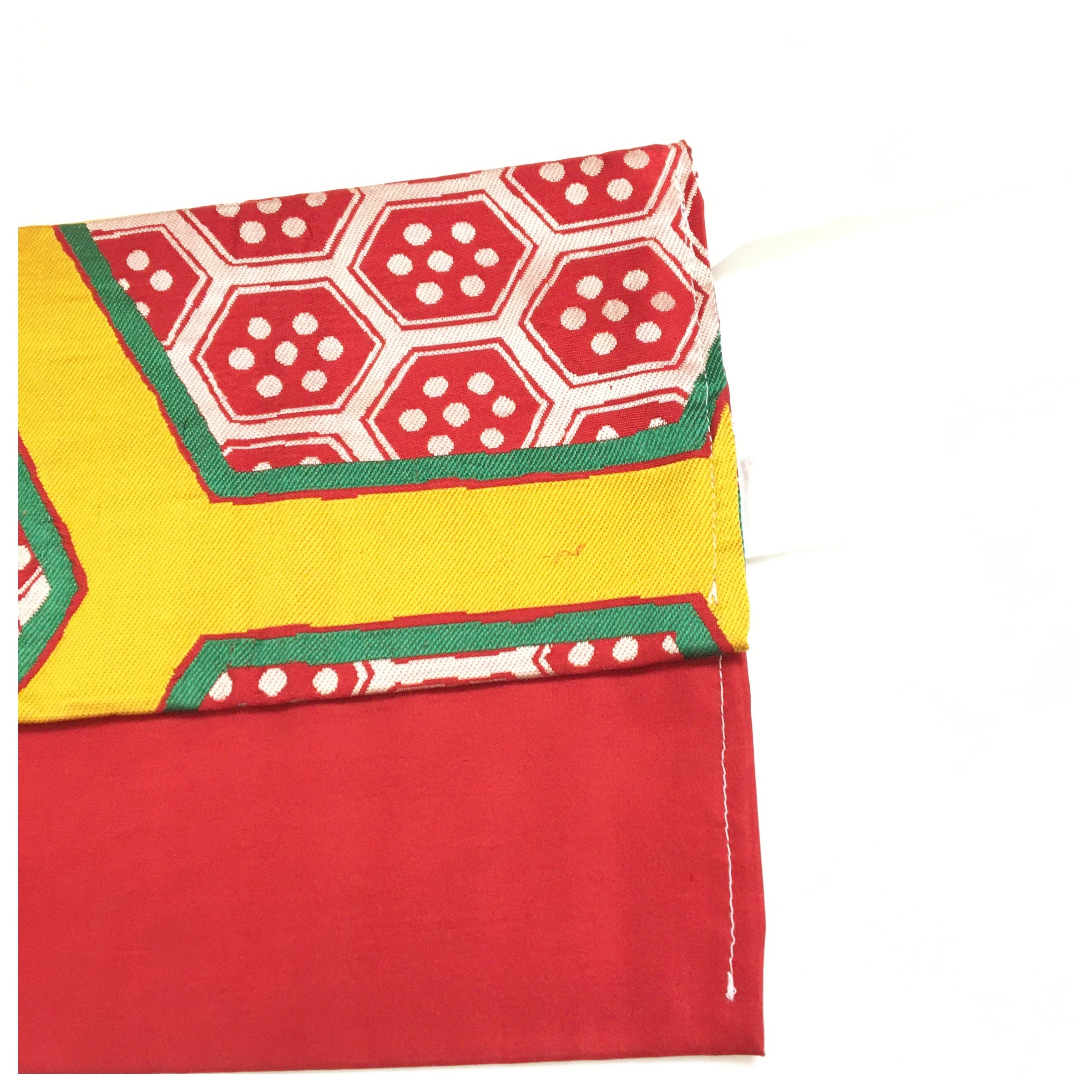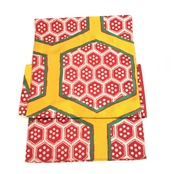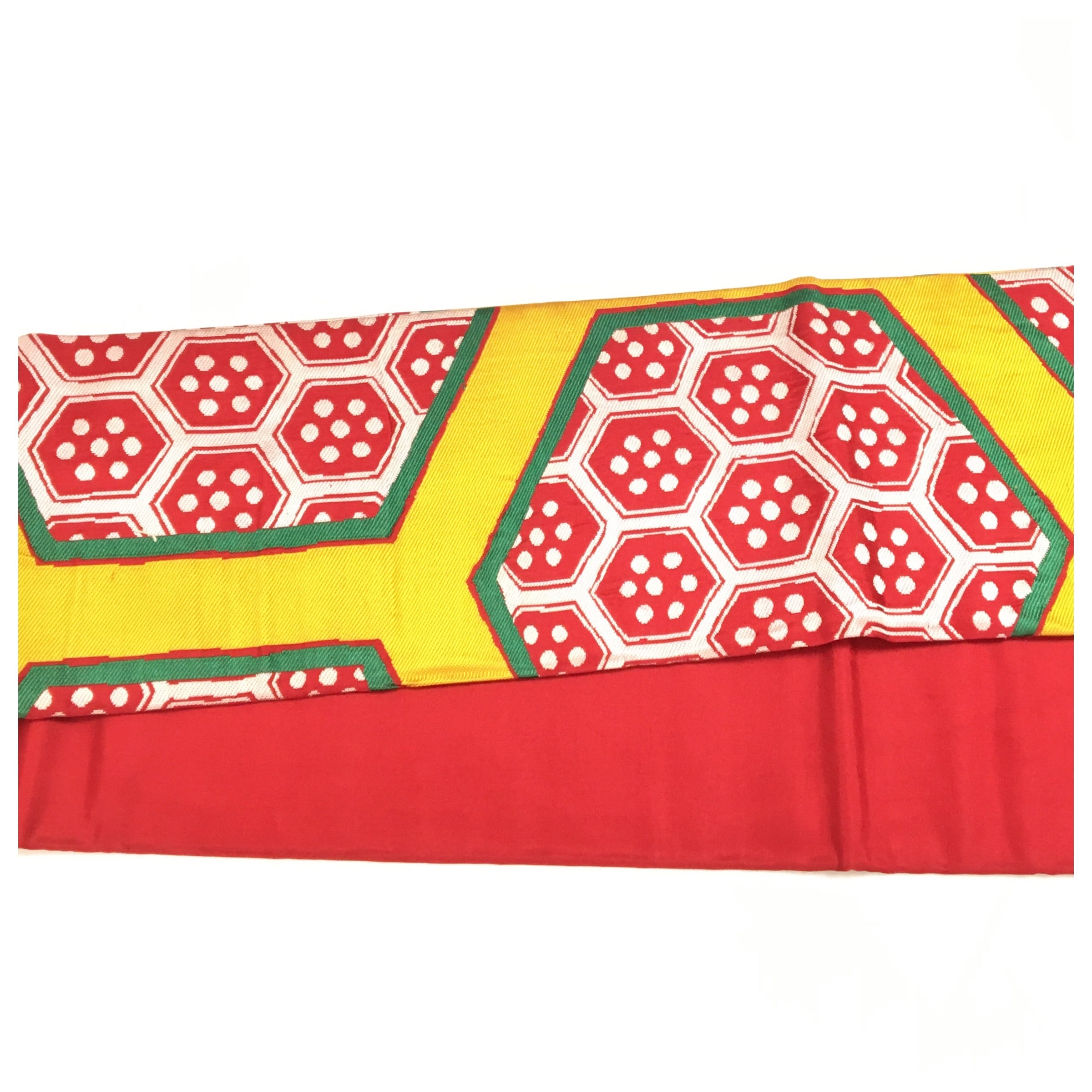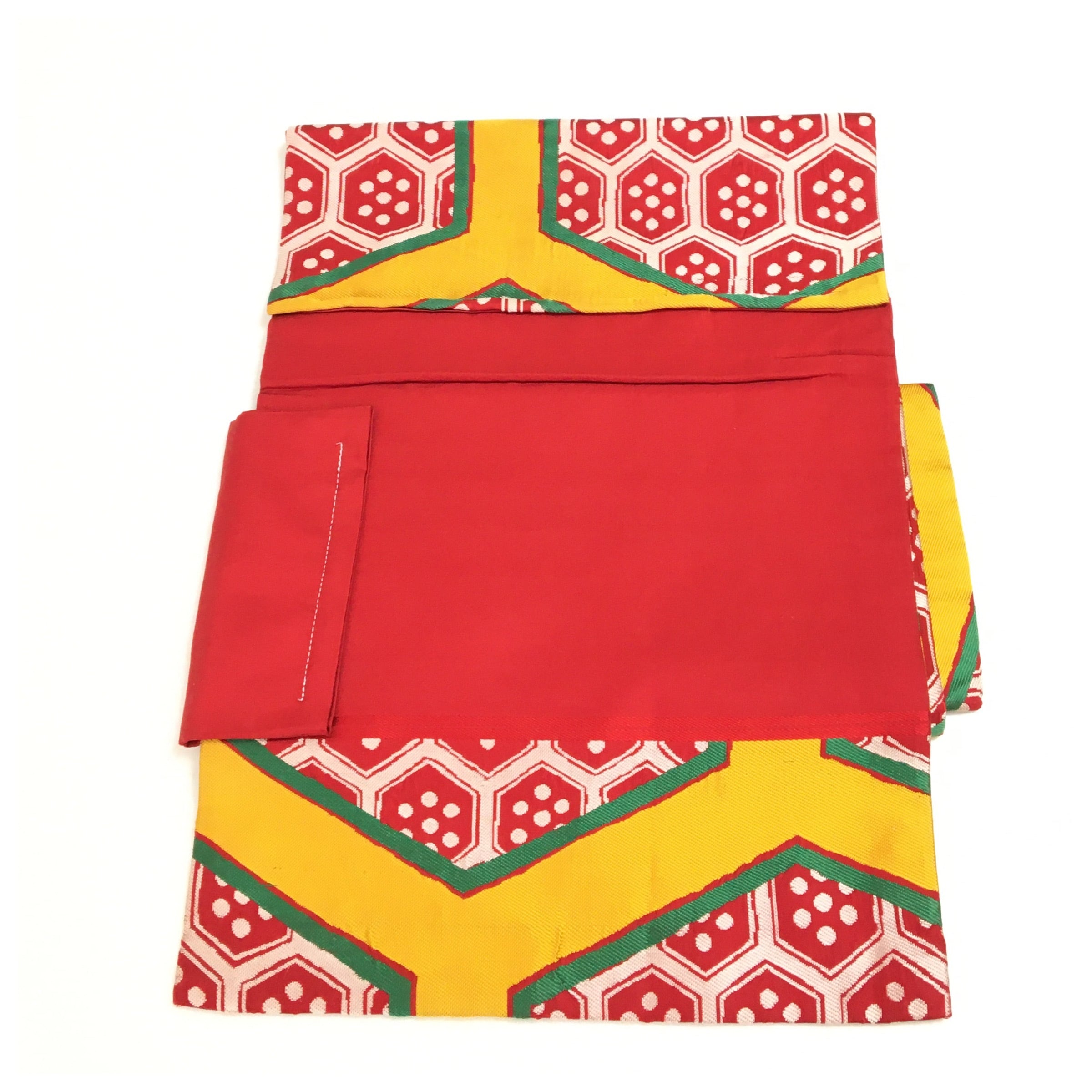 正絹 アンティーク 赤 黄色 名古屋帯 二部式 作り帯 簡単装着 です。