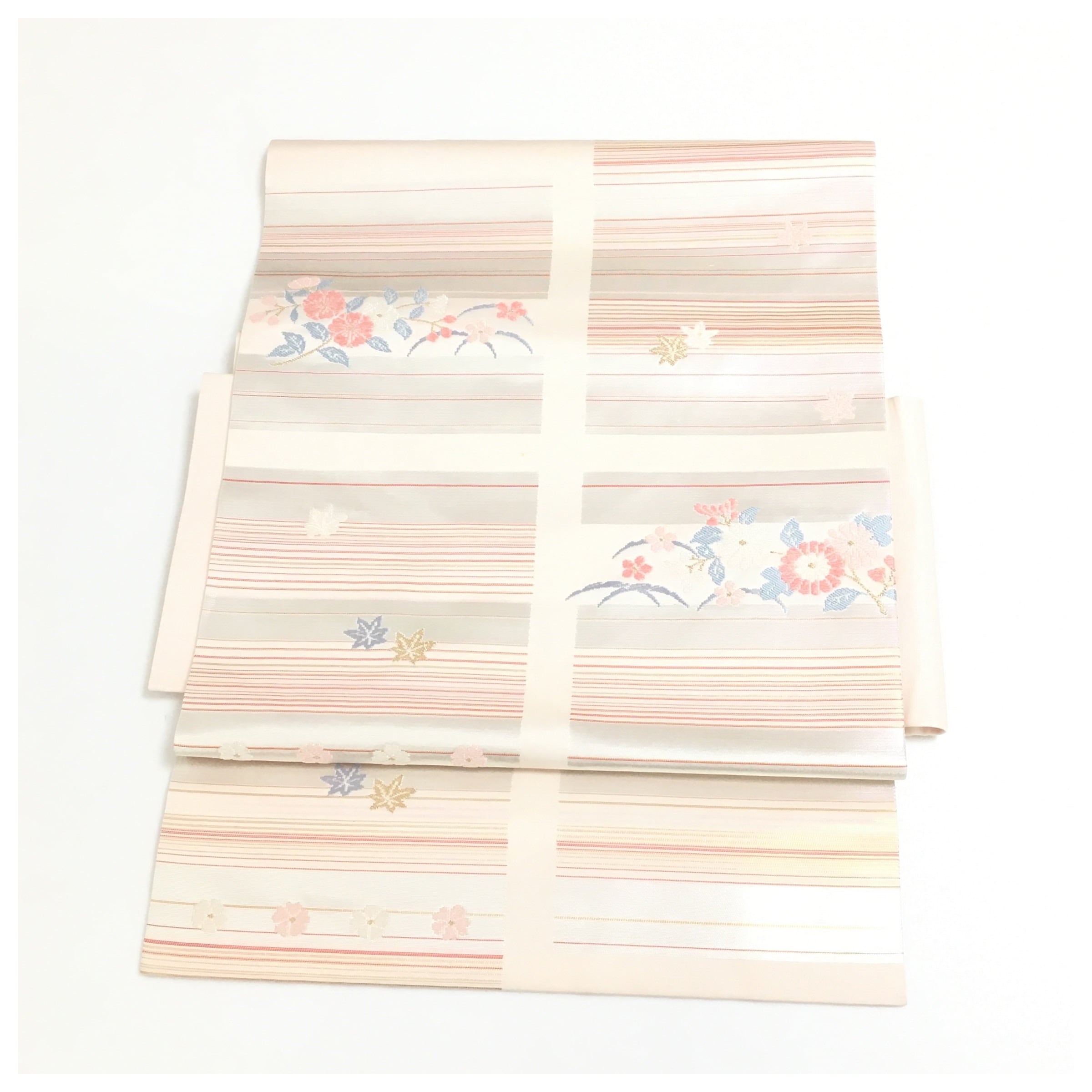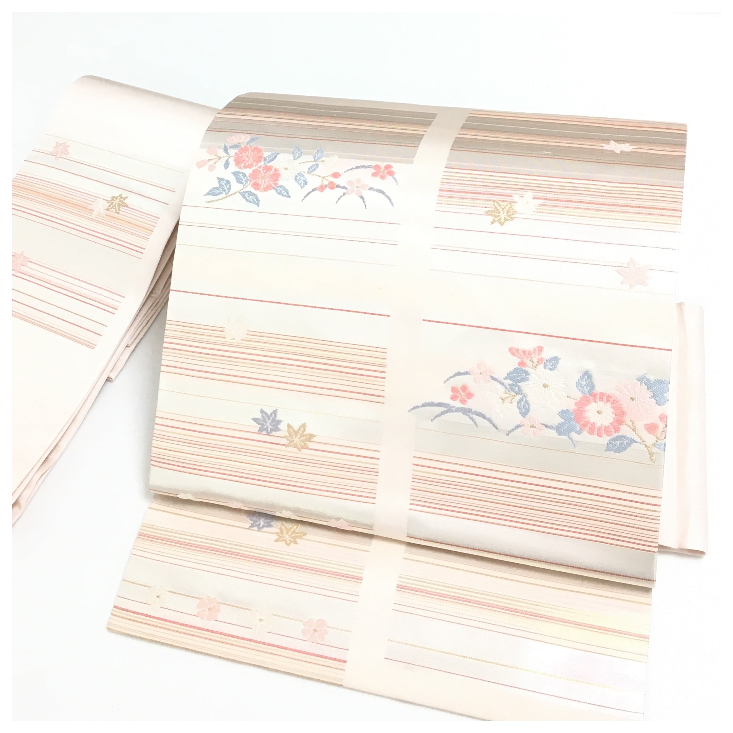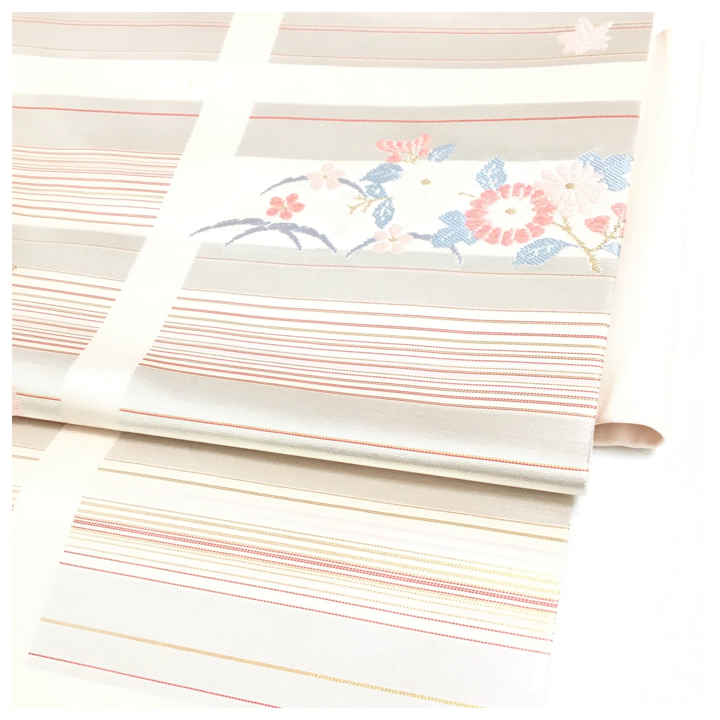正絹【二部式 名古屋帯】クリーム 花模様 簡単装着 和装