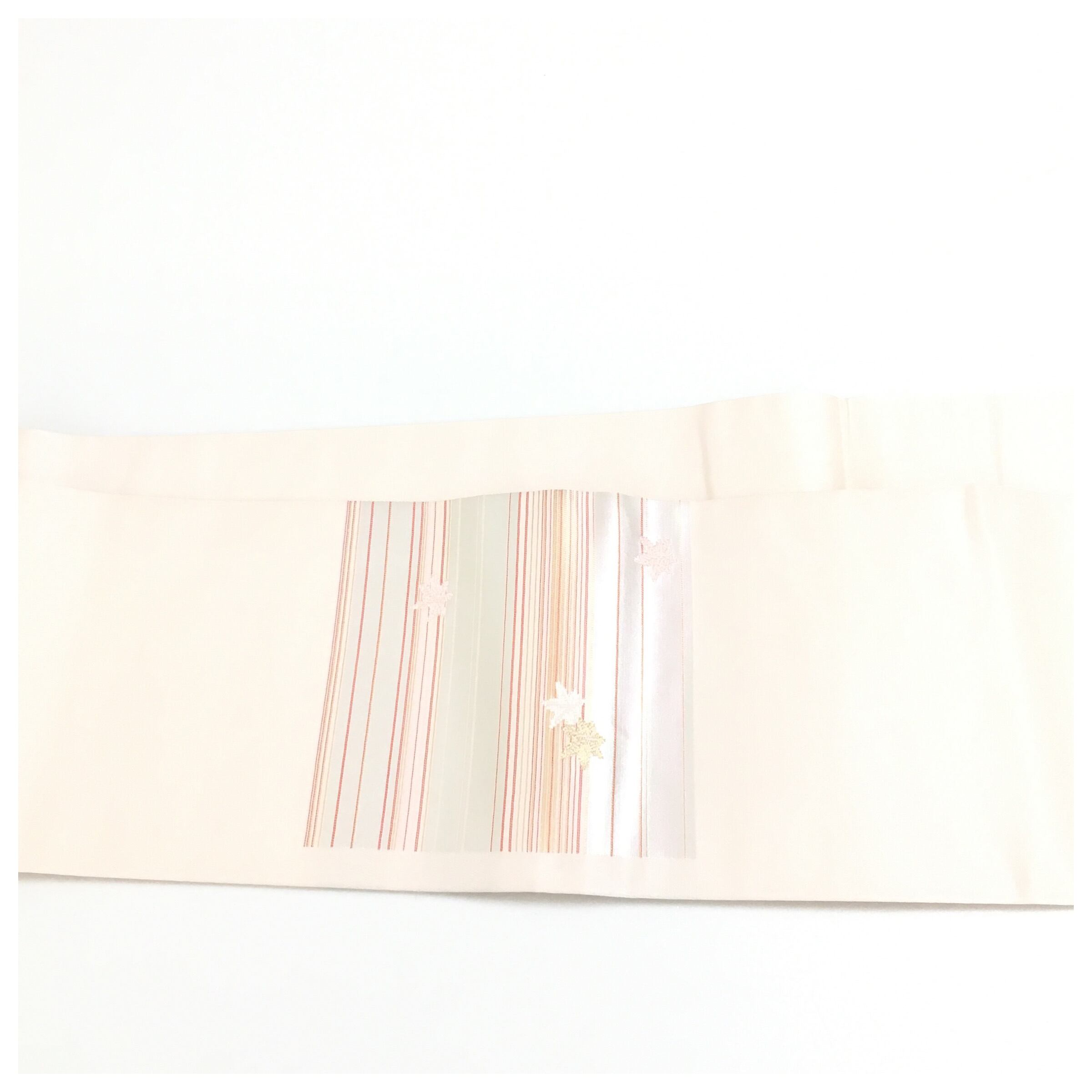明るいクリーム色のやや厚手の名古屋帯のお仕立て品です。