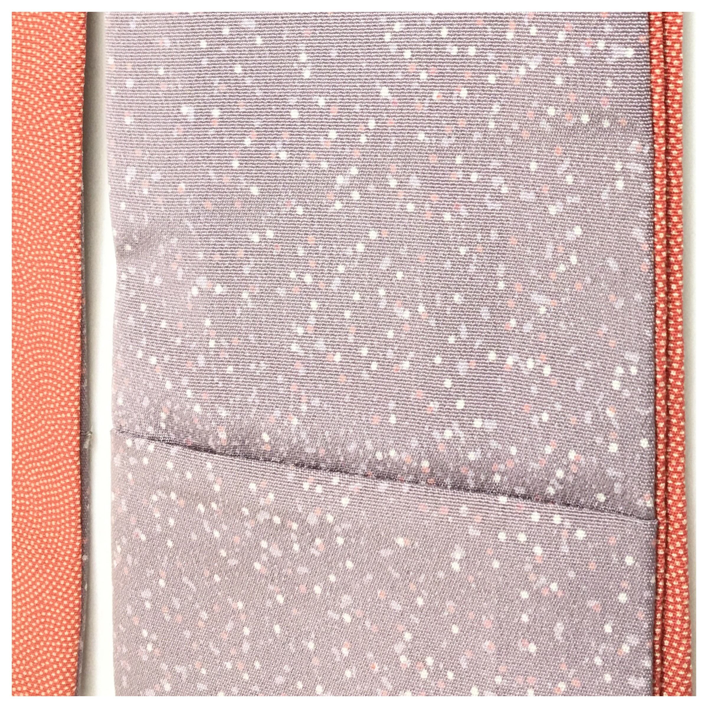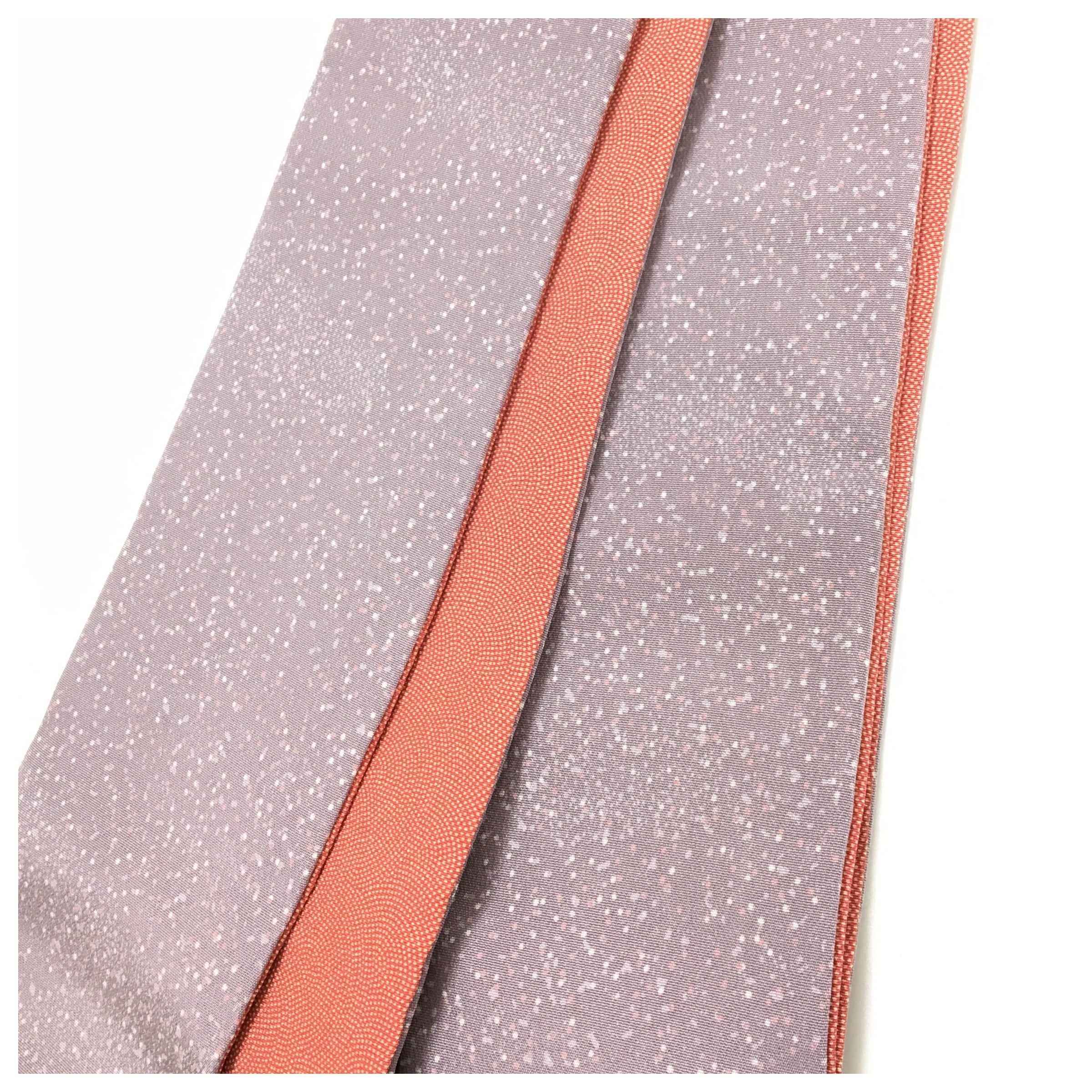 薄い紫にあられ模様の小紋と鮫小紋の個性的なお品です。