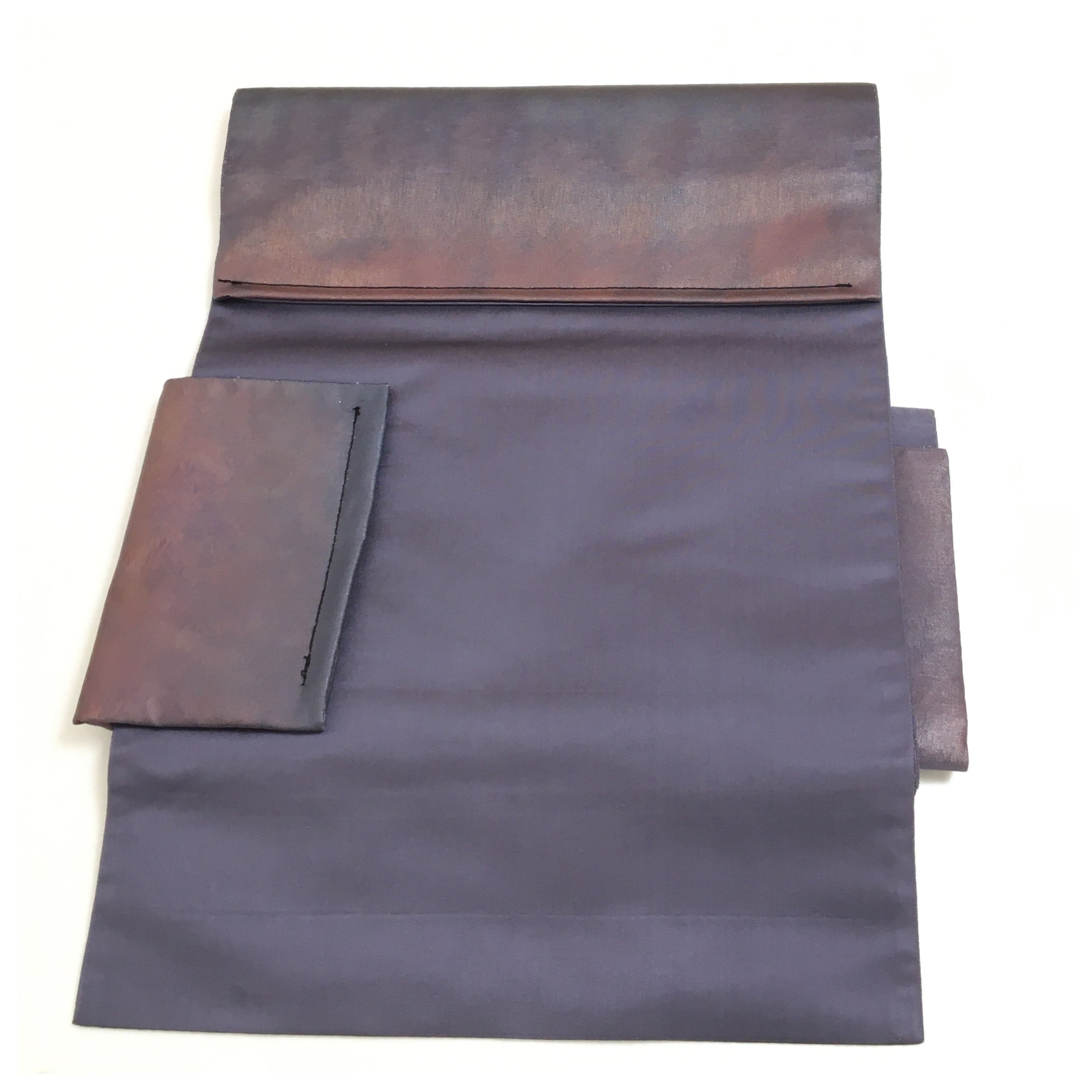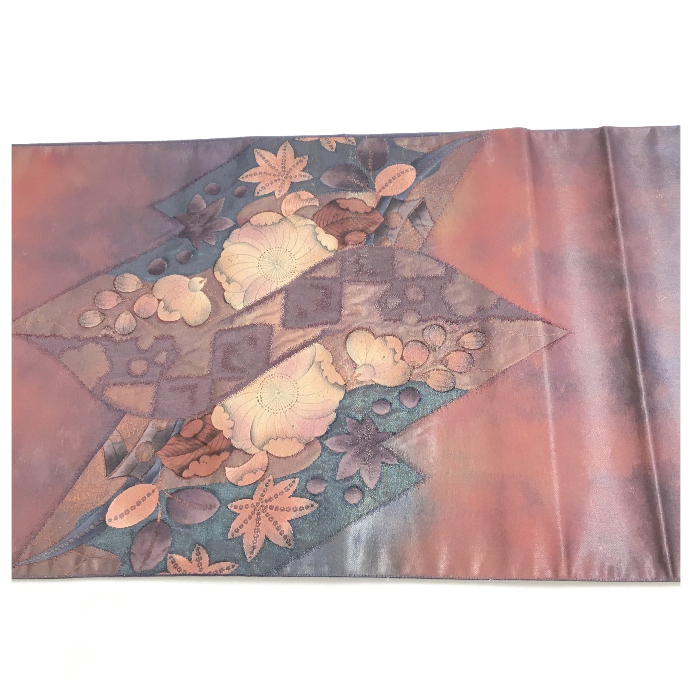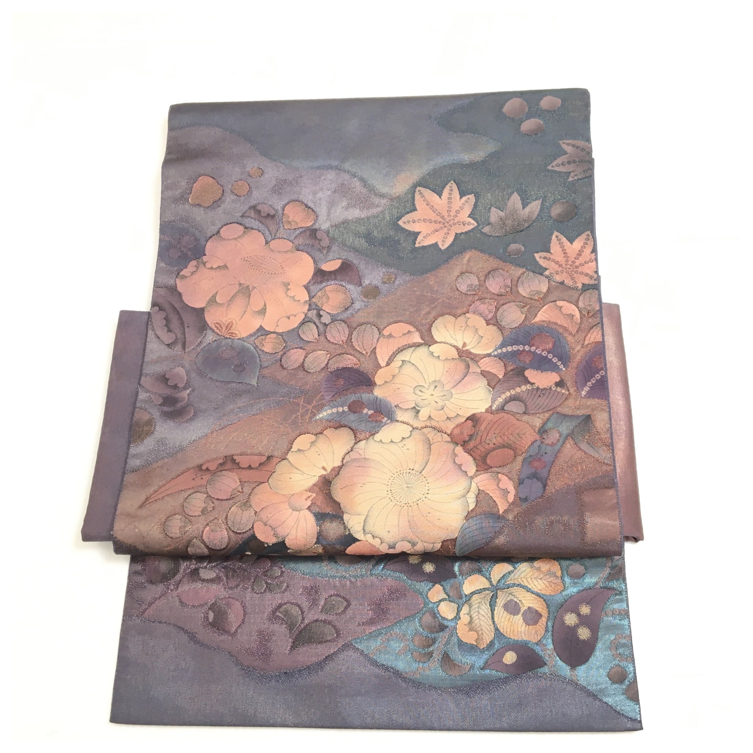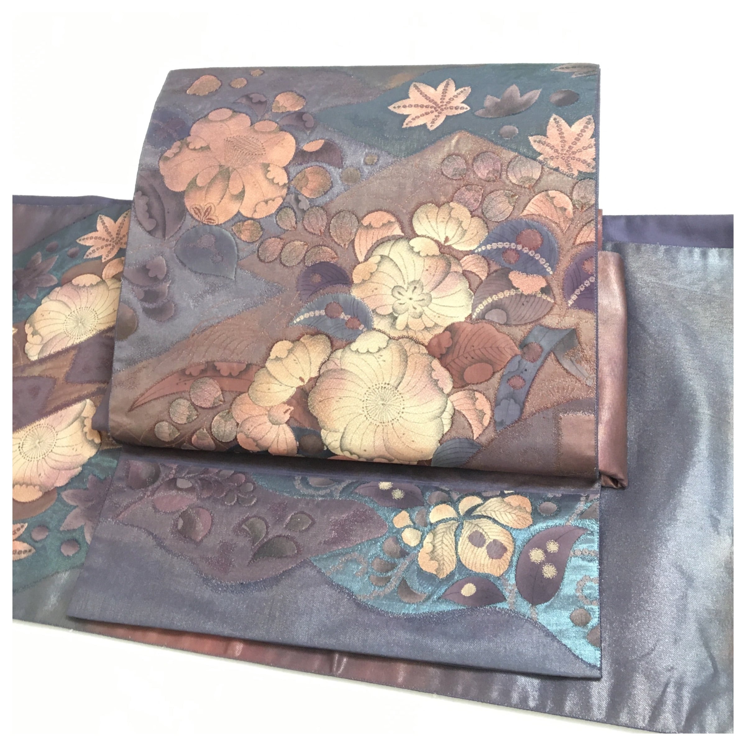 正絹 楽帯 袋帯 紫 華模様 二部式 二重太鼓 作り帯 です。