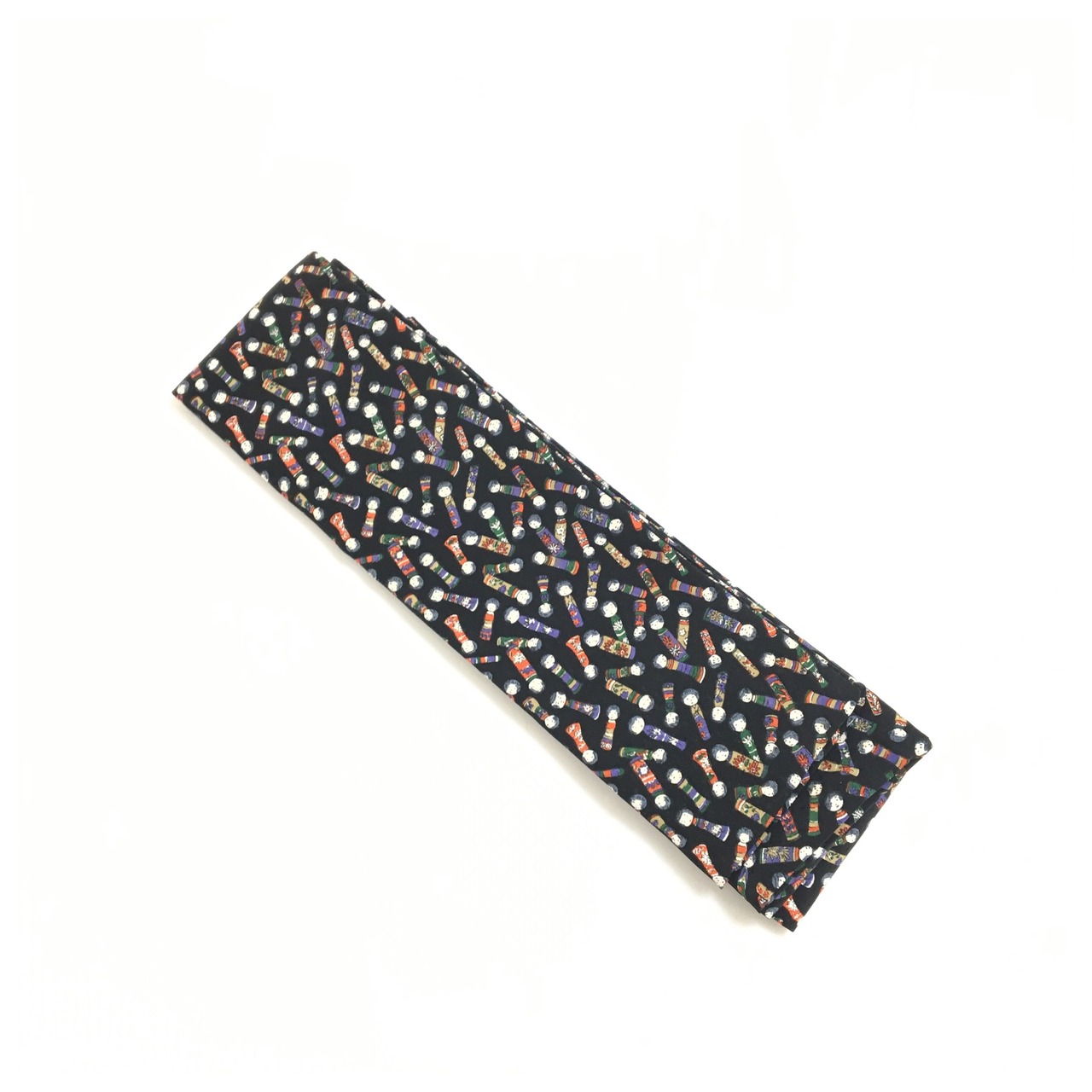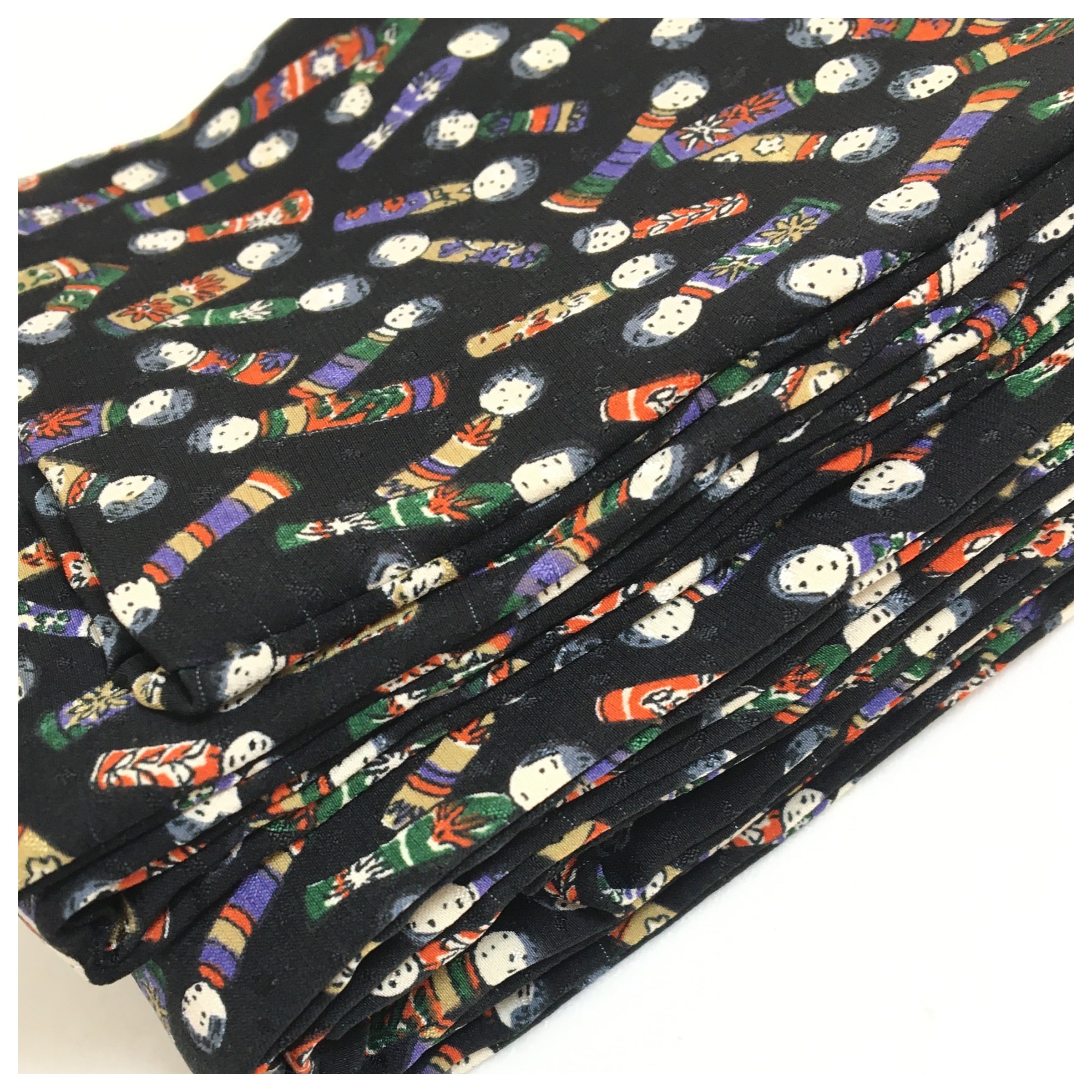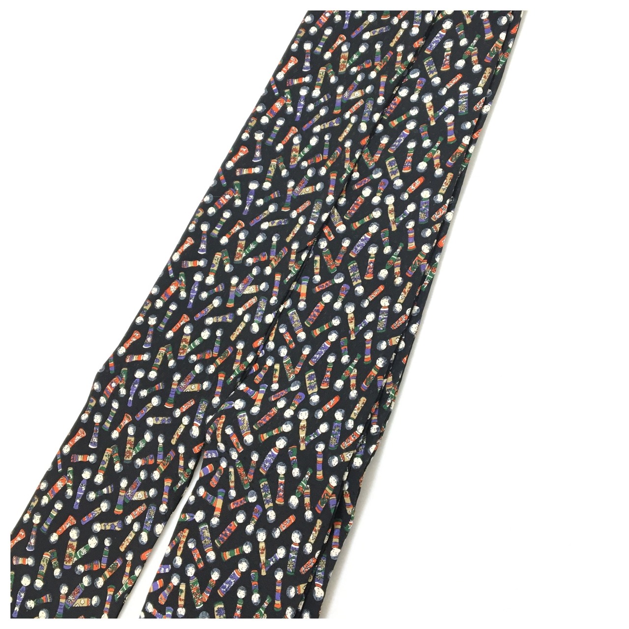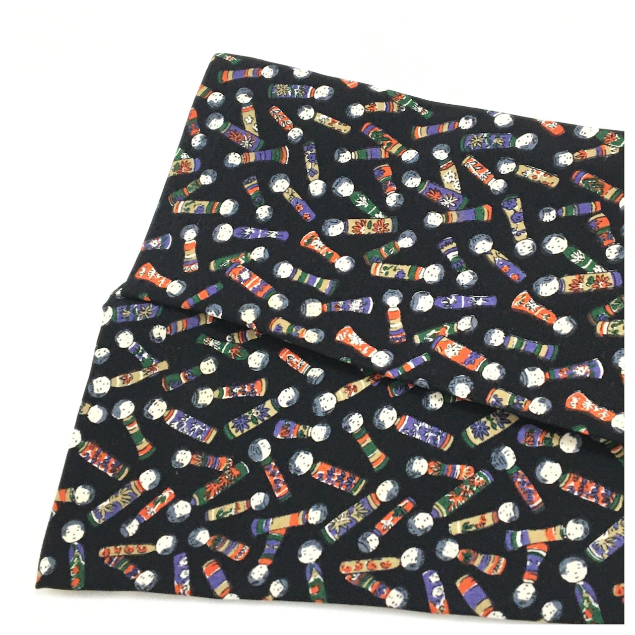 角帯 正絹 男物 黒 こけし柄 個性派 全通 長さ404 幅9.5 リサイクル 中古品