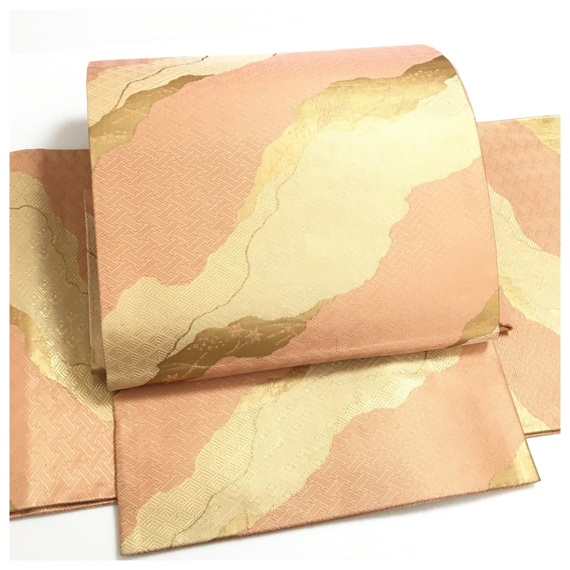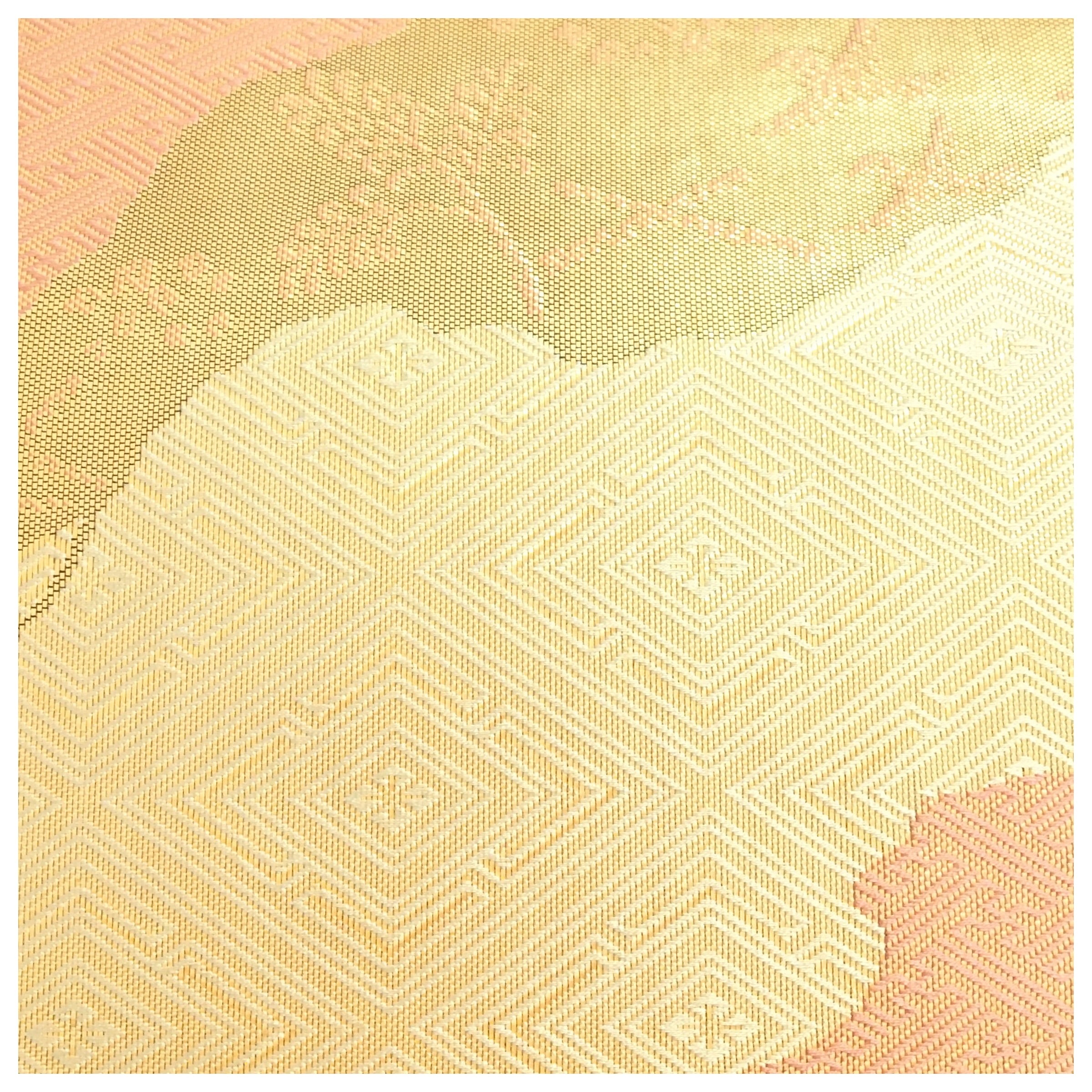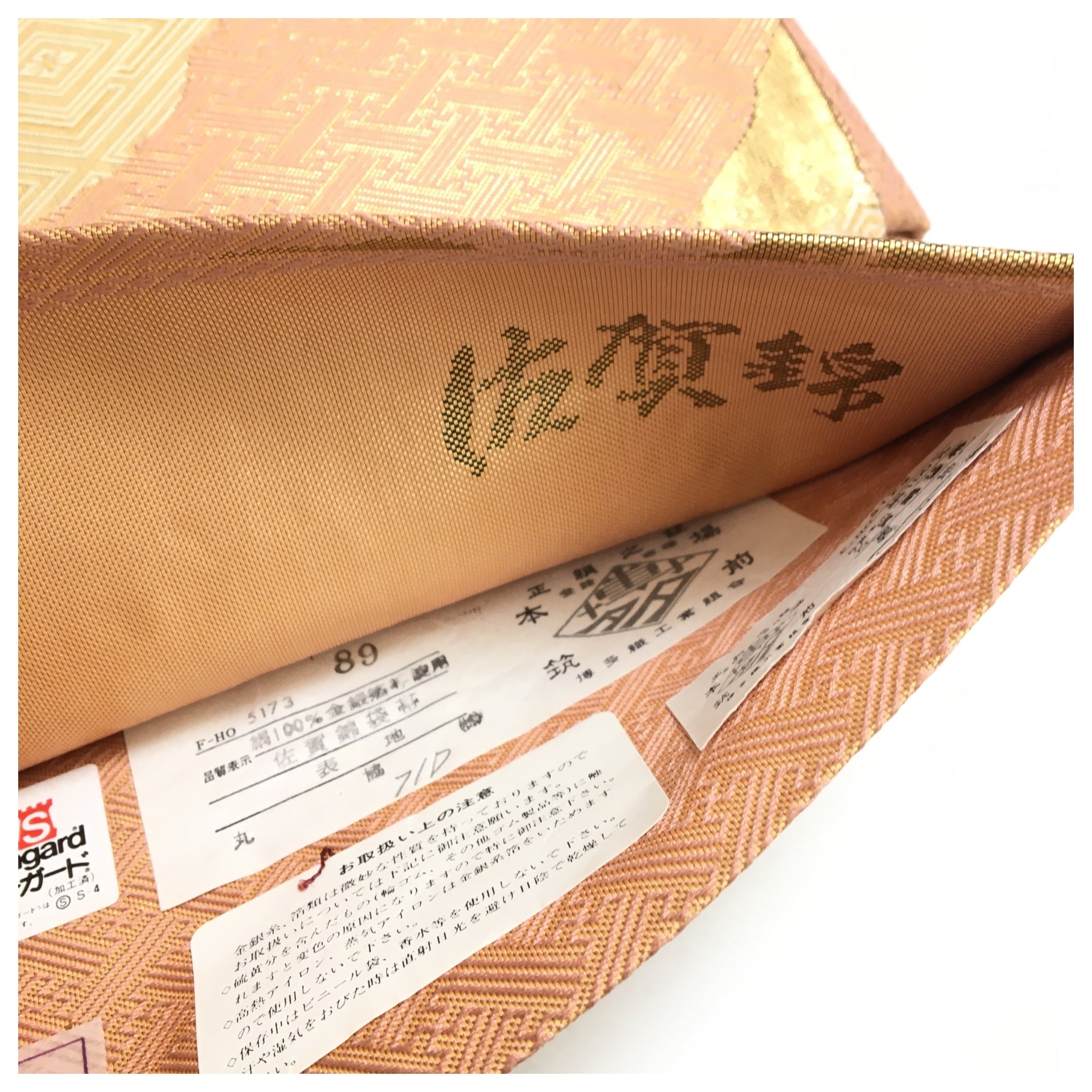 正絹 楽帯 袋帯 佐賀錦 オレンジゴールド 二重太鼓 作り帯 です。