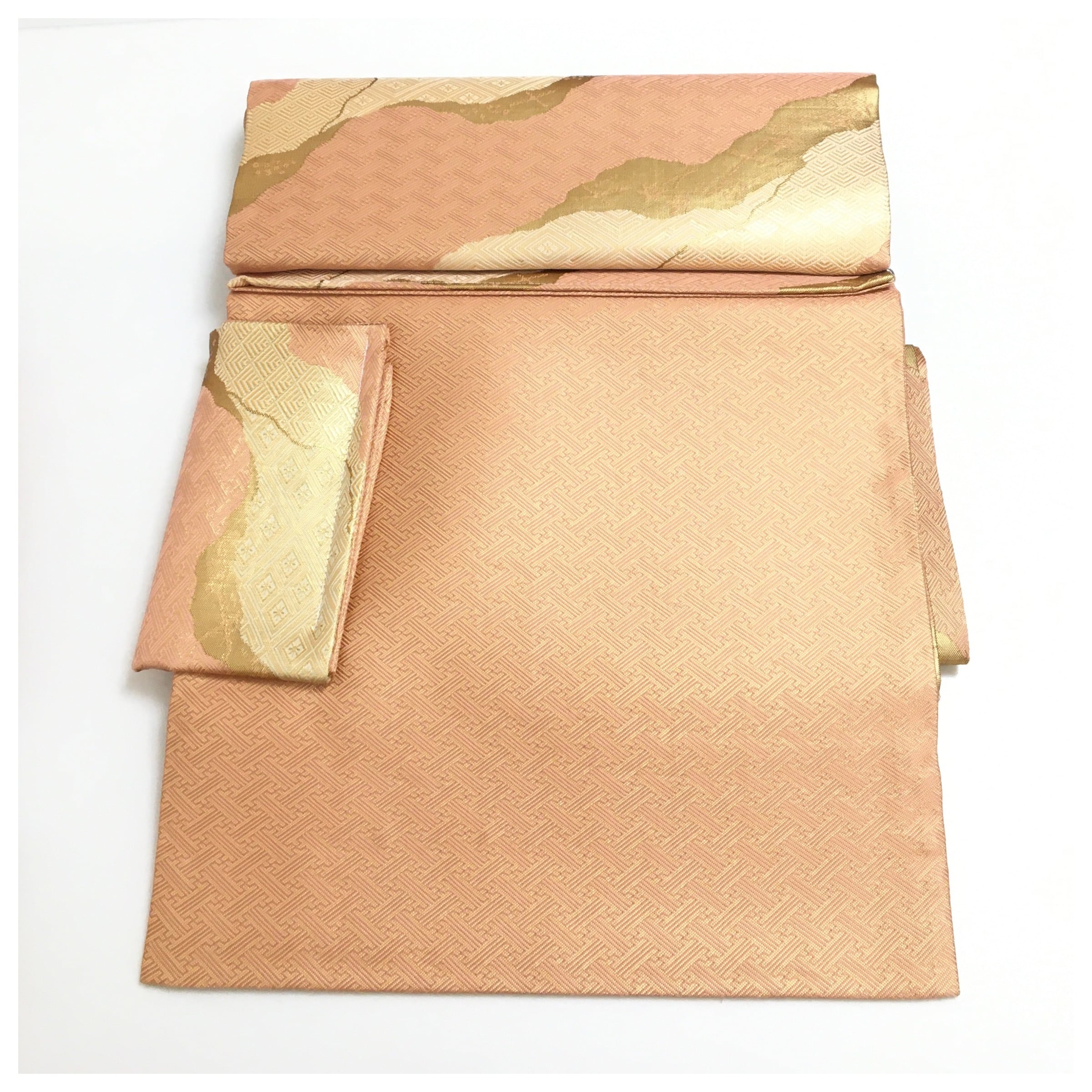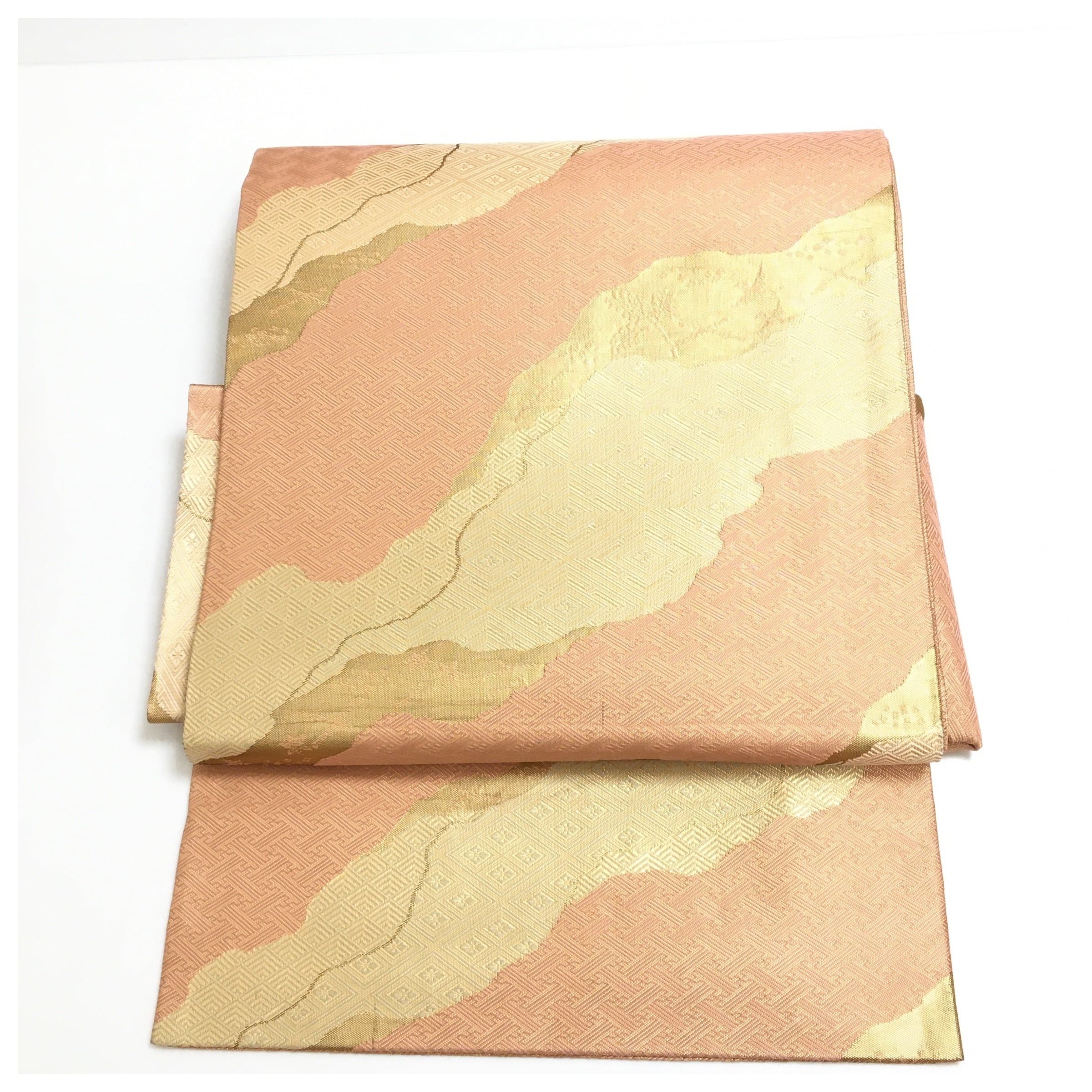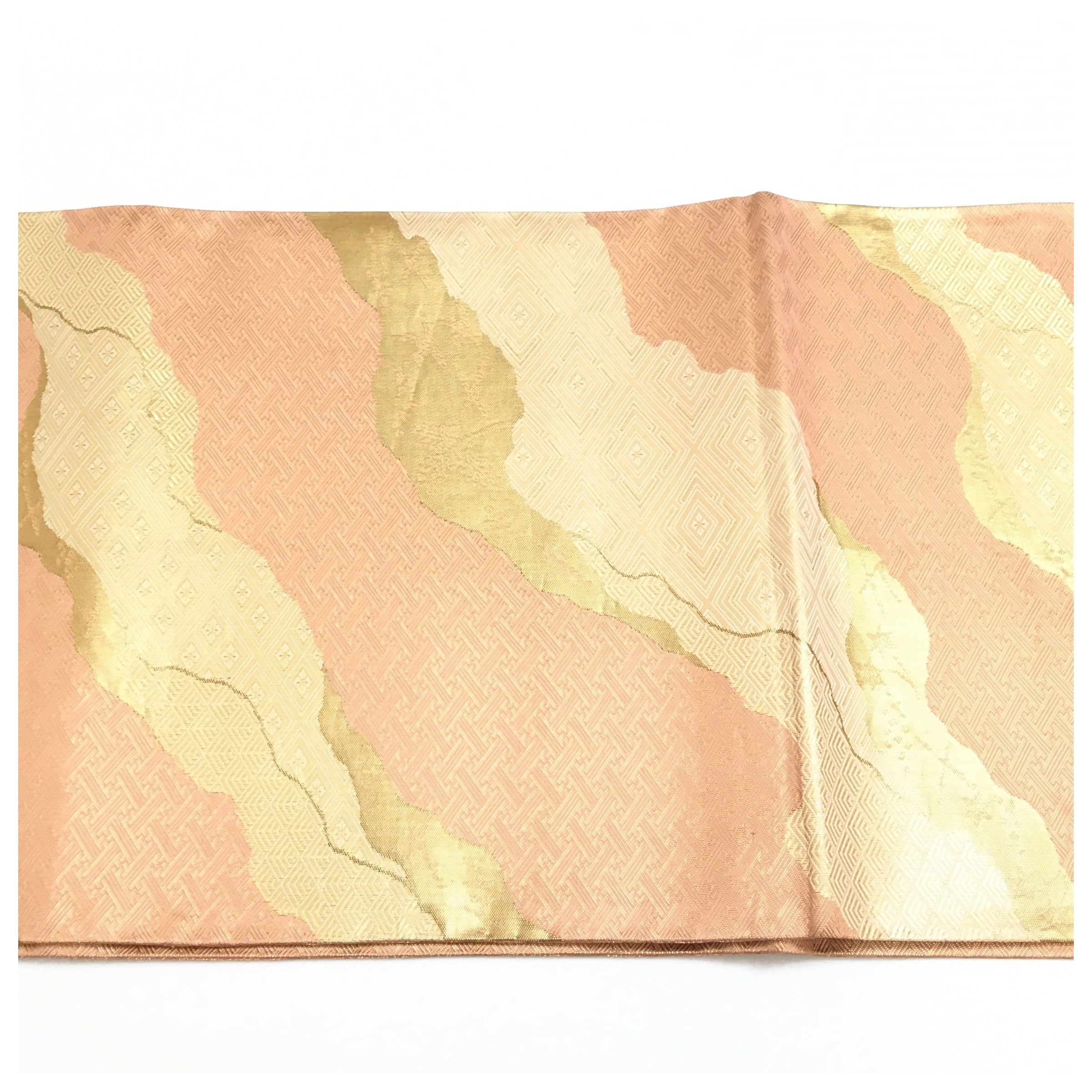 正絹 楽帯 袋帯 佐賀錦 オレンジゴールド 二重太鼓 作り帯 です。