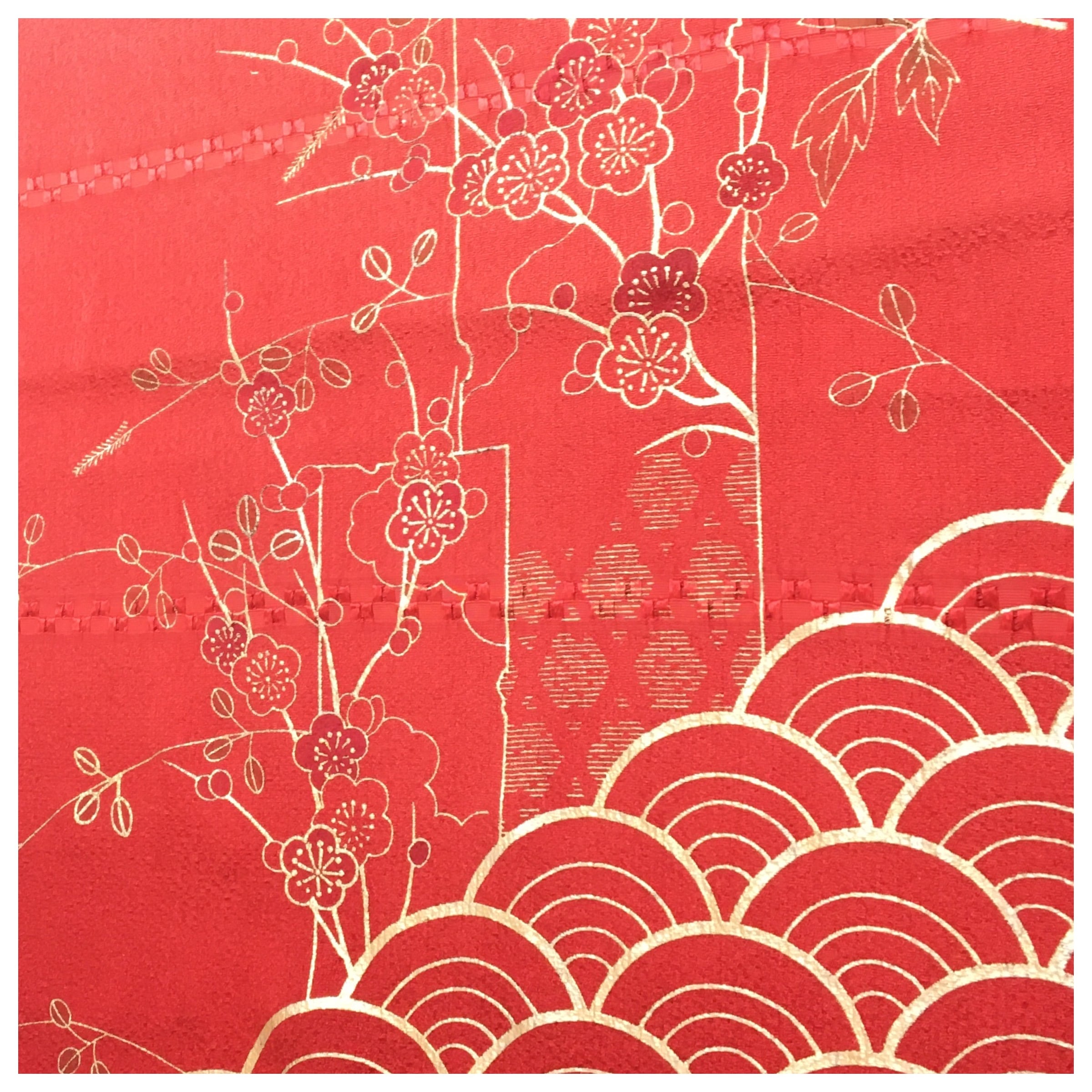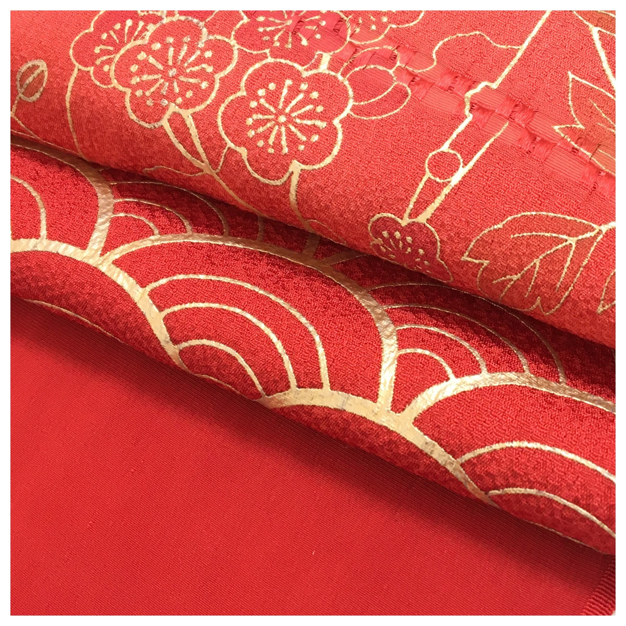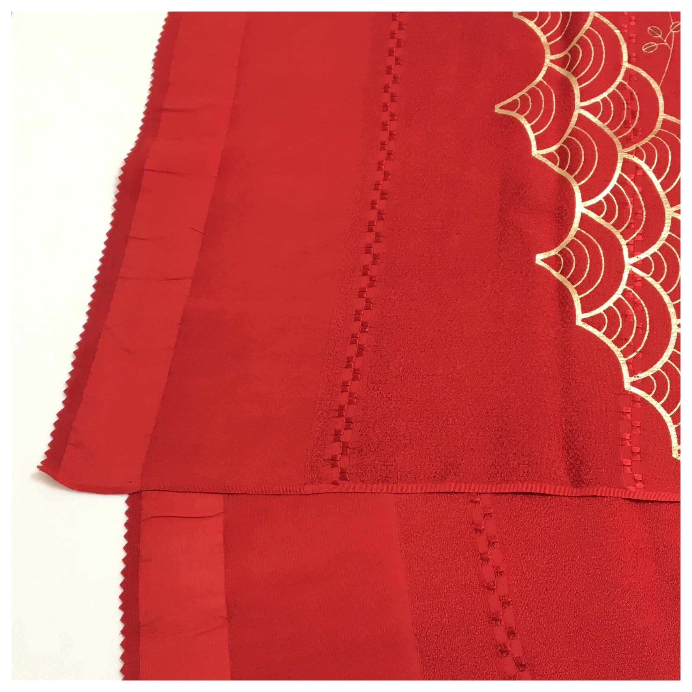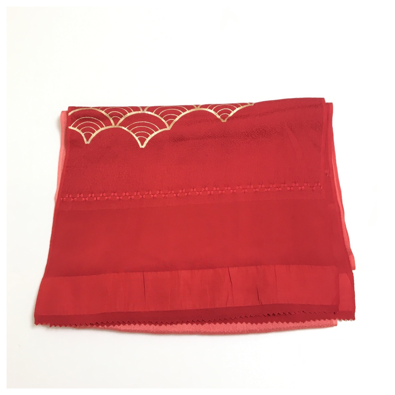 正絹 帯揚げ 赤色に金彩柄 和装小物 です。
