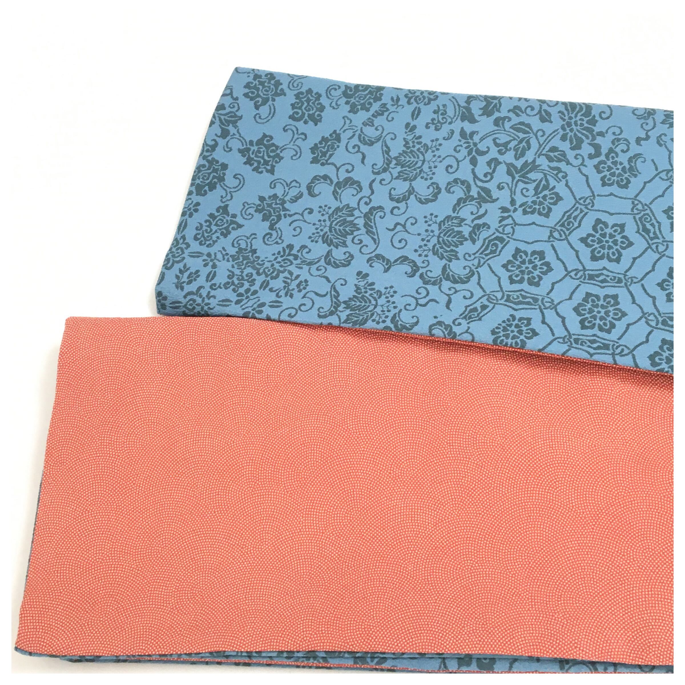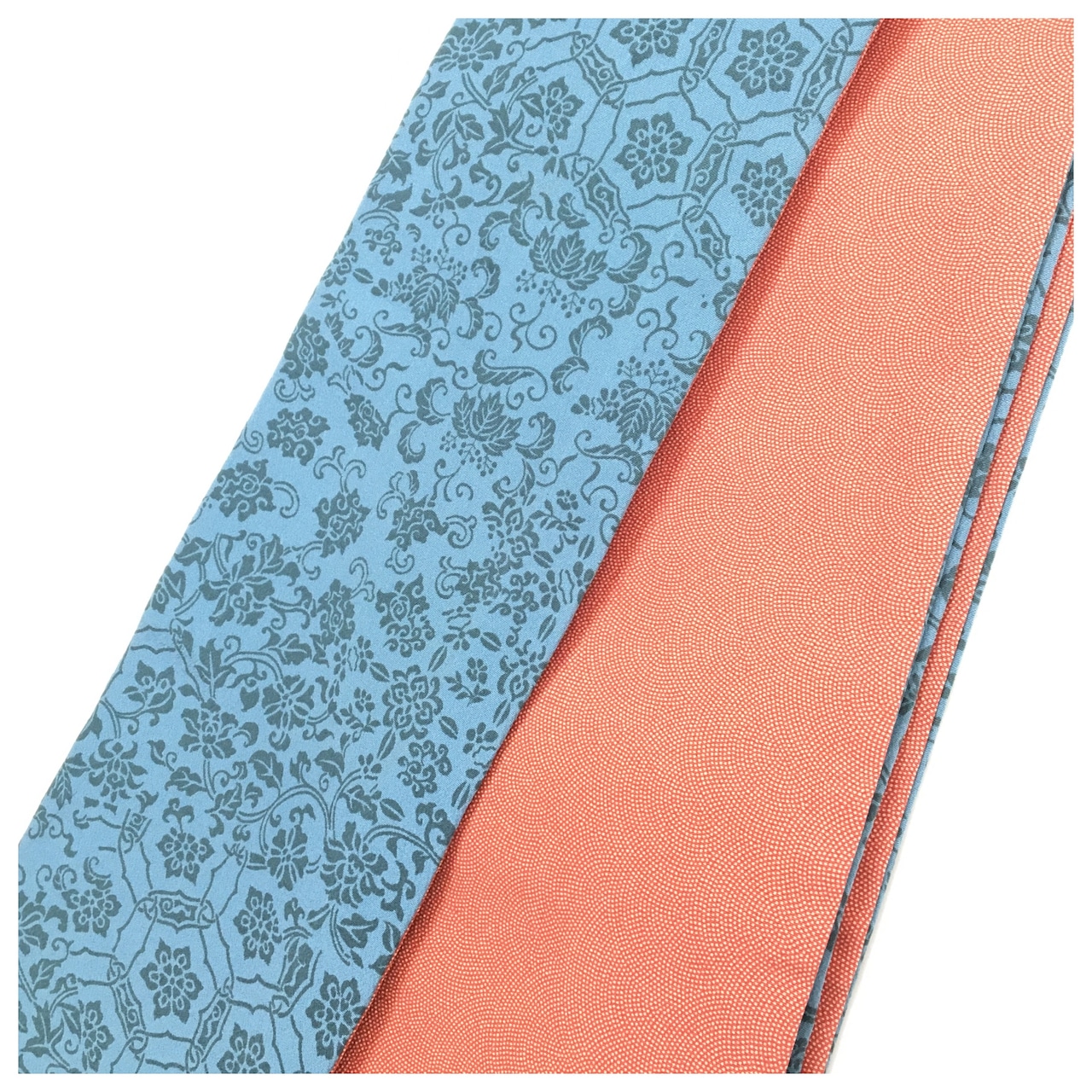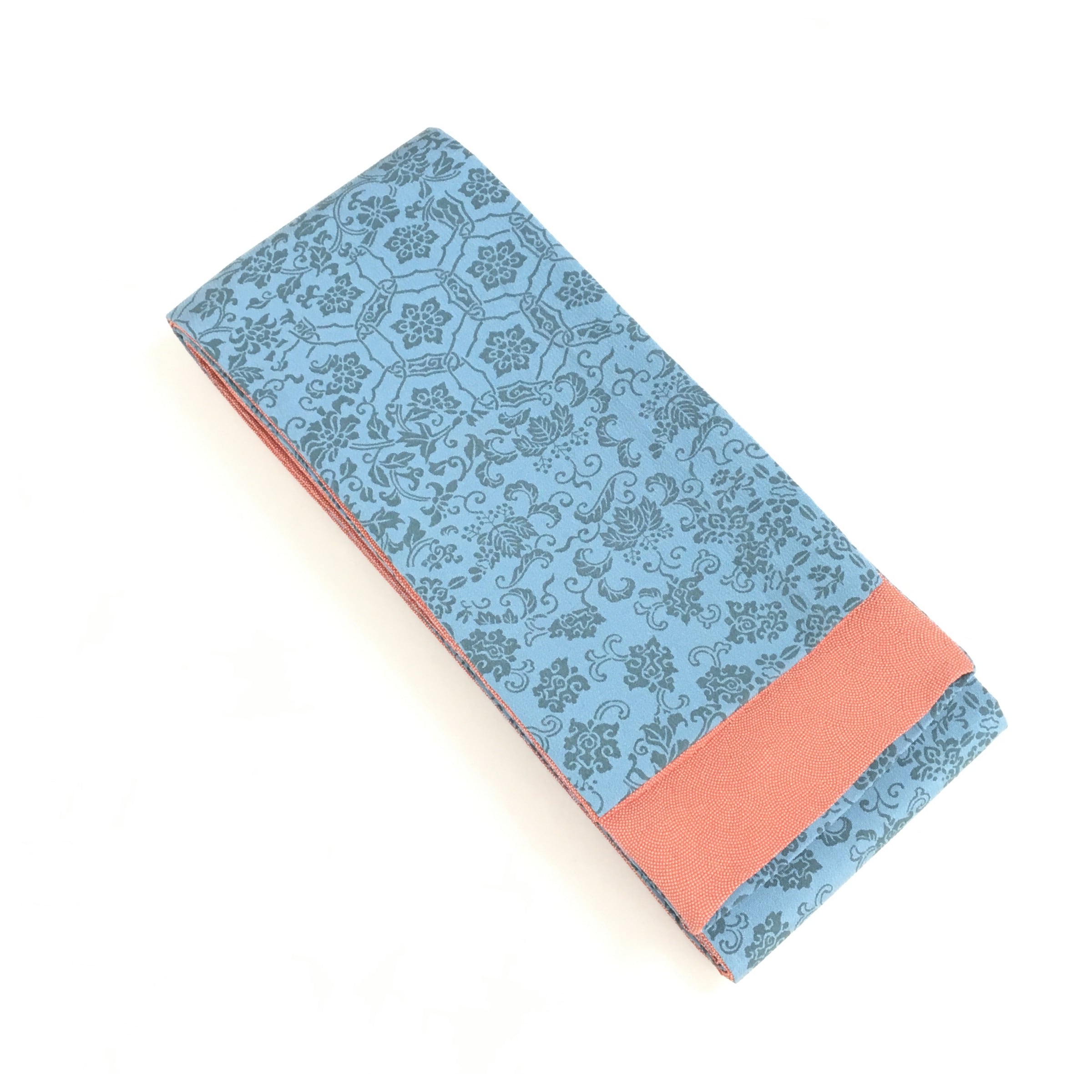 正絹素材の更紗をデザインした小紋と、鮫小紋で仕上げた手に馴染む帯地です。