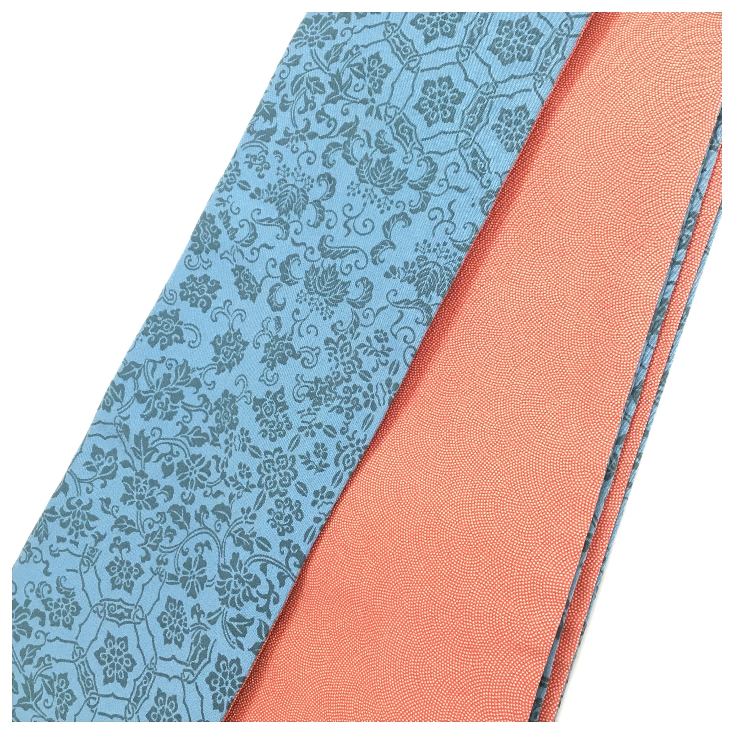 美品 半幅帯 正絹 更紗x鮫小紋 両面違い柄 長さ420
