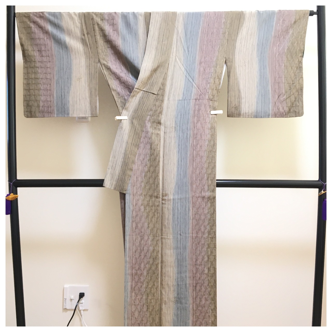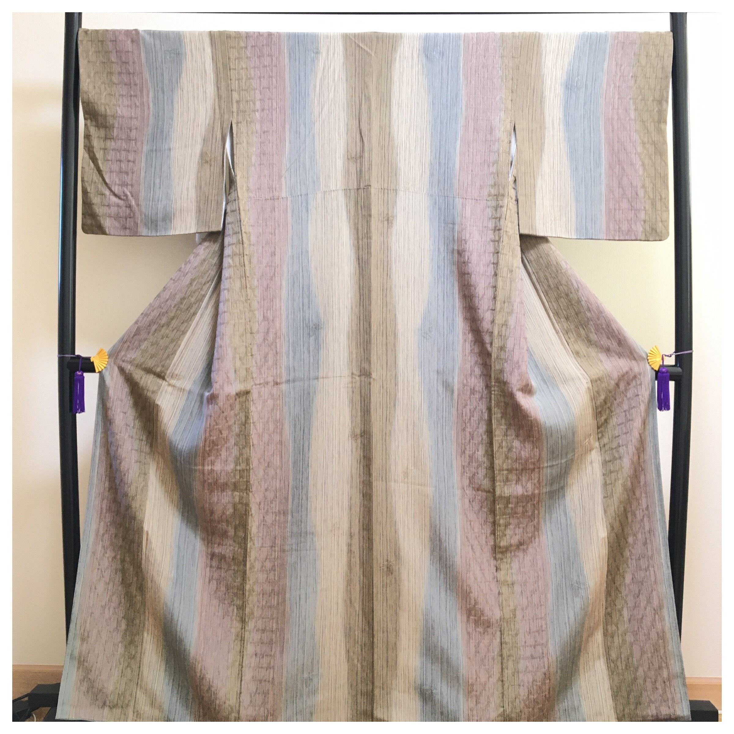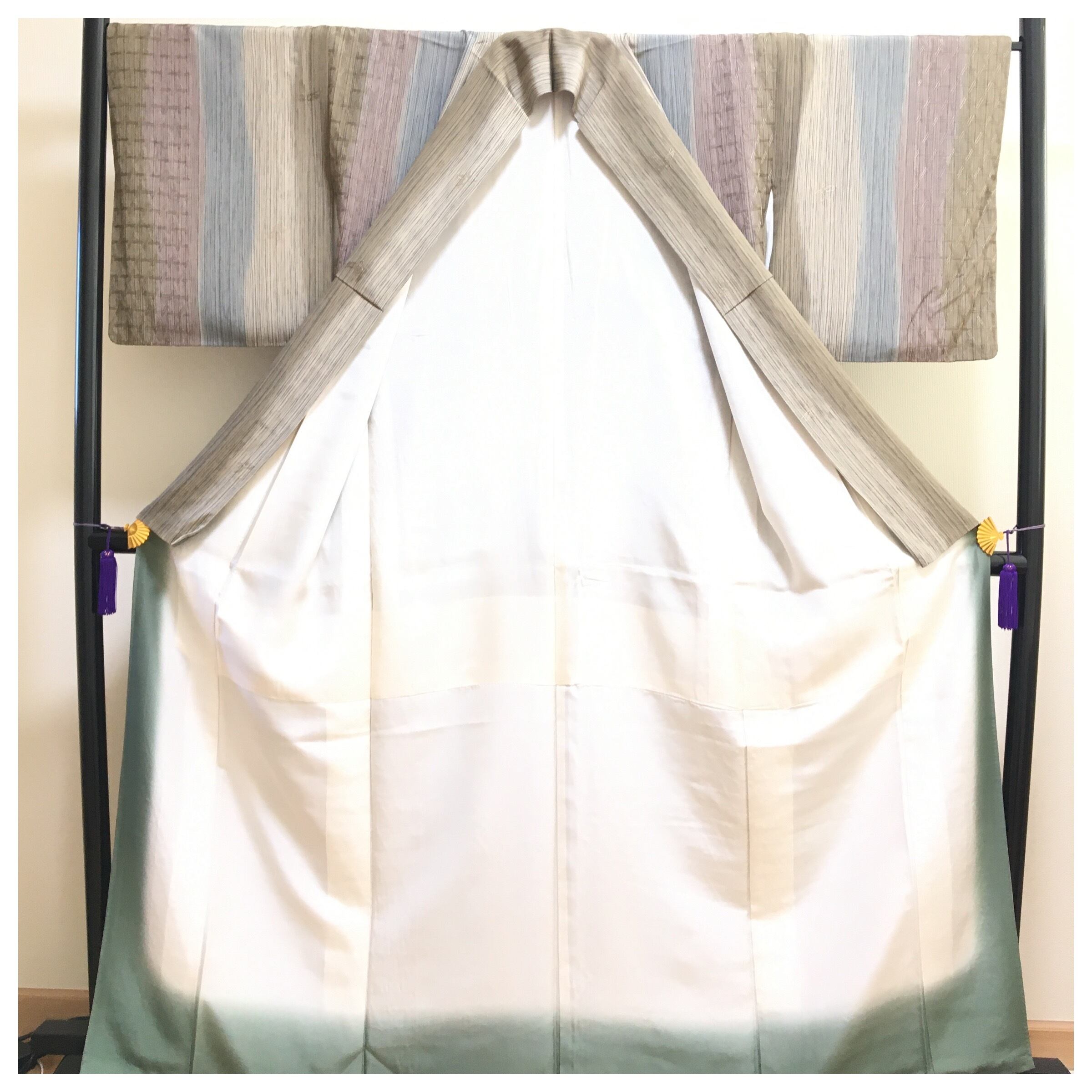絹本来の艶やかで光沢のあり、縦縞の染分け柄が上品です。