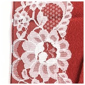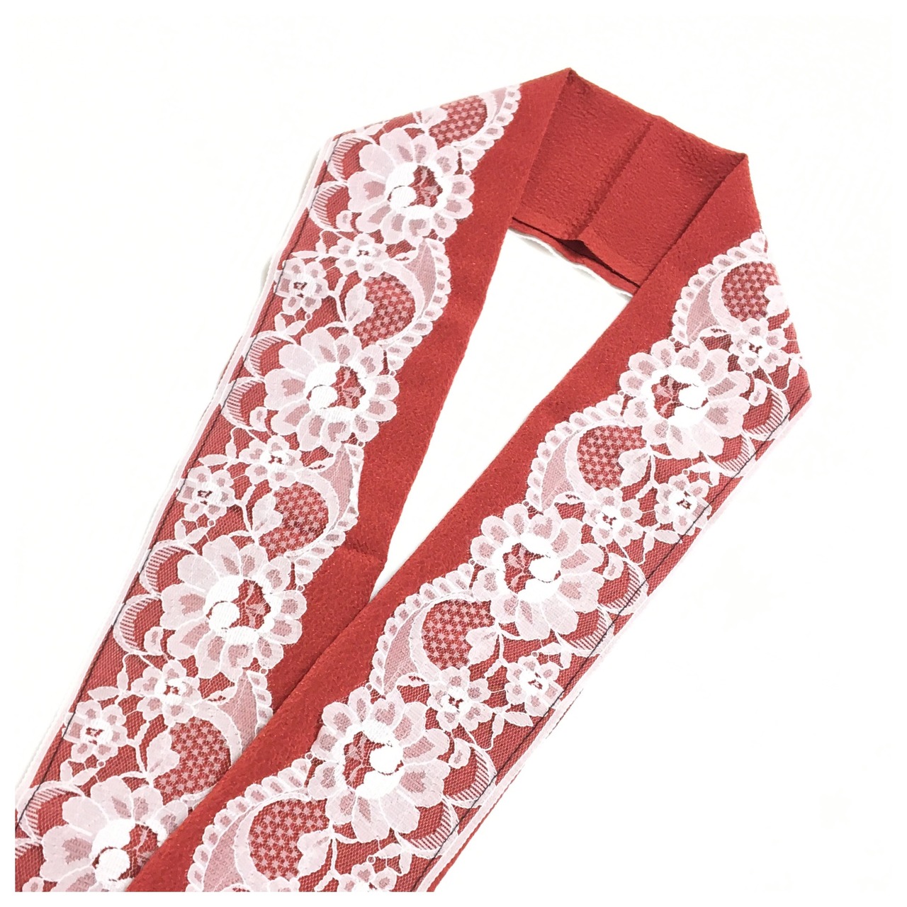 美品 化繊 レース 半襟 赤 個性派 長さ104 です。