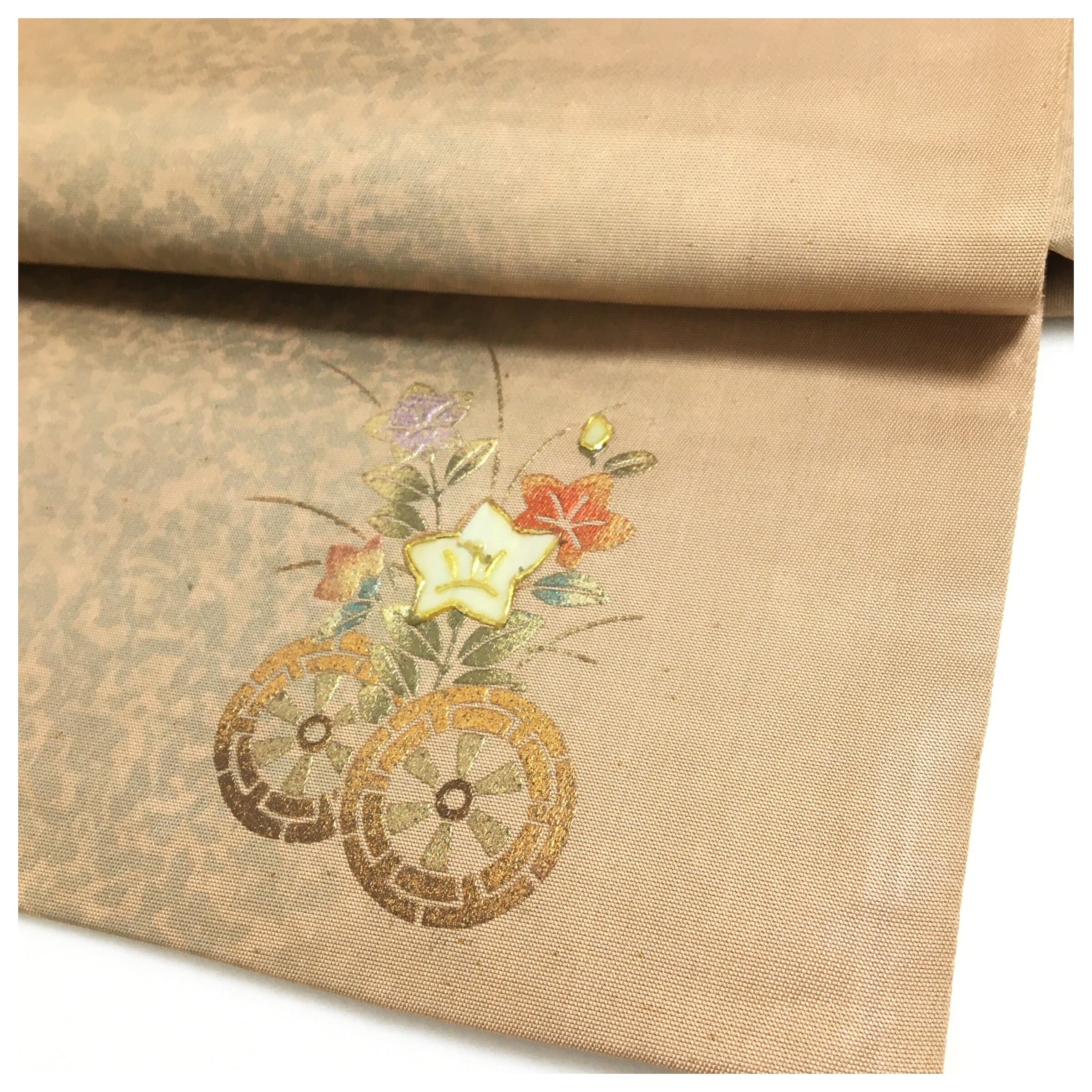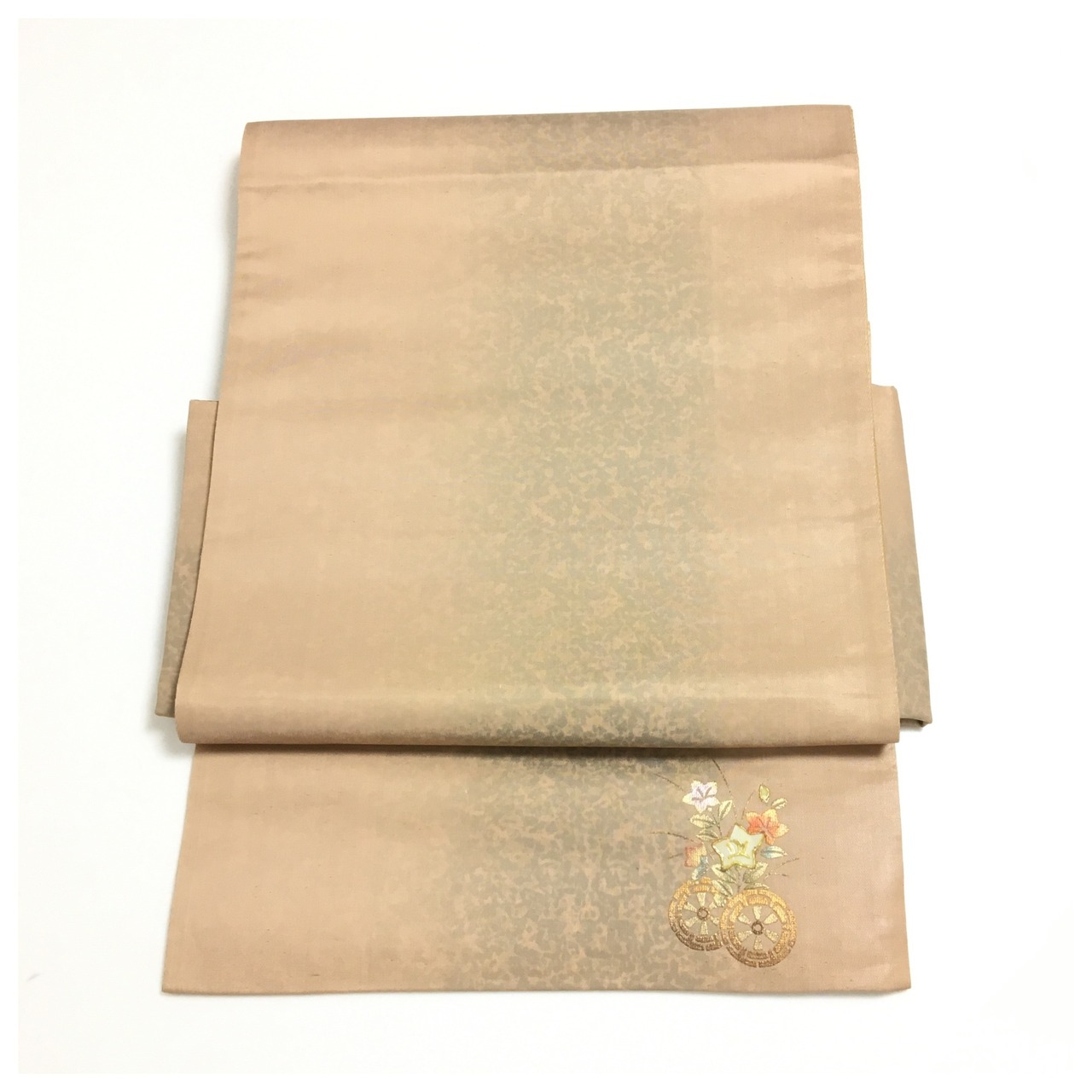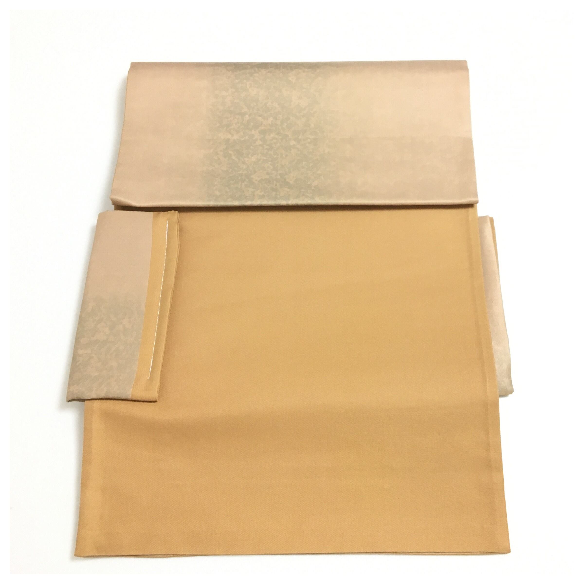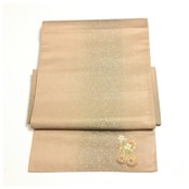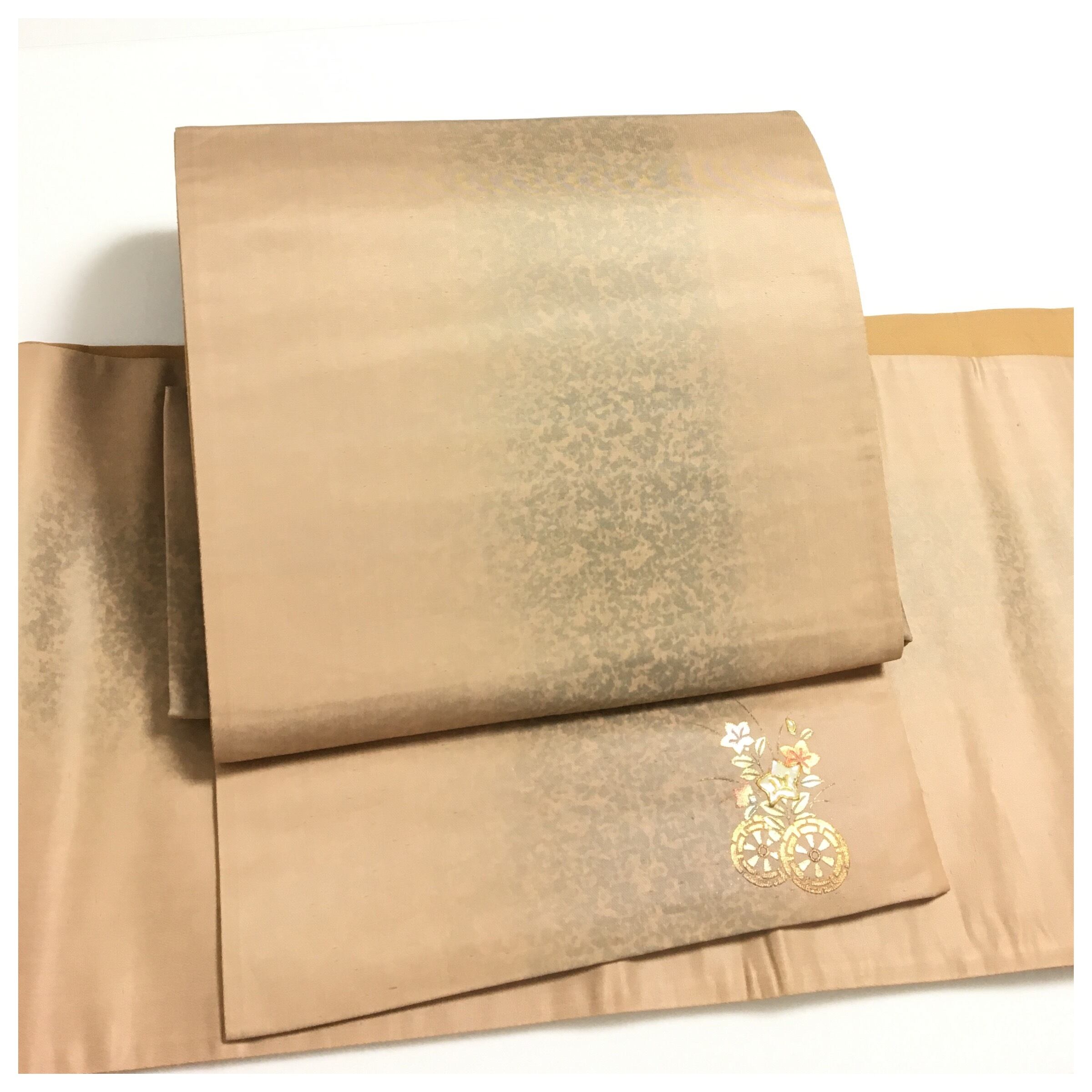 正絹 楽帯 袋帯 ベージュ 引き箔 ポイント柄 二部式 二重太鼓 作り帯 です。