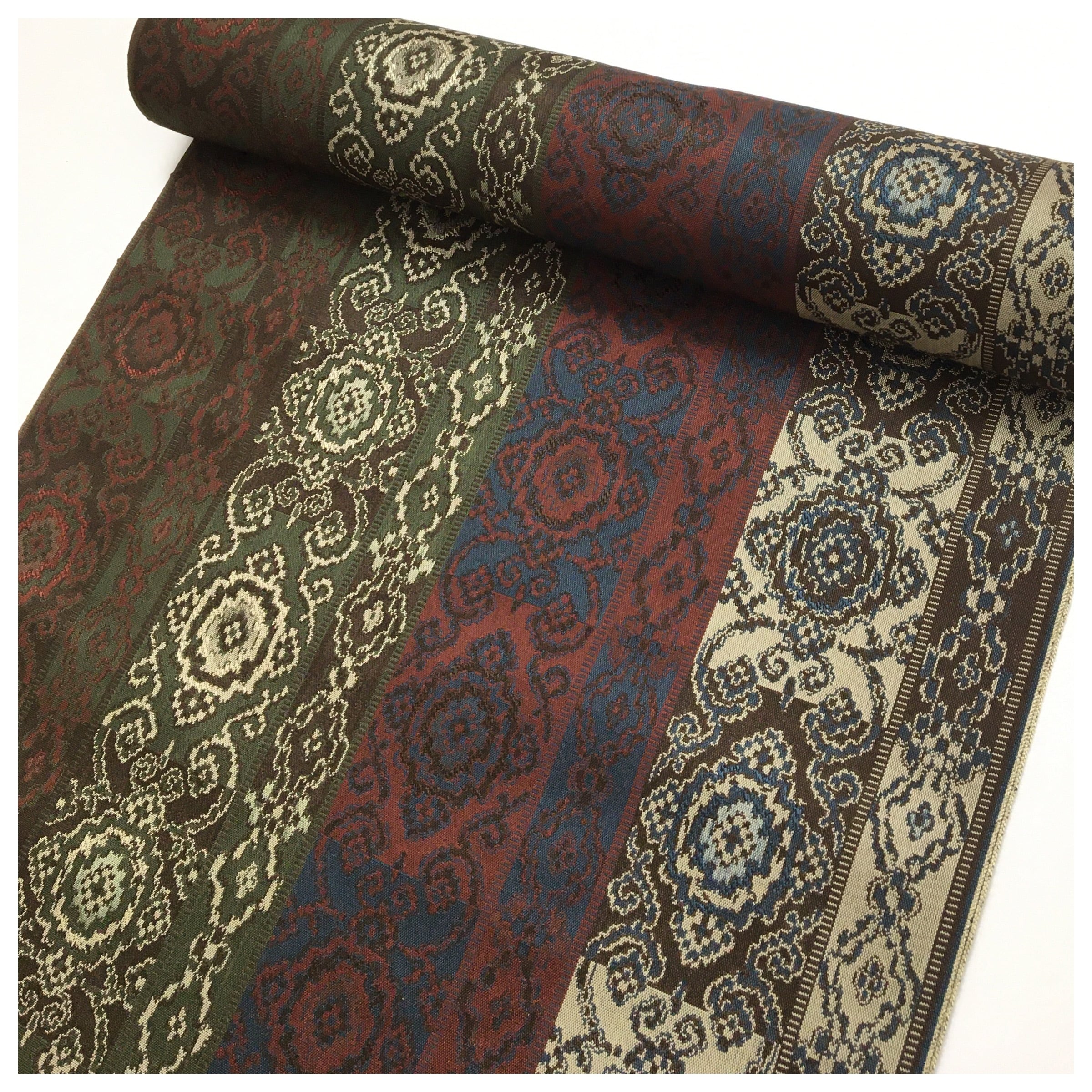 茶を基調とした上品で高級感のある名古屋帯の反物です。