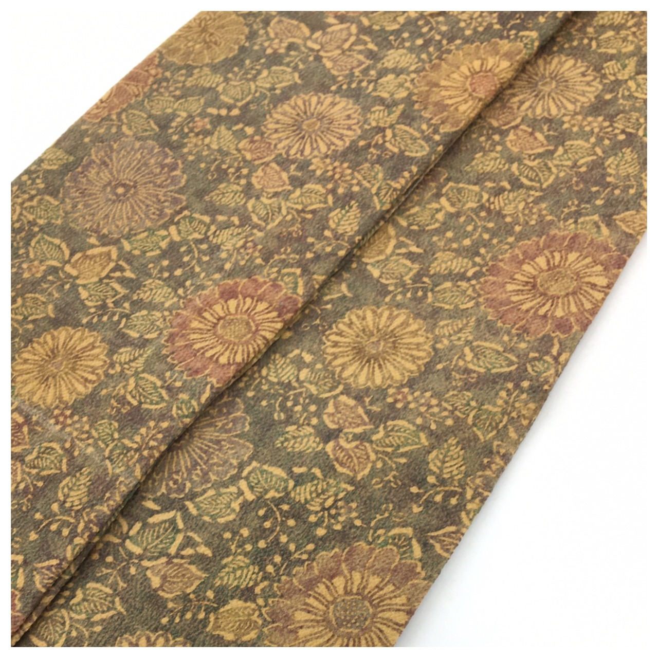 正絹 角帯 貝合わせ 部分柄 青緑 長尺436 幅9 中古品です。