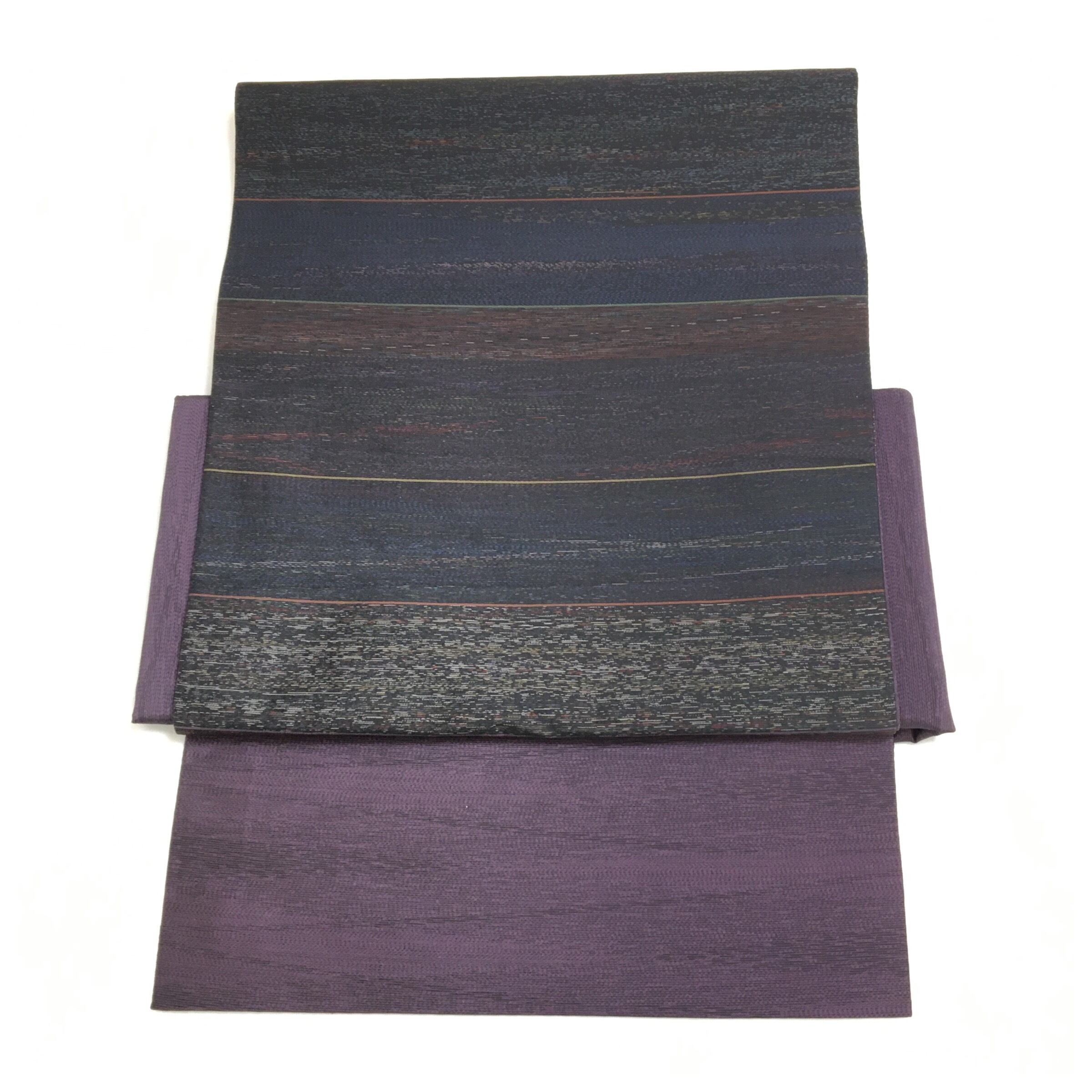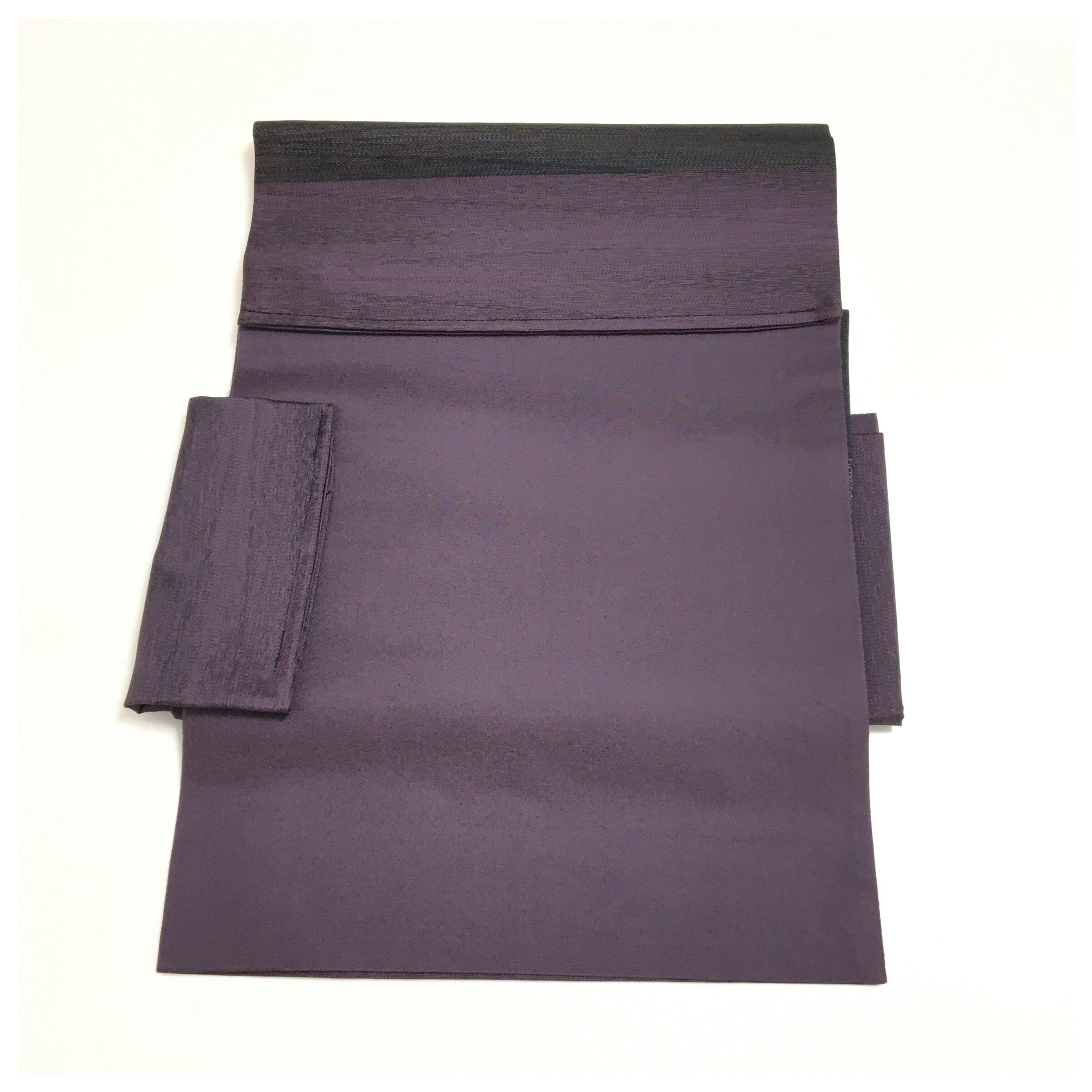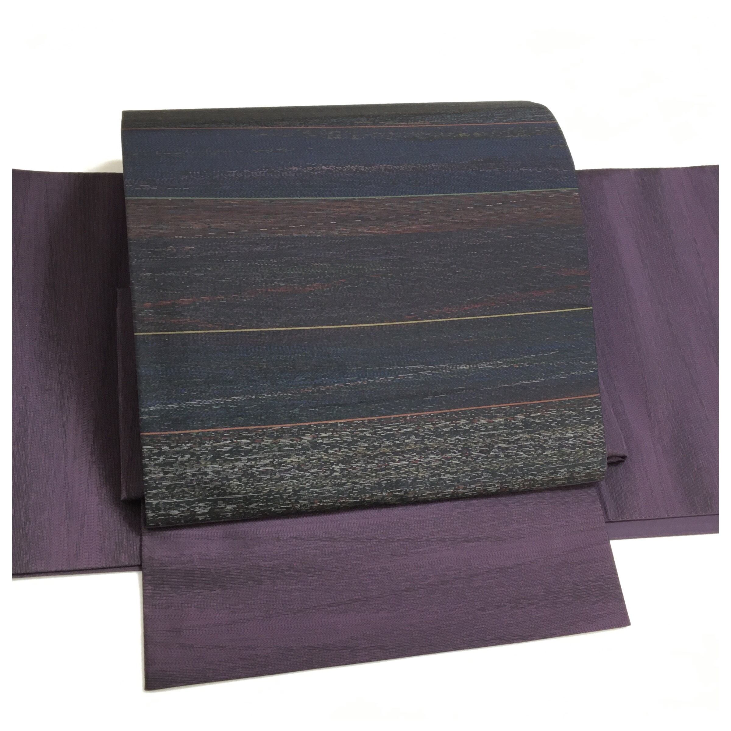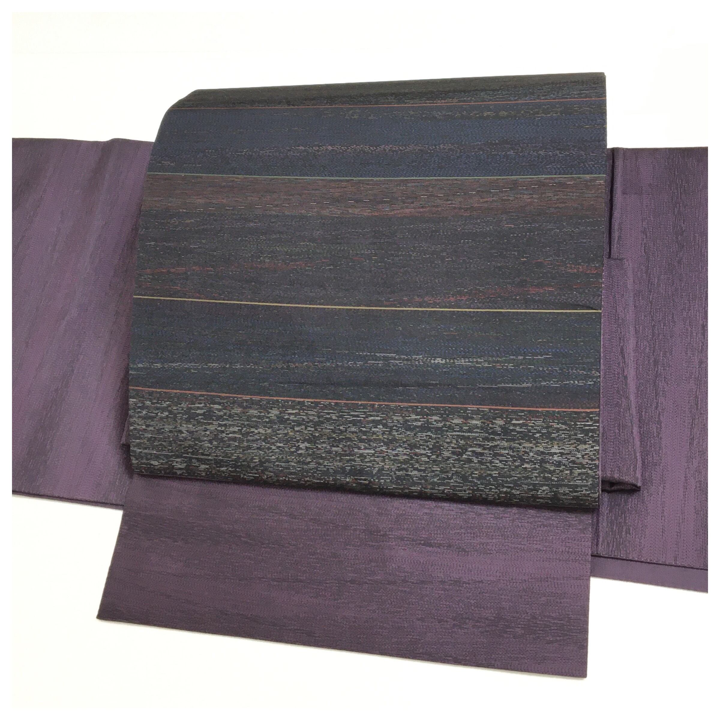 美品 正絹 楽帯 大島紬 高級呉服 紫 横段 二部式 二重太鼓 作り帯 です。