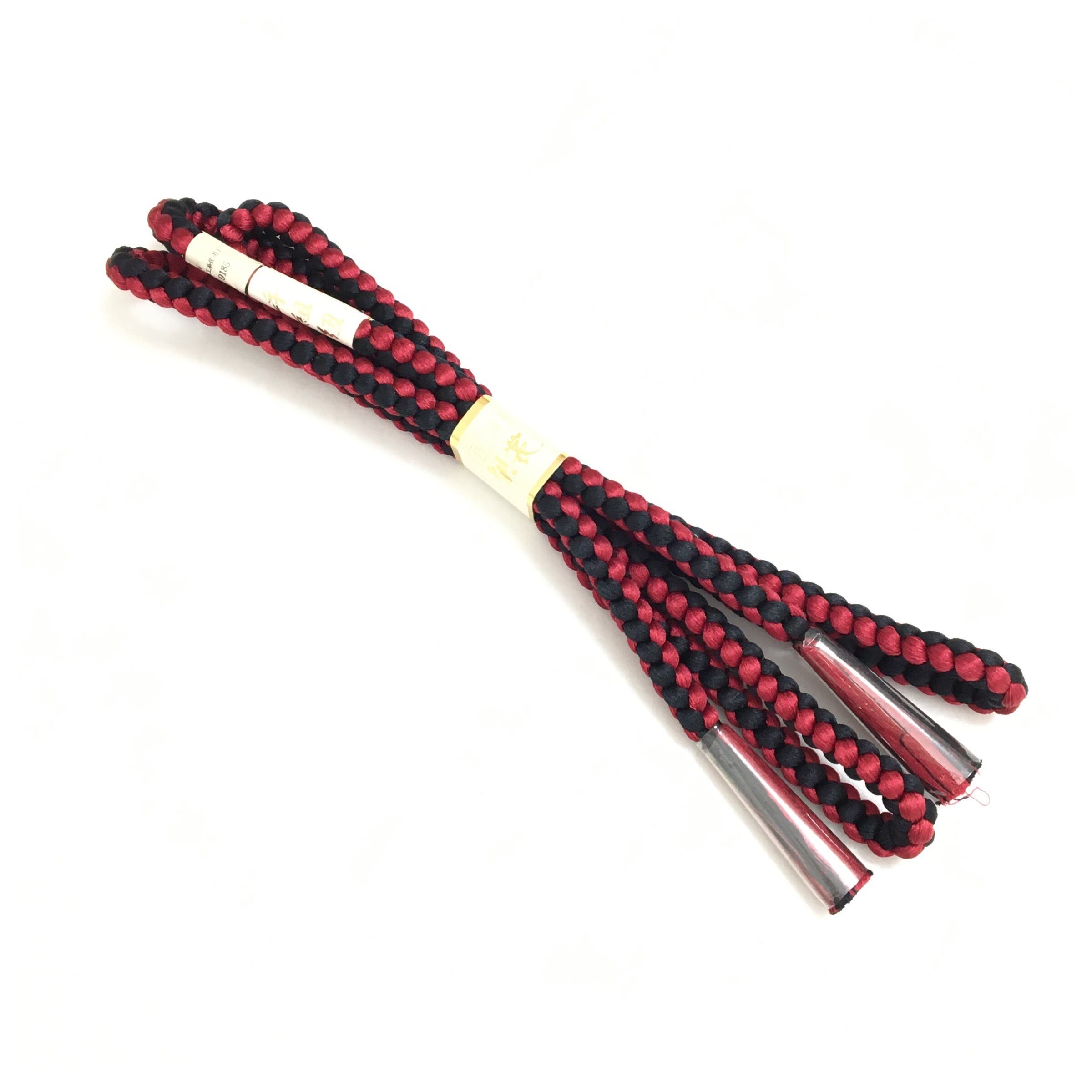 美品 未使用 正絹 帯締め 黒x赤 和装 小物 中古品です。