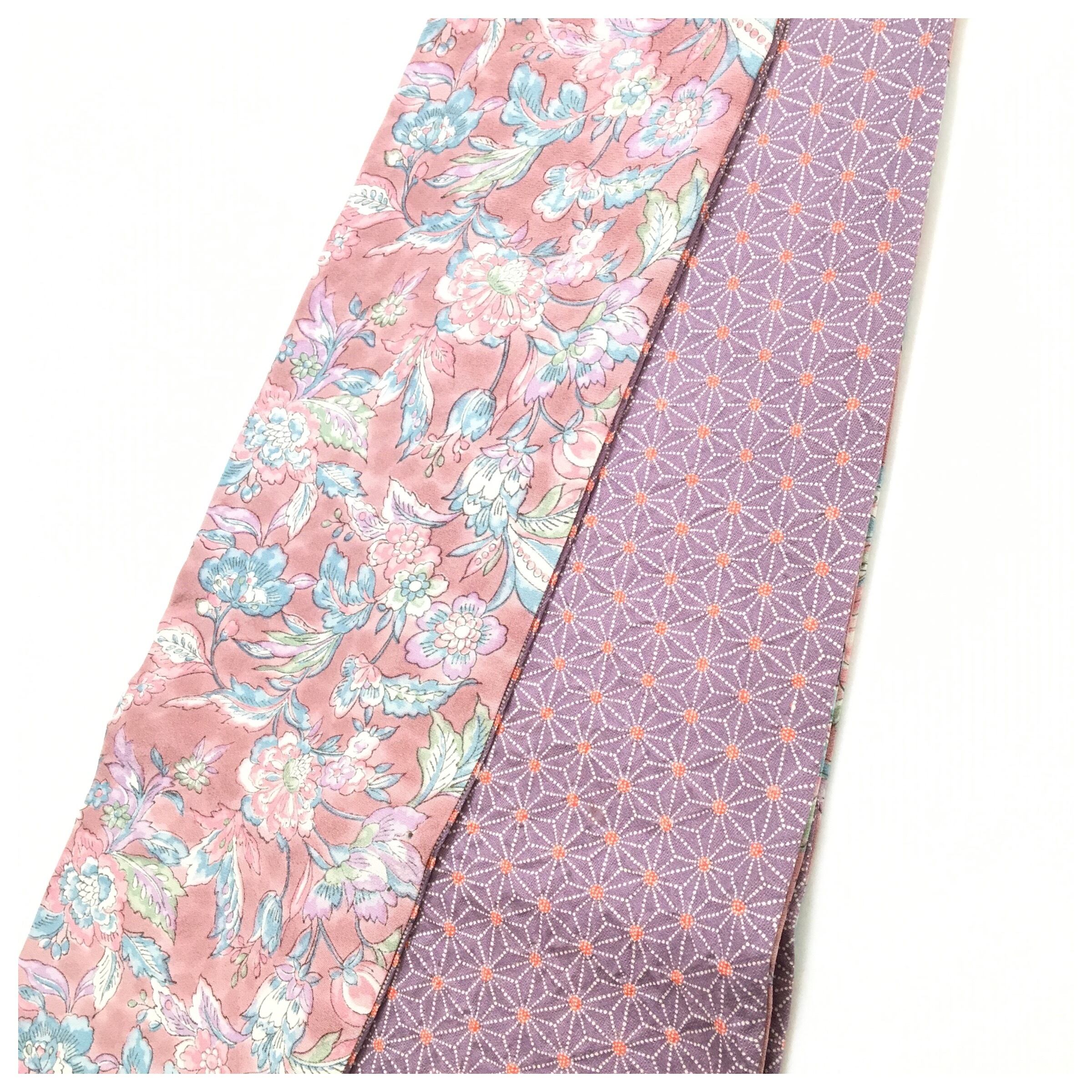 美品 正絹 兵児帯 ピンクx紫 両面違い 長尺388 幅14 中古品 です。
