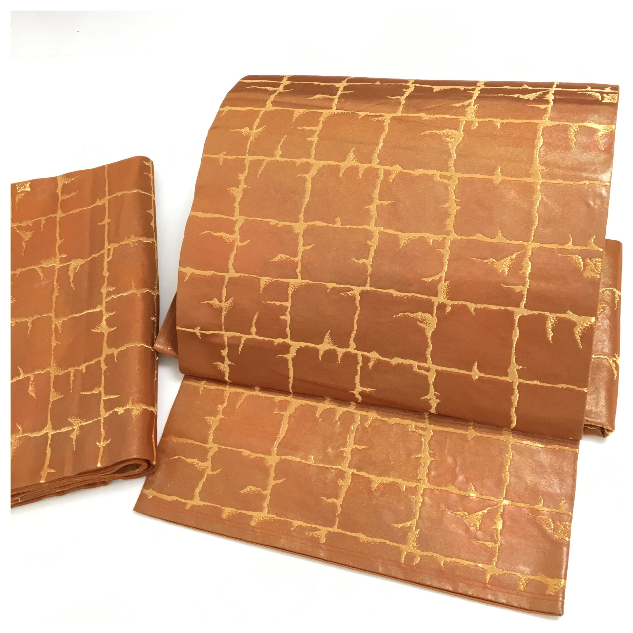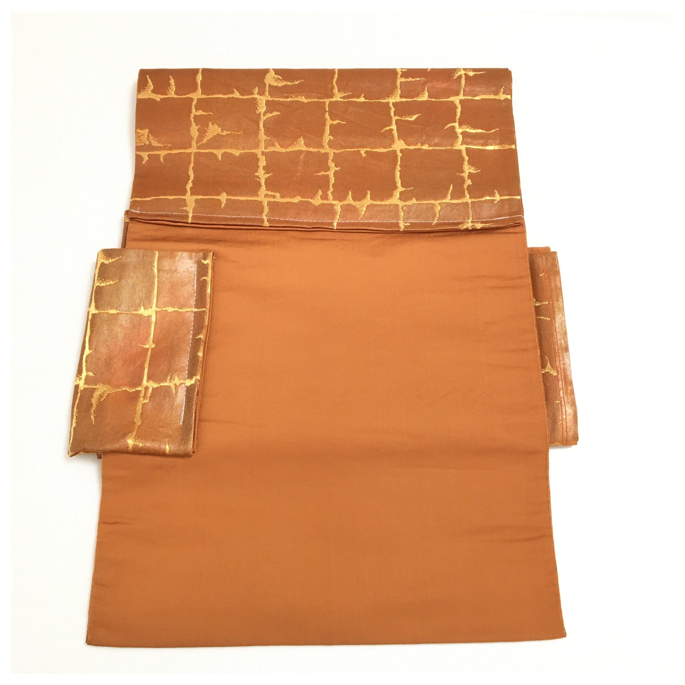 ◇作り帯◇ 正絹 二部式 袋帯 茶 二重太鼓 付け帯