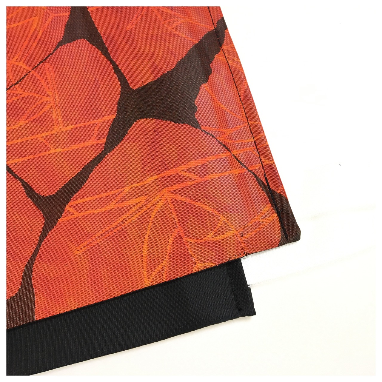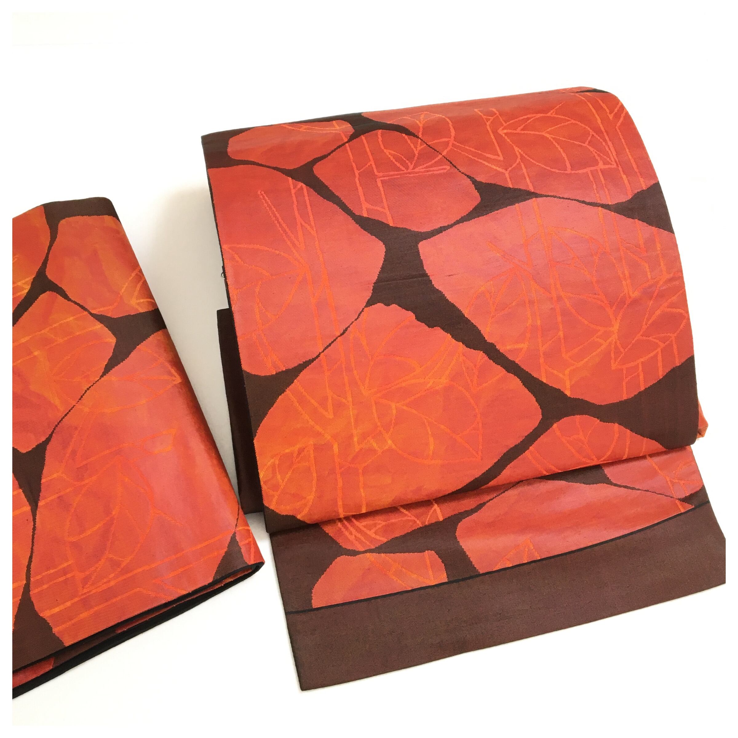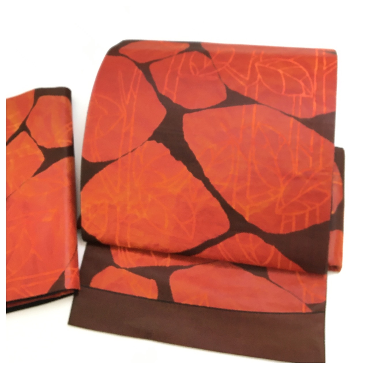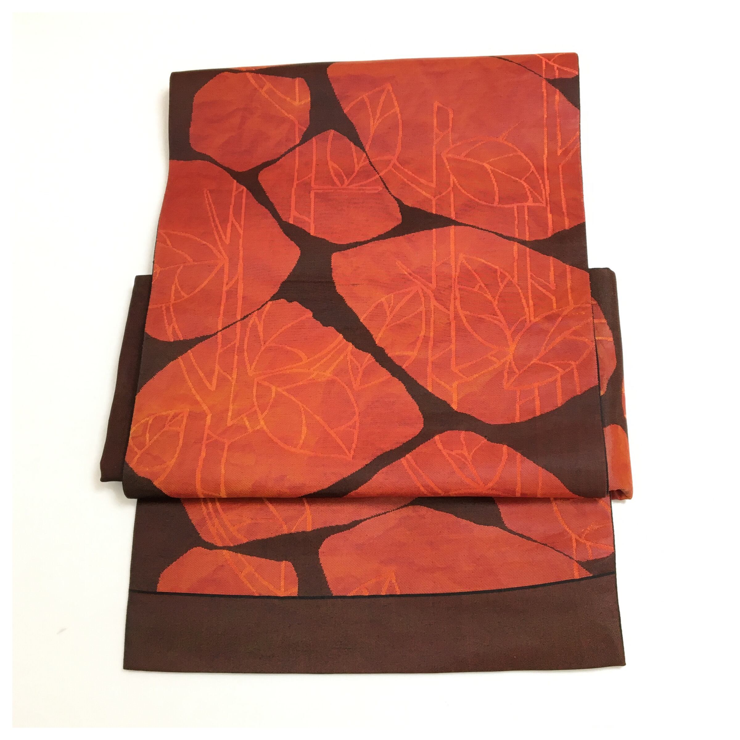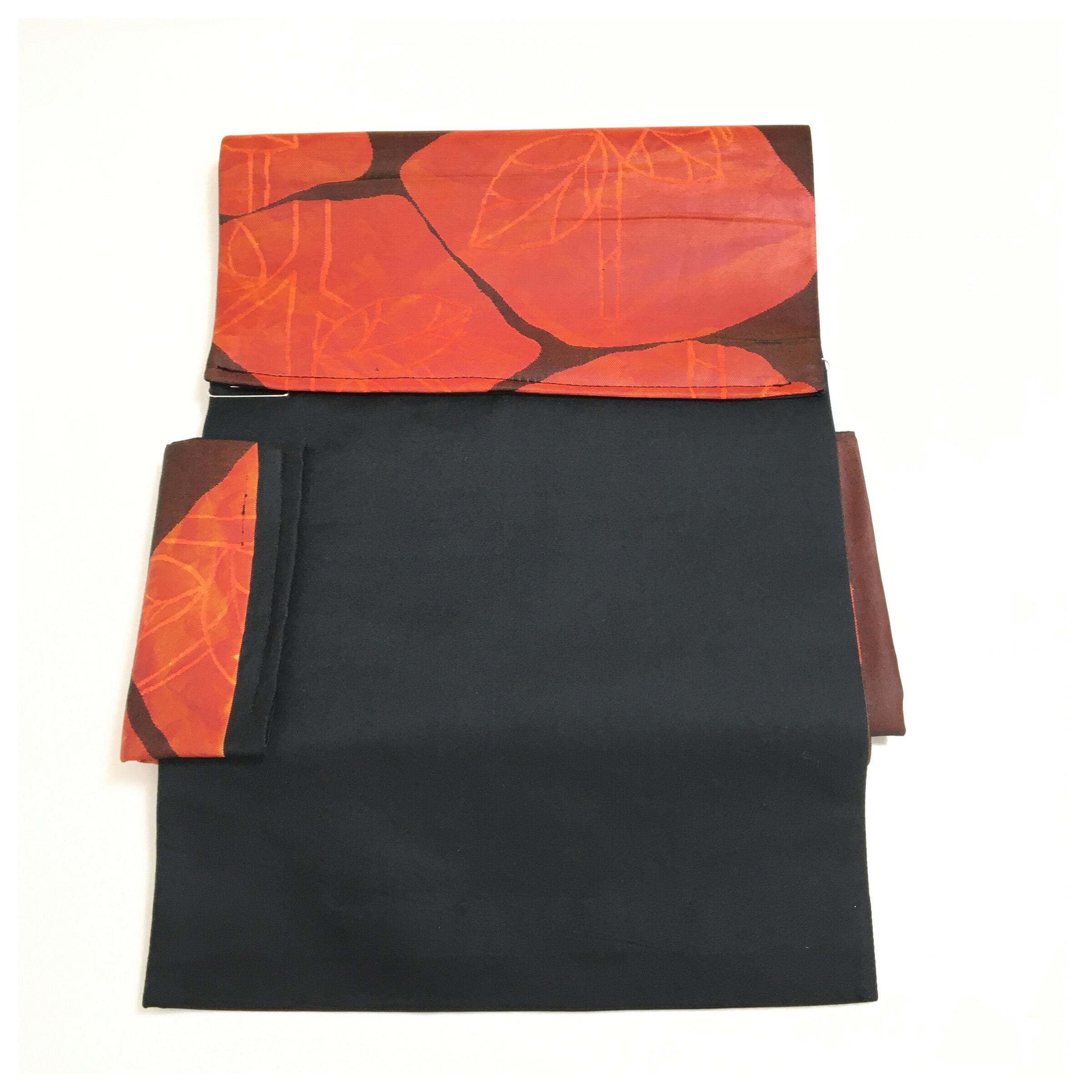 黒地に赤、木をデザインした個性的な袋帯を二部式にお仕立てしました。