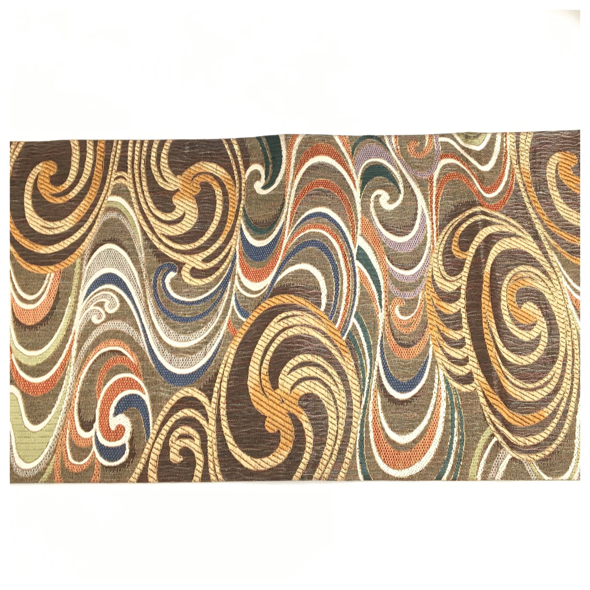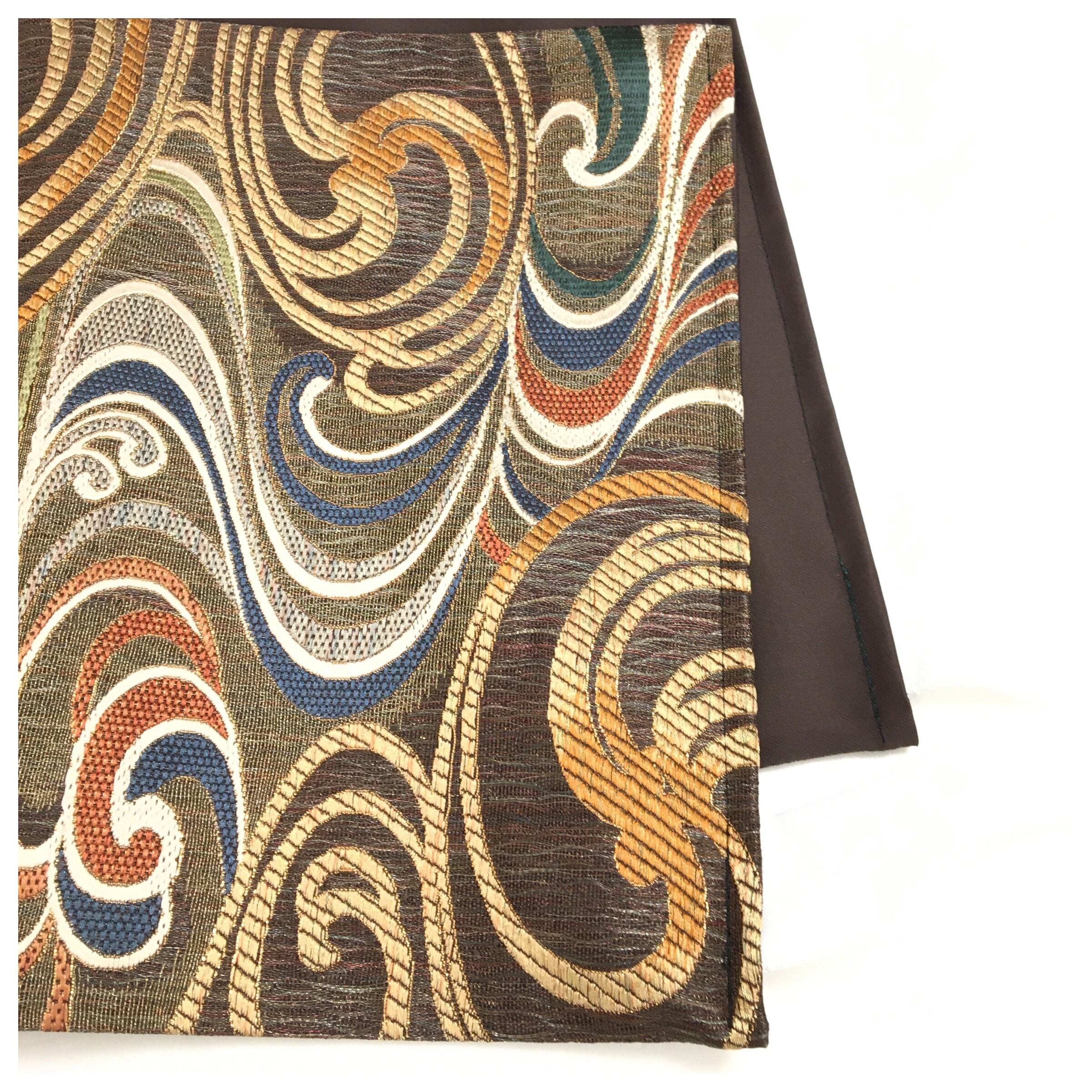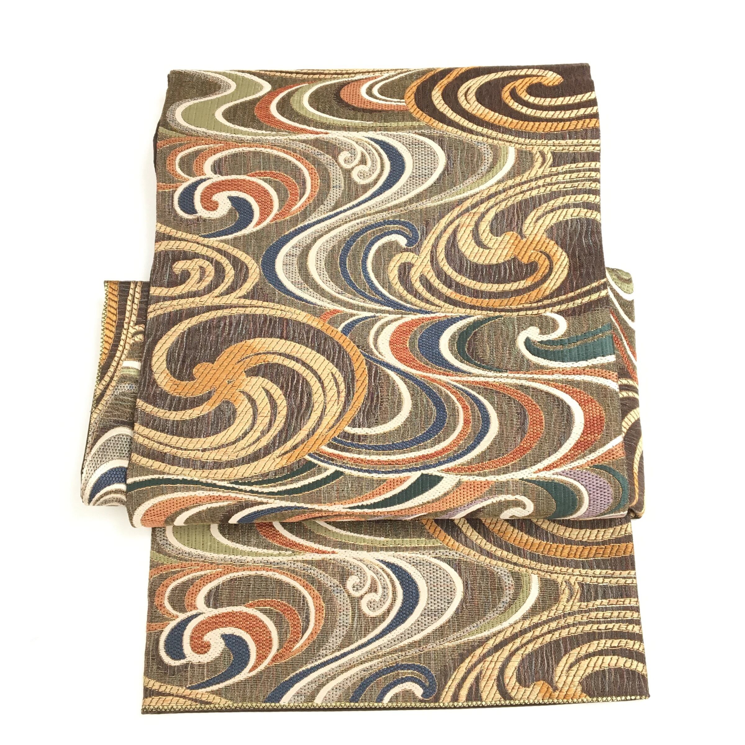 美品 未使用 正絹 楽帯 高級呉服 袋帯 焦げ茶 渦模様 二部式 二重太鼓 作り帯 です。