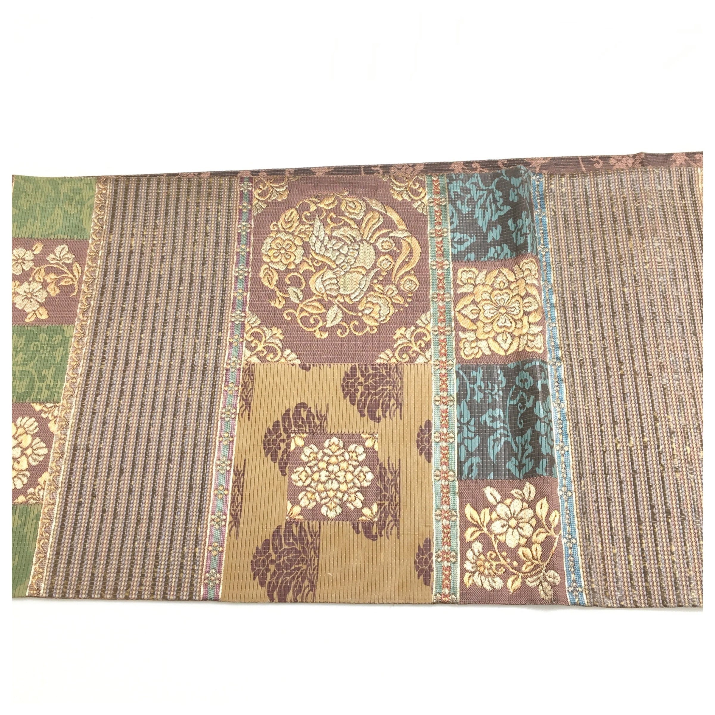 美品 正絹 楽帯 高級呉服 袋帯 茶 織り紋 二部式 二重太鼓 作り帯 です。