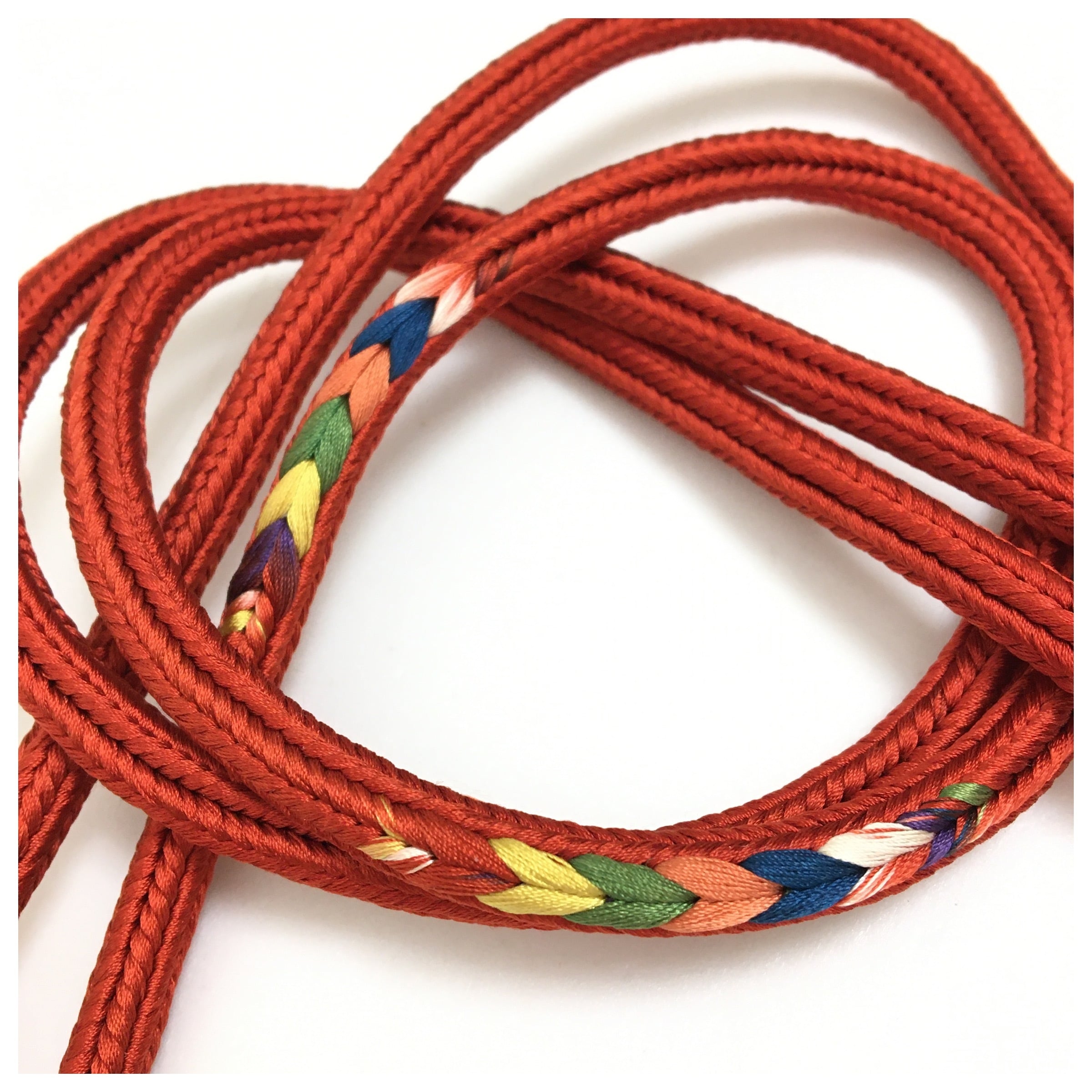 美品 未使用 正絹 帯締め 赤 カラフル 和装 小物 中古品です。