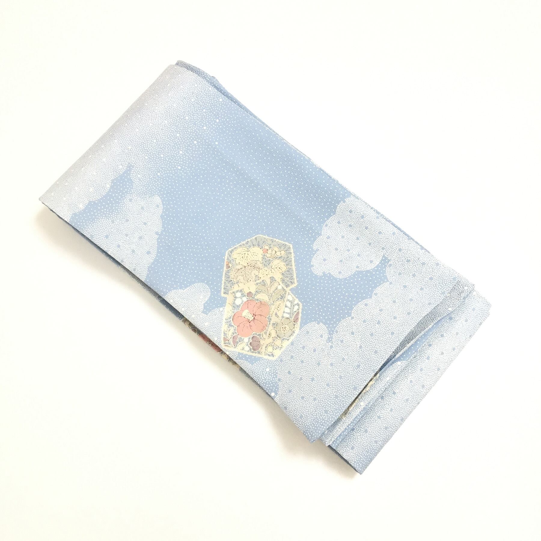 半幅帯 辻が花 水色 雲取り 全通 小紋柄 長尺420cm