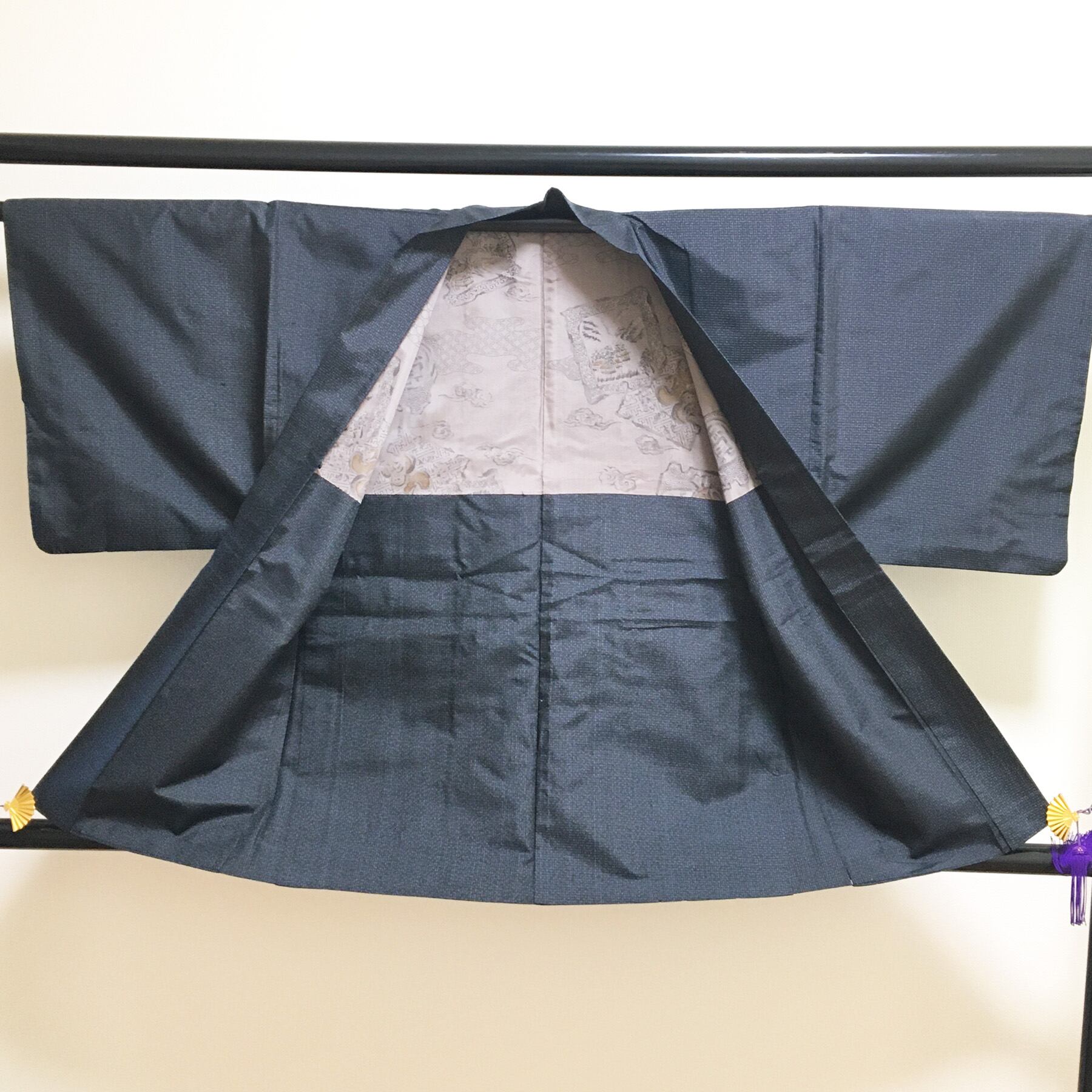美品 正絹 アンサンブル 紺 身丈145 裄65.5 中古品 です。