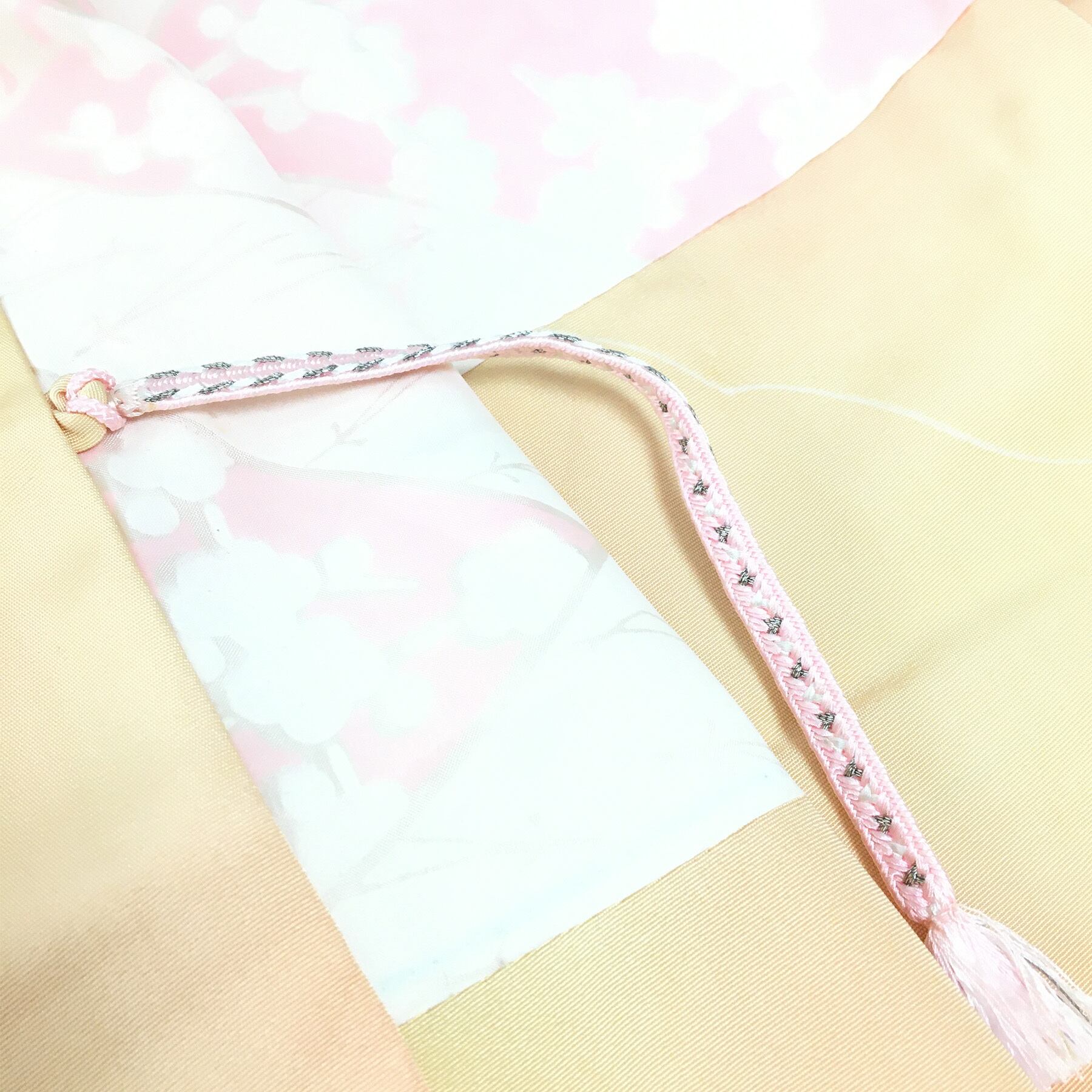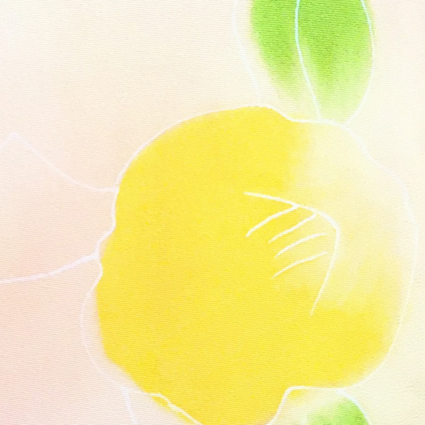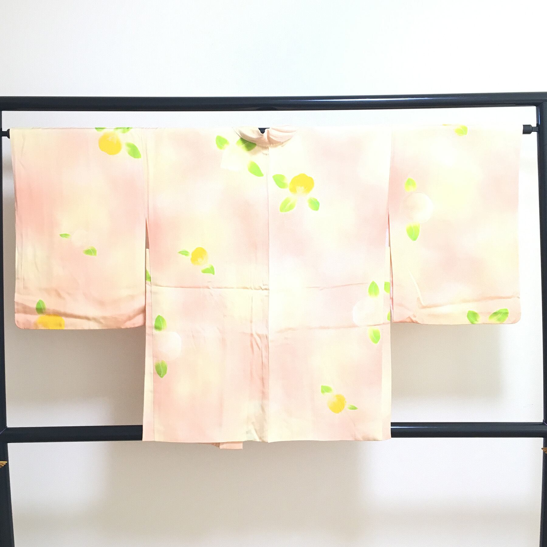 正絹 羽織 薄い黄色 花柄 身丈78 裄65 リサイクル着物 です。