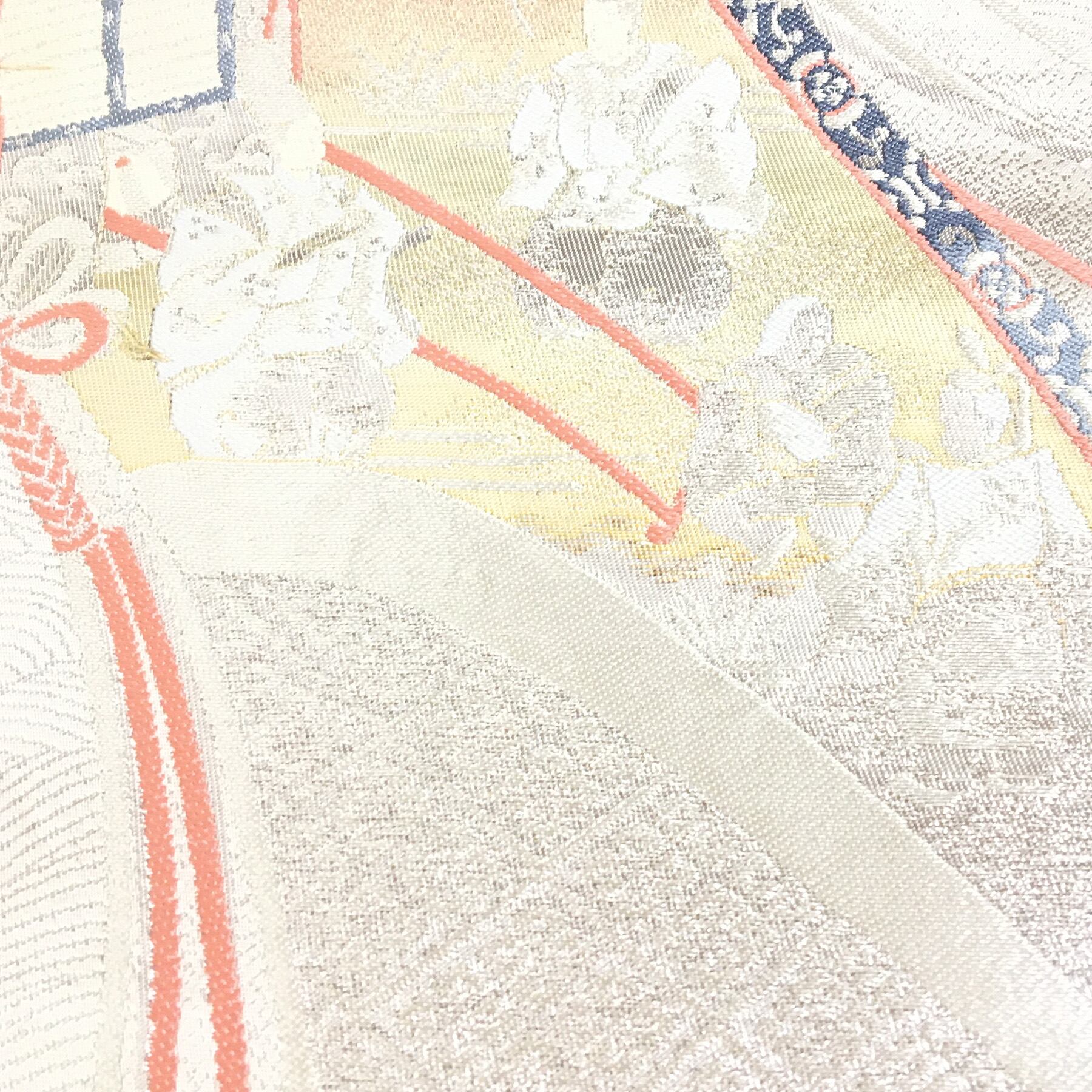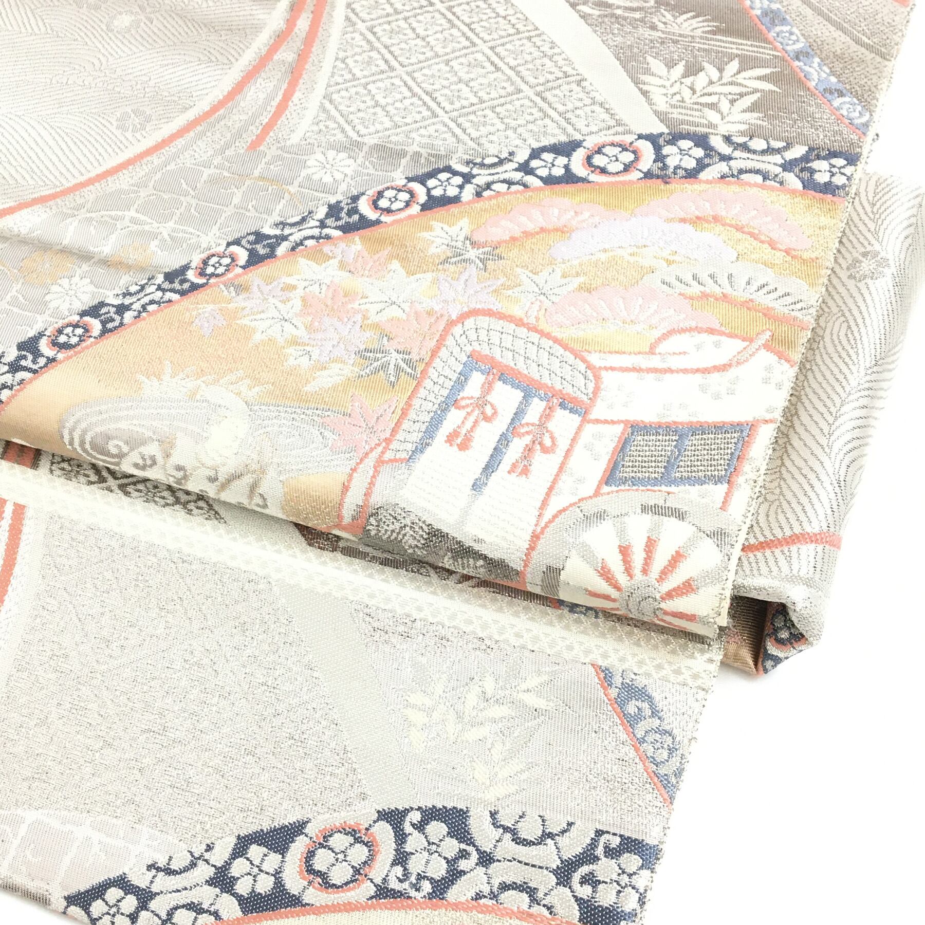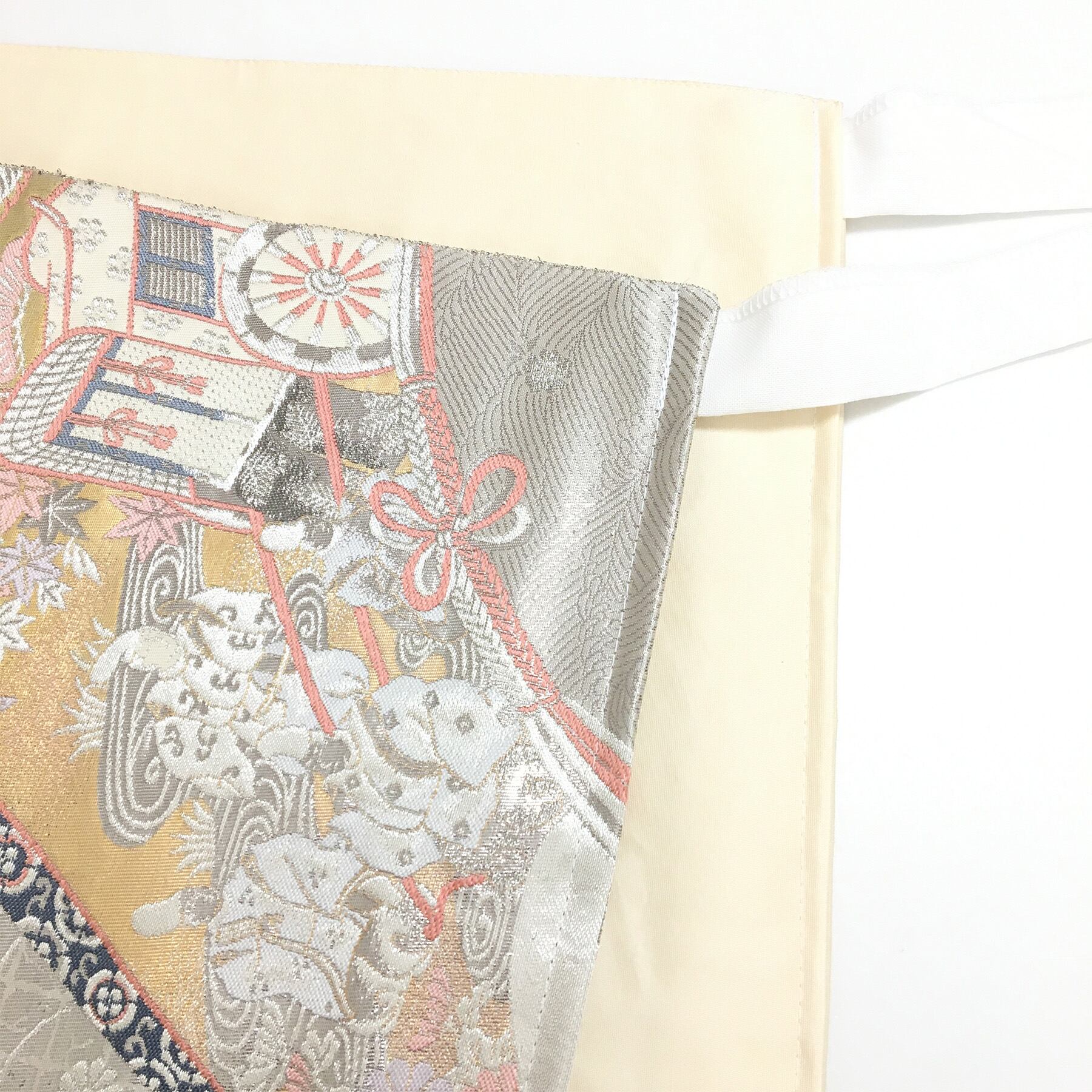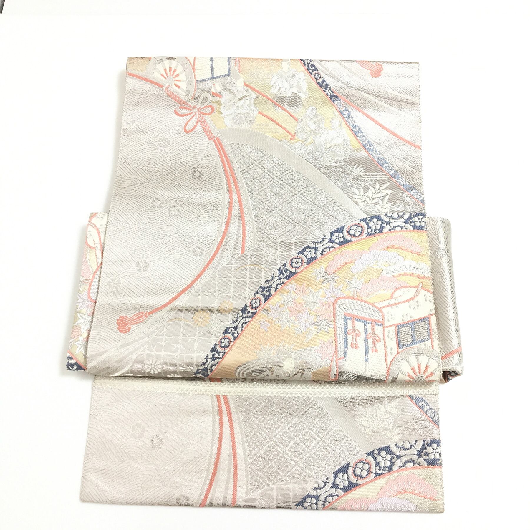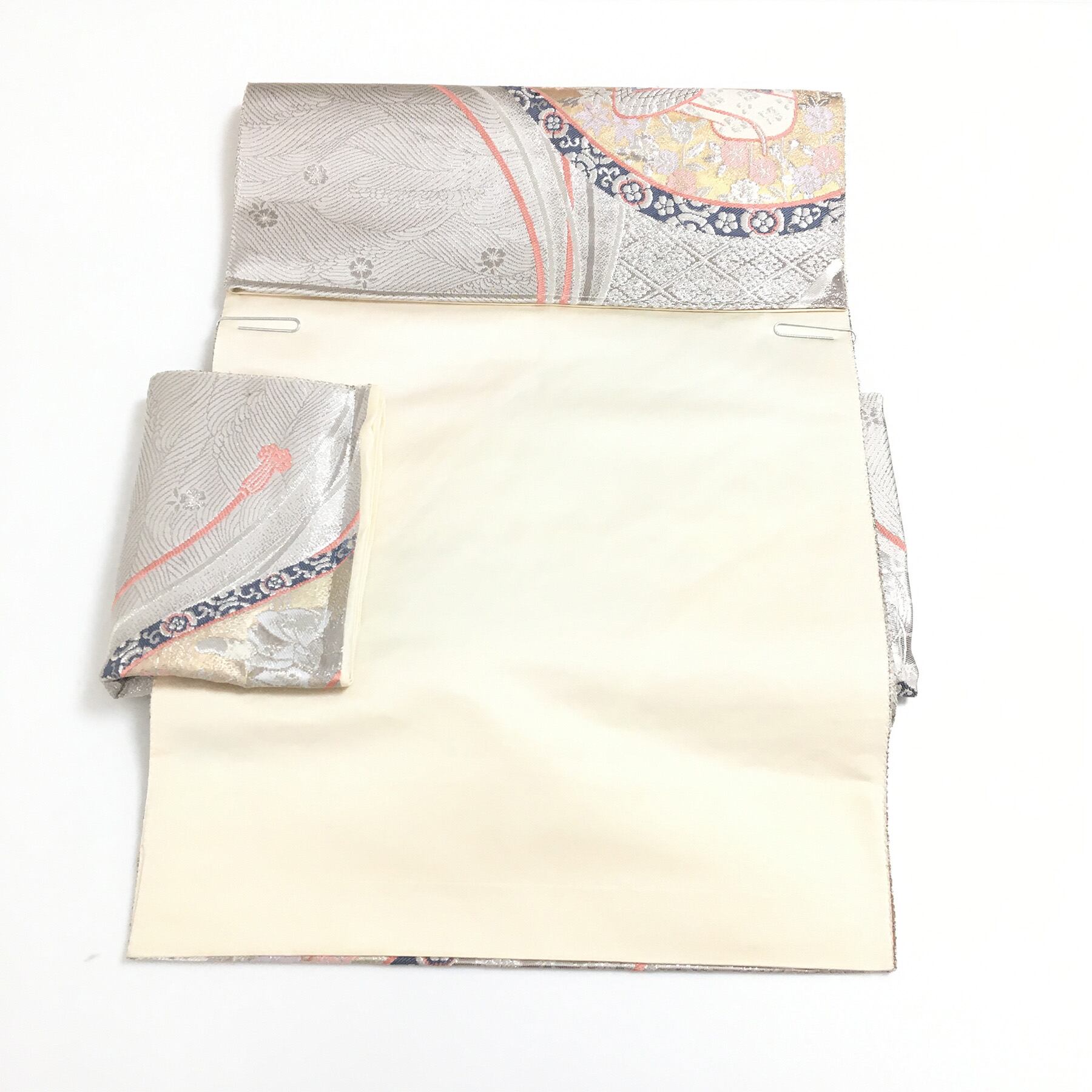◇作り帯◇ 正絹 二部式 袋帯 シルバー 御所車 二重太鼓 付け帯