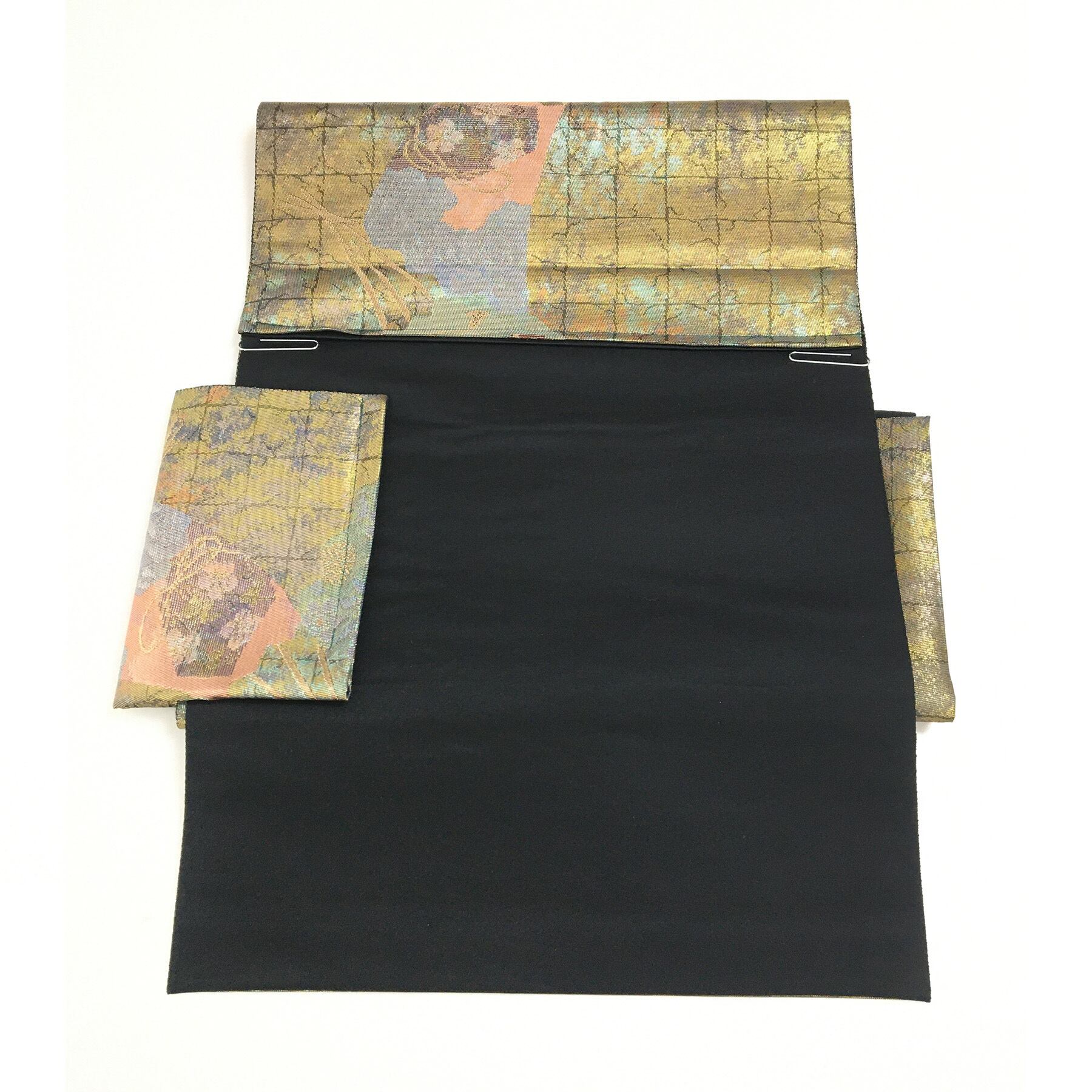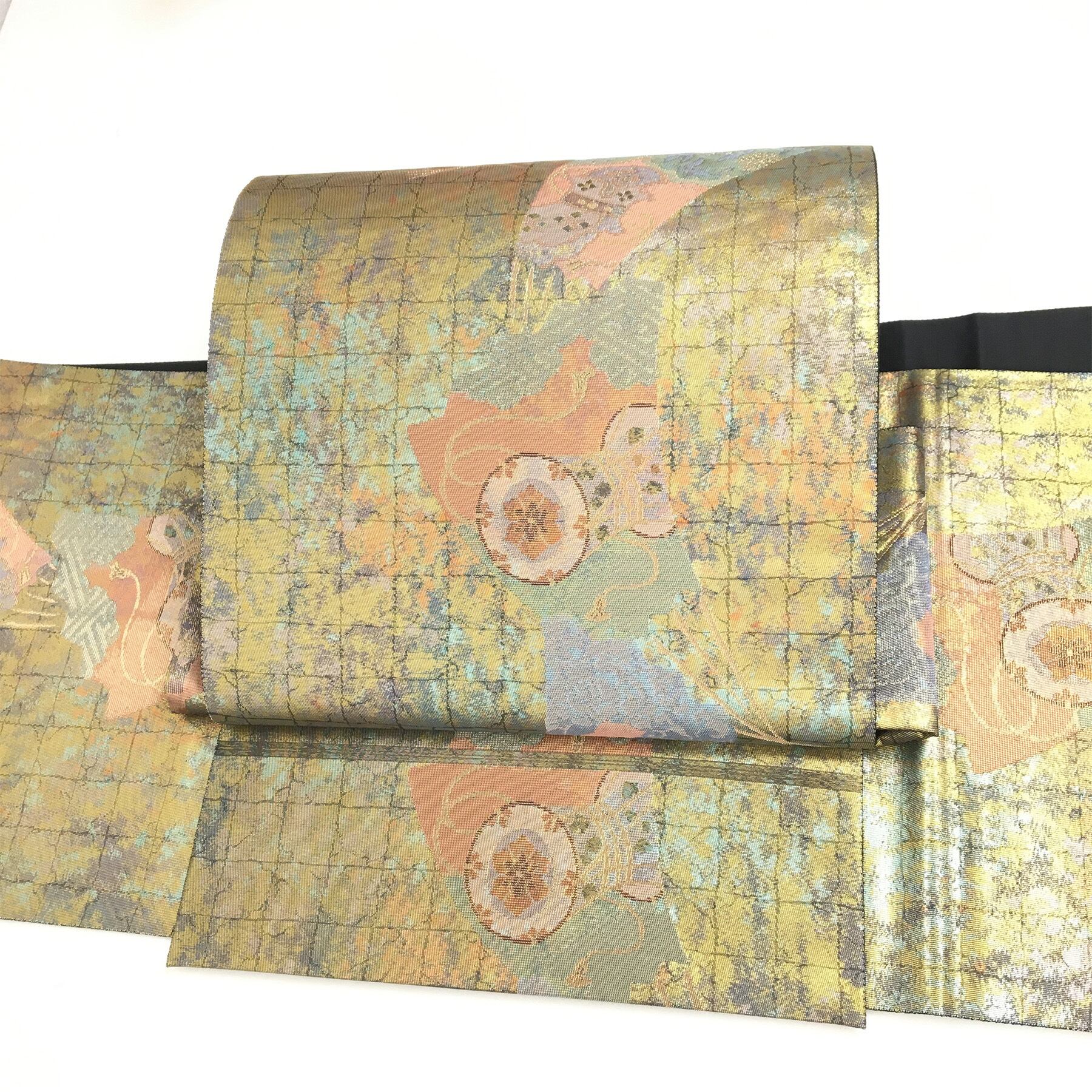 正絹 付け帯 楽帯 銅箔 鼓柄 二部式 二重太鼓 作り帯 です。