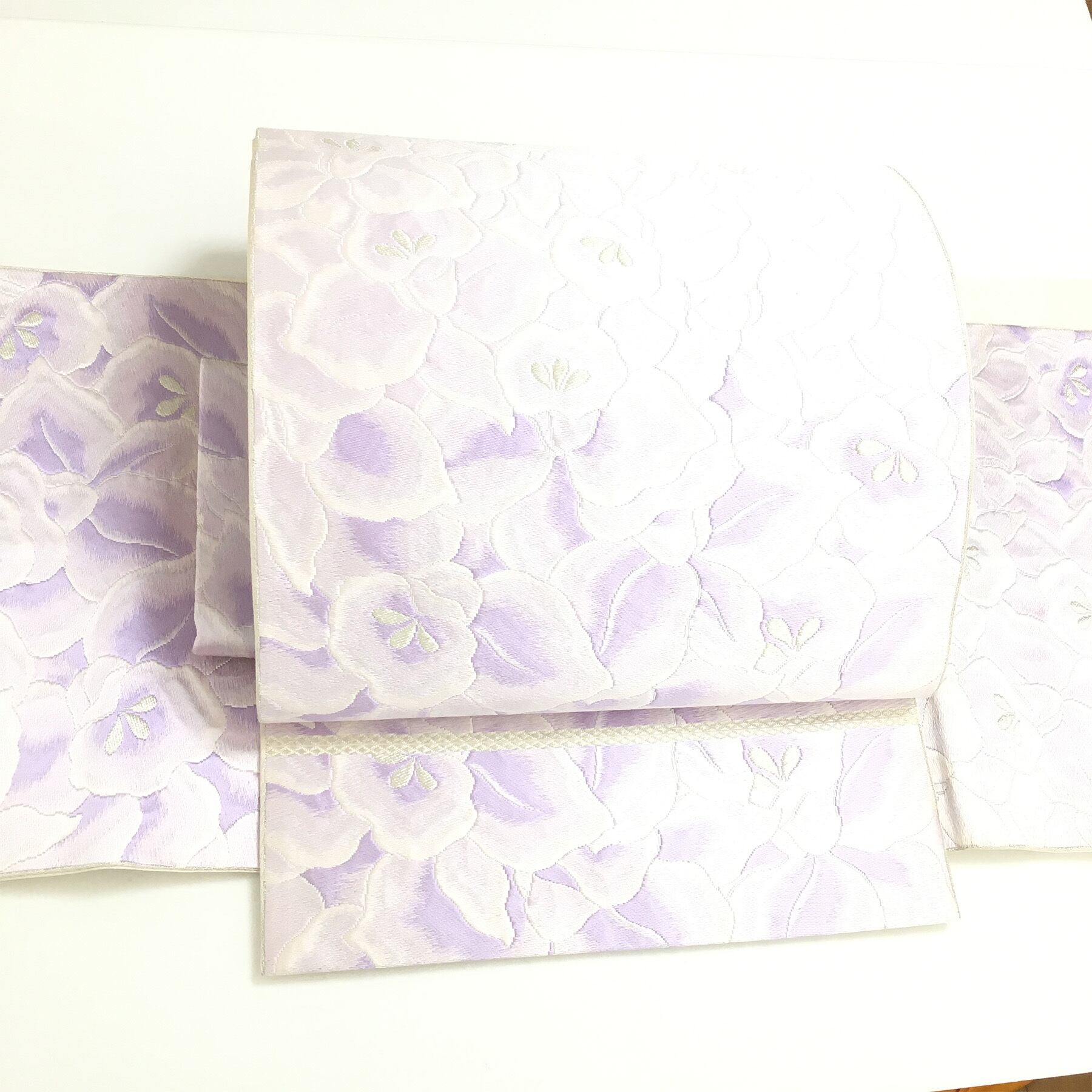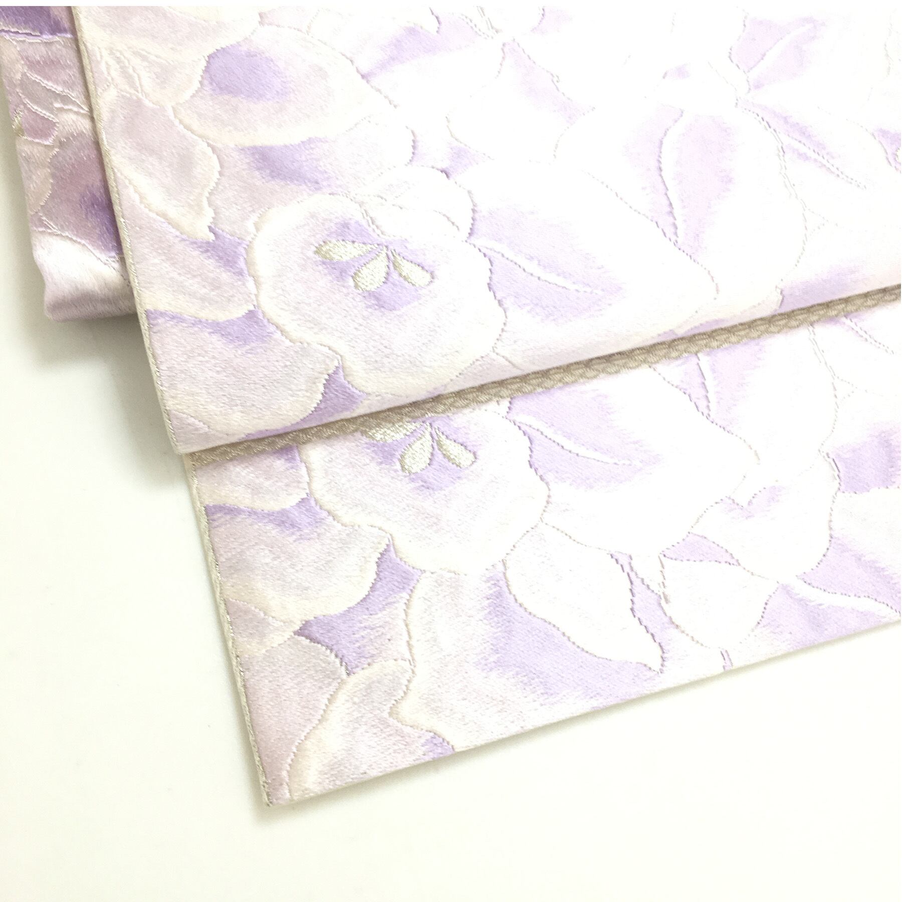 正絹 付け帯 楽帯 淡い紫 華 刺繍柄 二部式 二重太鼓 作り帯 です。