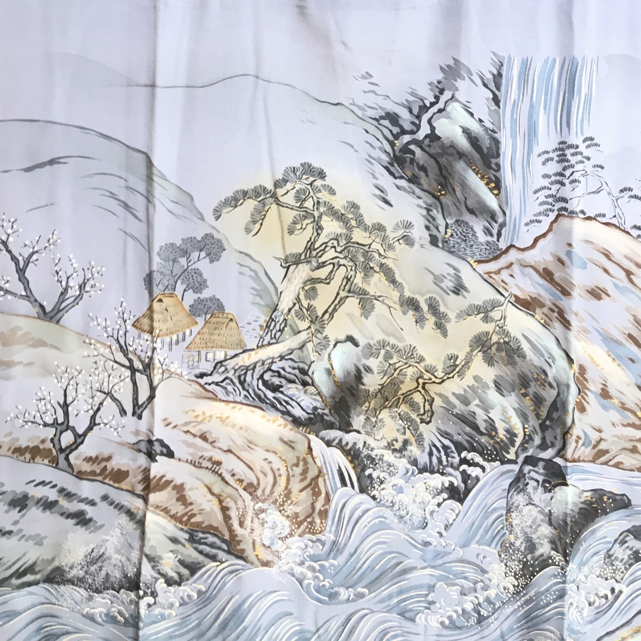 正絹 長襦袢 男物 風景柄 ブルー 身丈140 裄66 中古品 です。