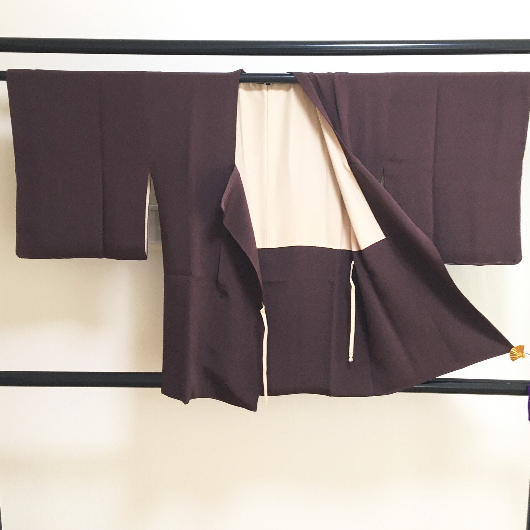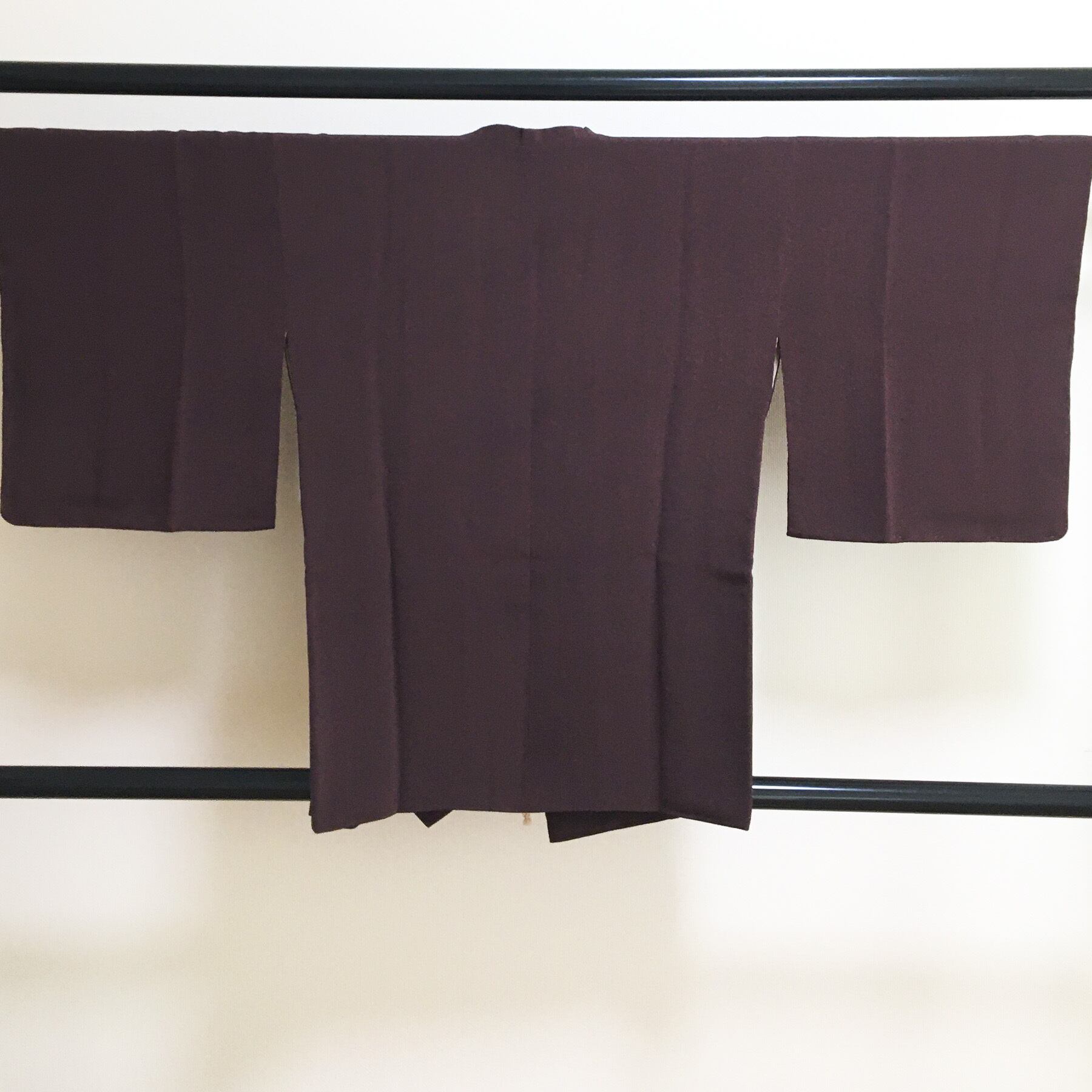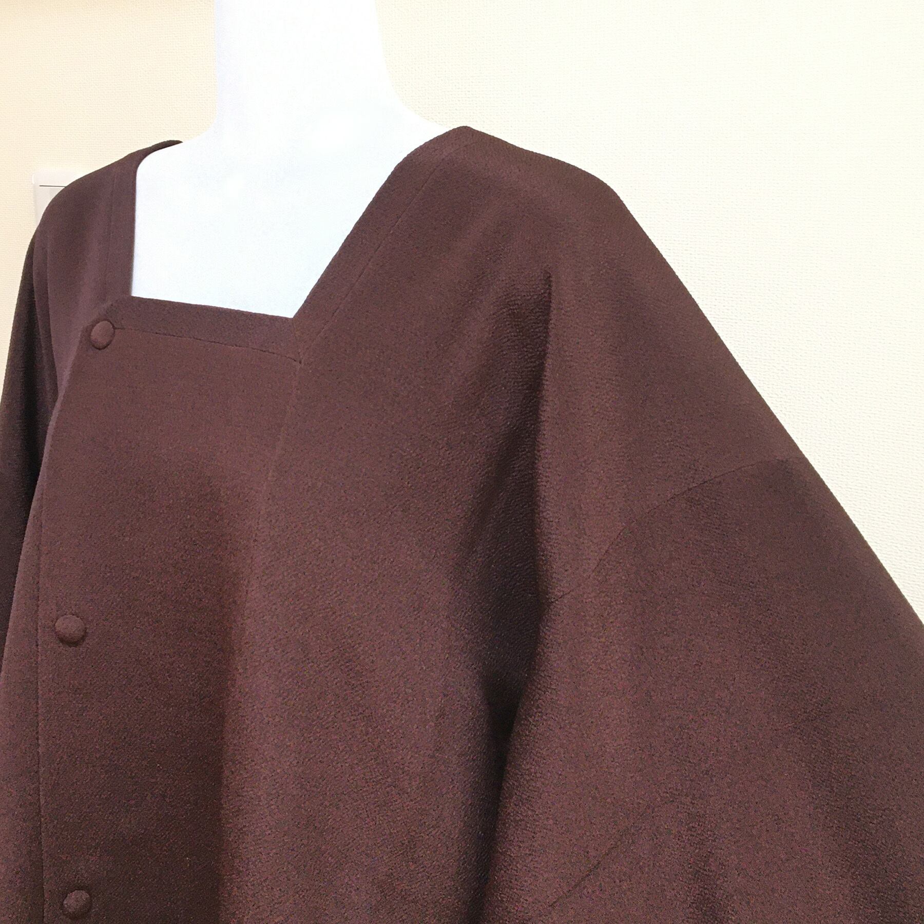 美品 正絹 道行コート 焦茶 色無地 縮緬 身丈80 裄64 リサイクル着物 です。