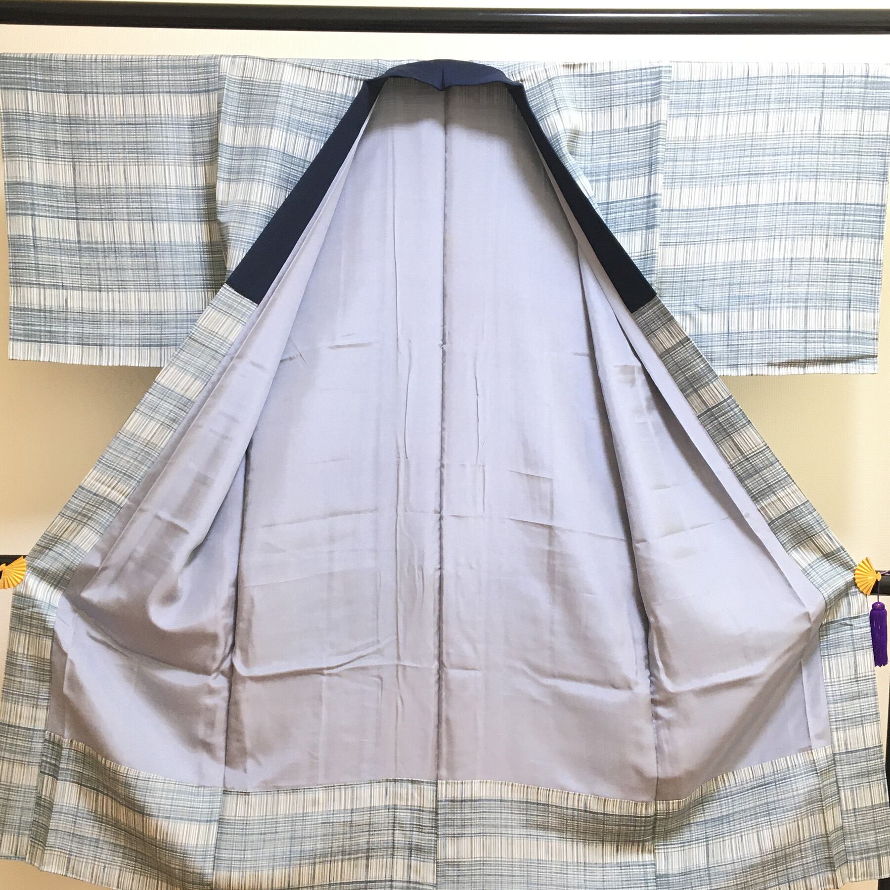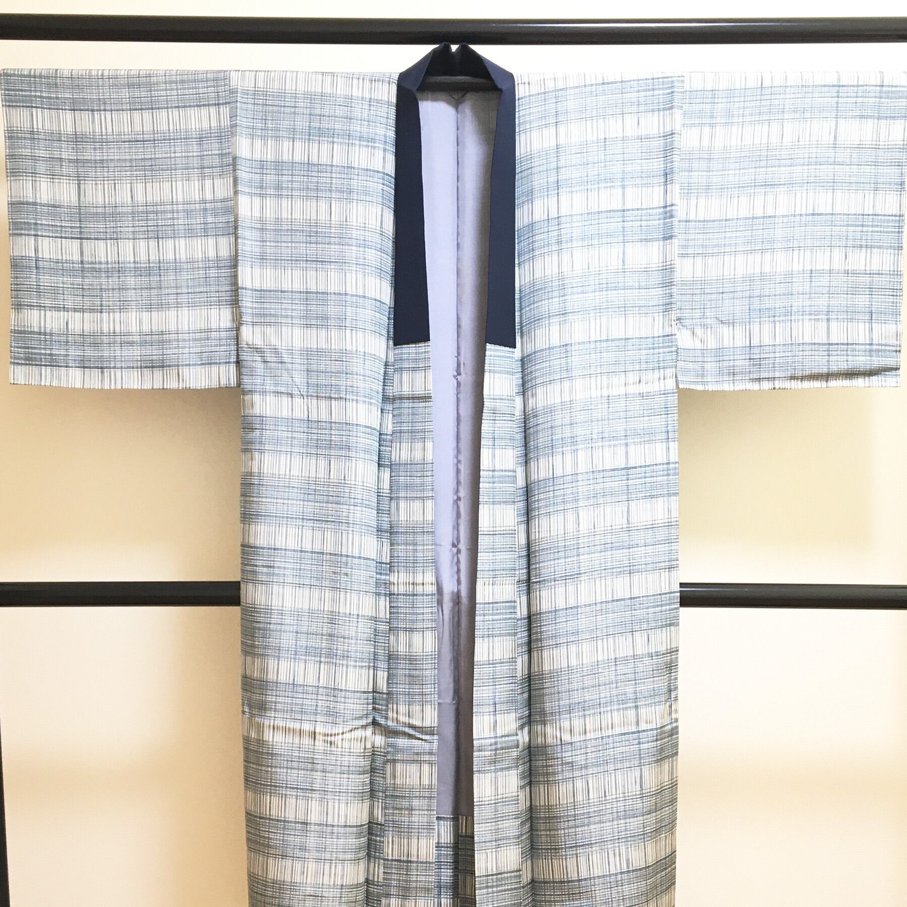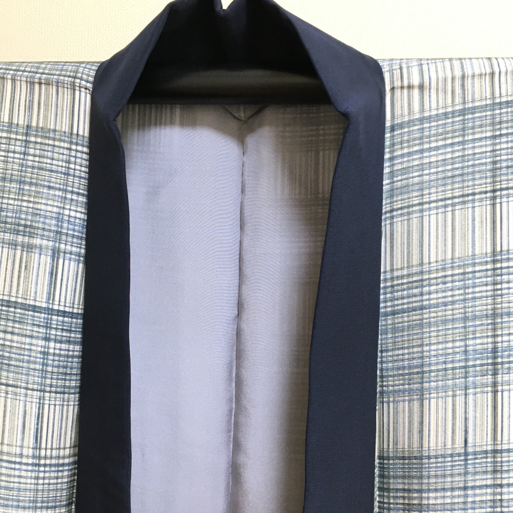 美品 正絹 長襦袢 袷 男物 格子柄 身丈130 裄67 中古品 です。