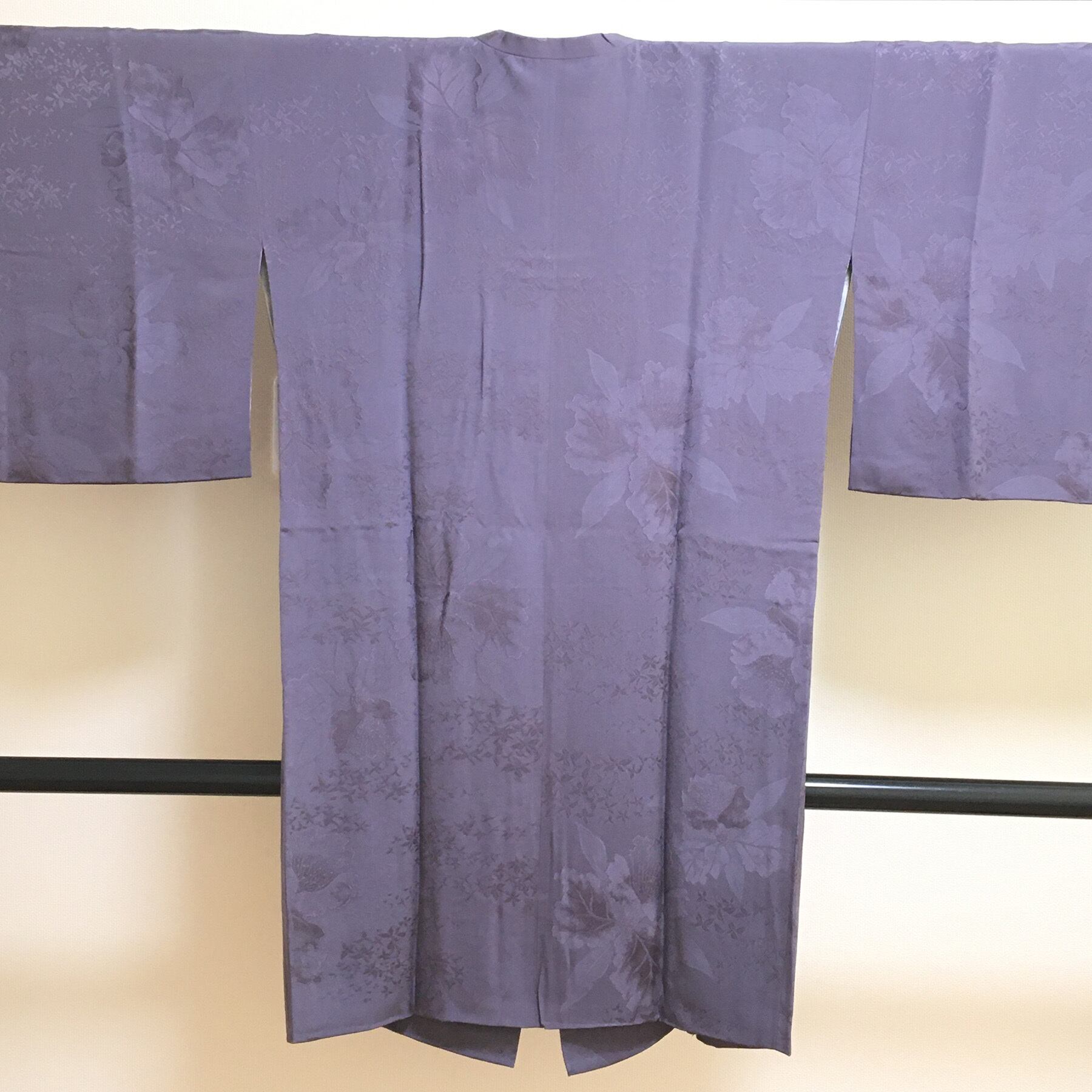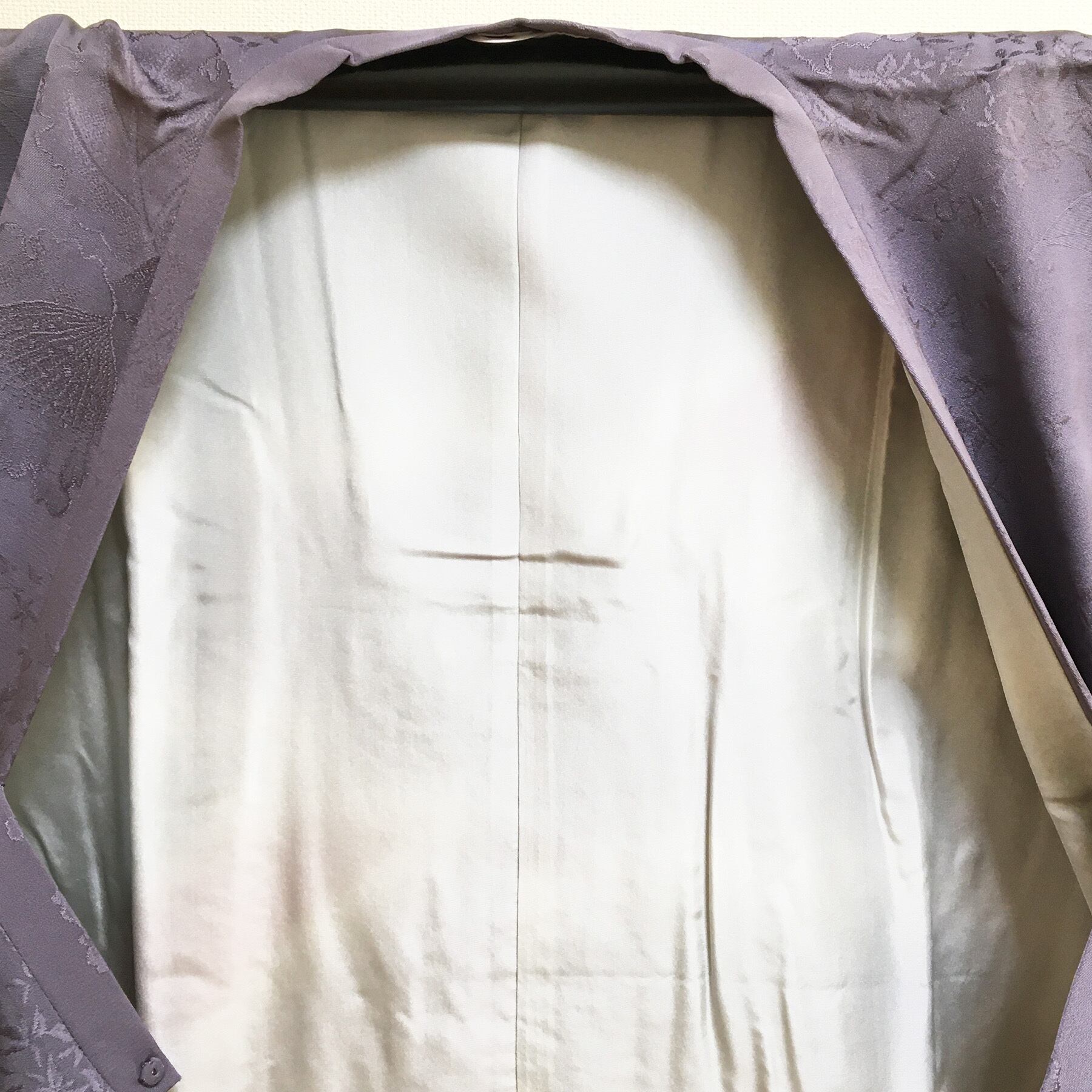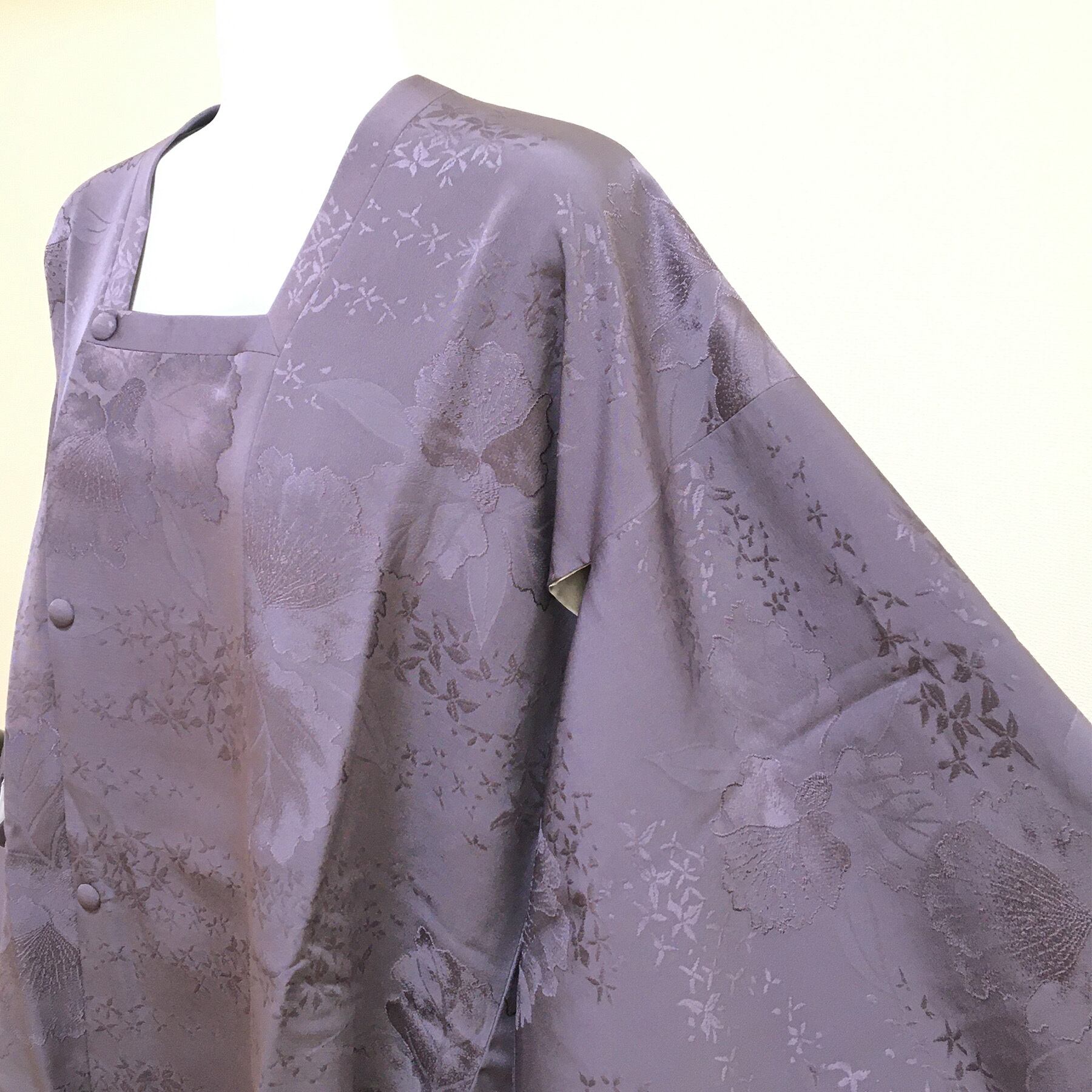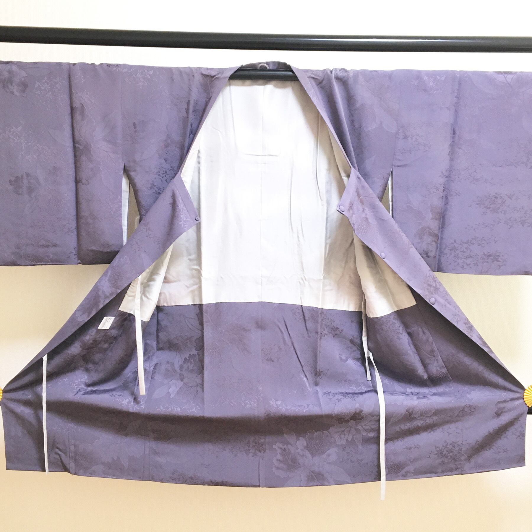紫色に大きな華模様がお洒落で長さのある道行コートです。