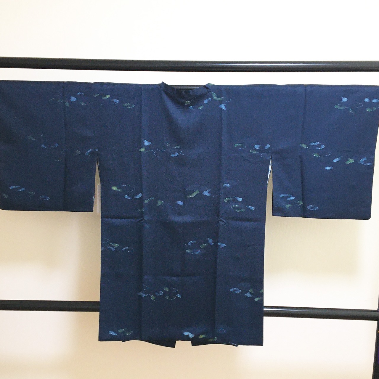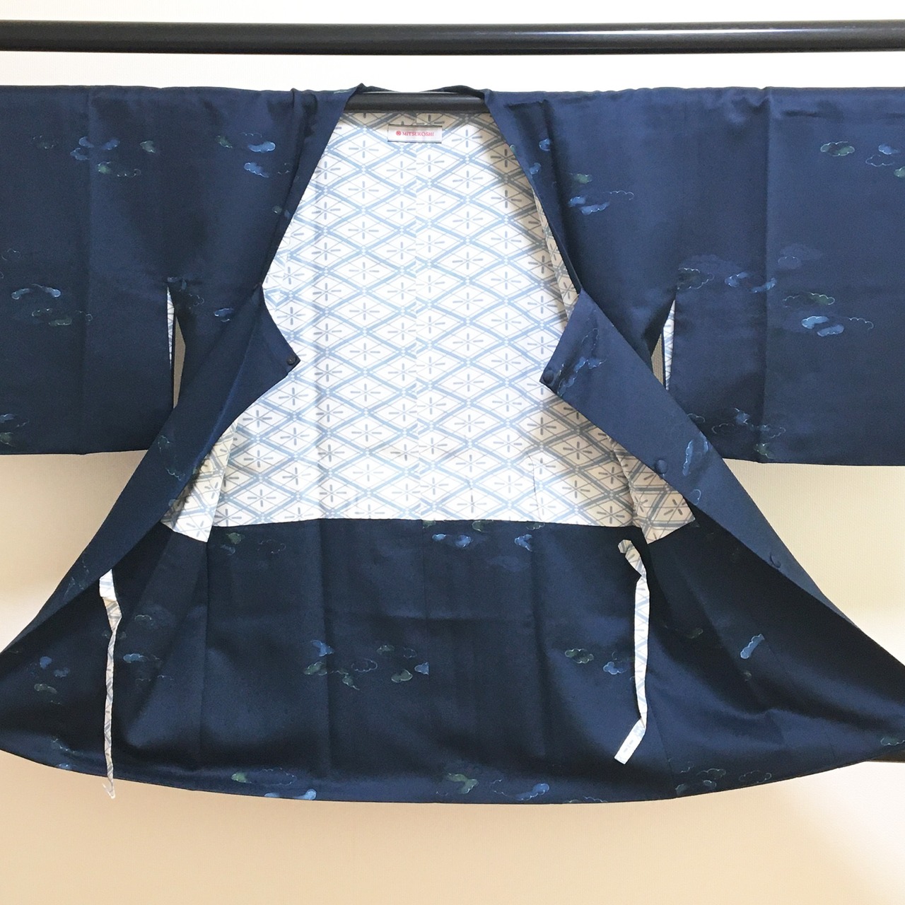 青味のある紺色に雲取り柄の上品な道行コートです。