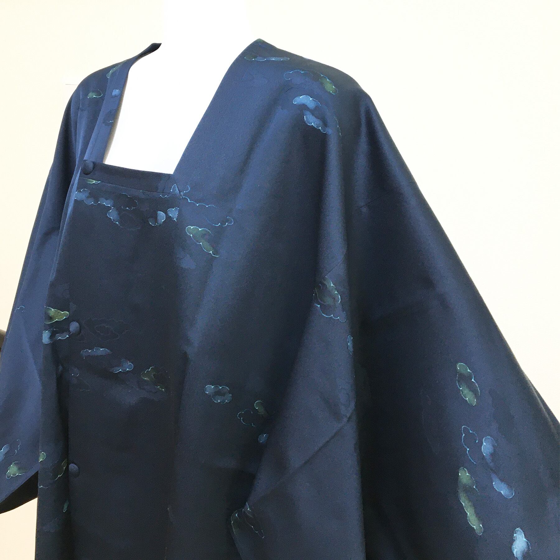 美品 正絹 道行コート 雲取り 濃紺 身丈86 裄65.5 リサイクル着物 です。