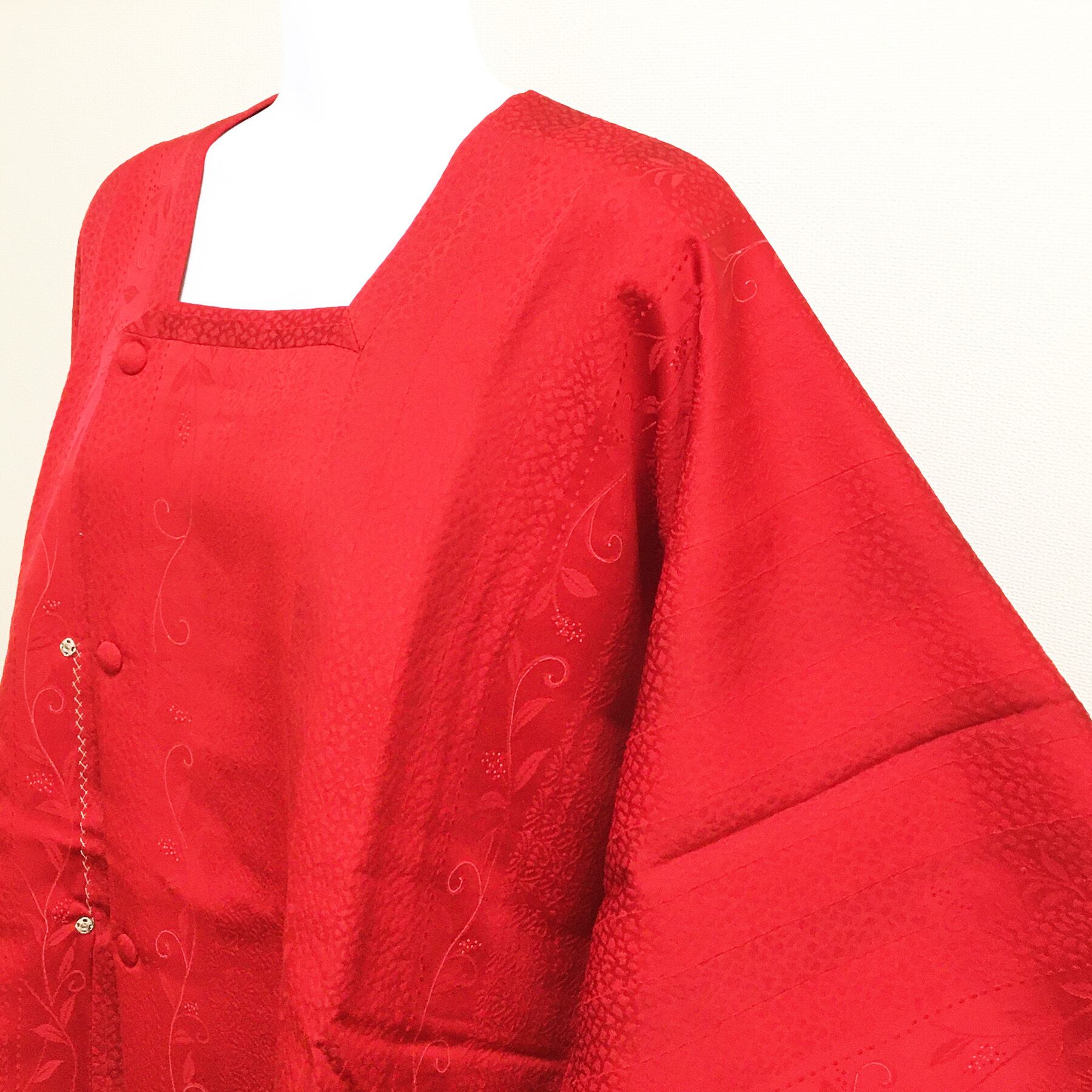 正絹 道行コート 赤 地紋華 身丈83 裄65.5 リサイクル着物 です。