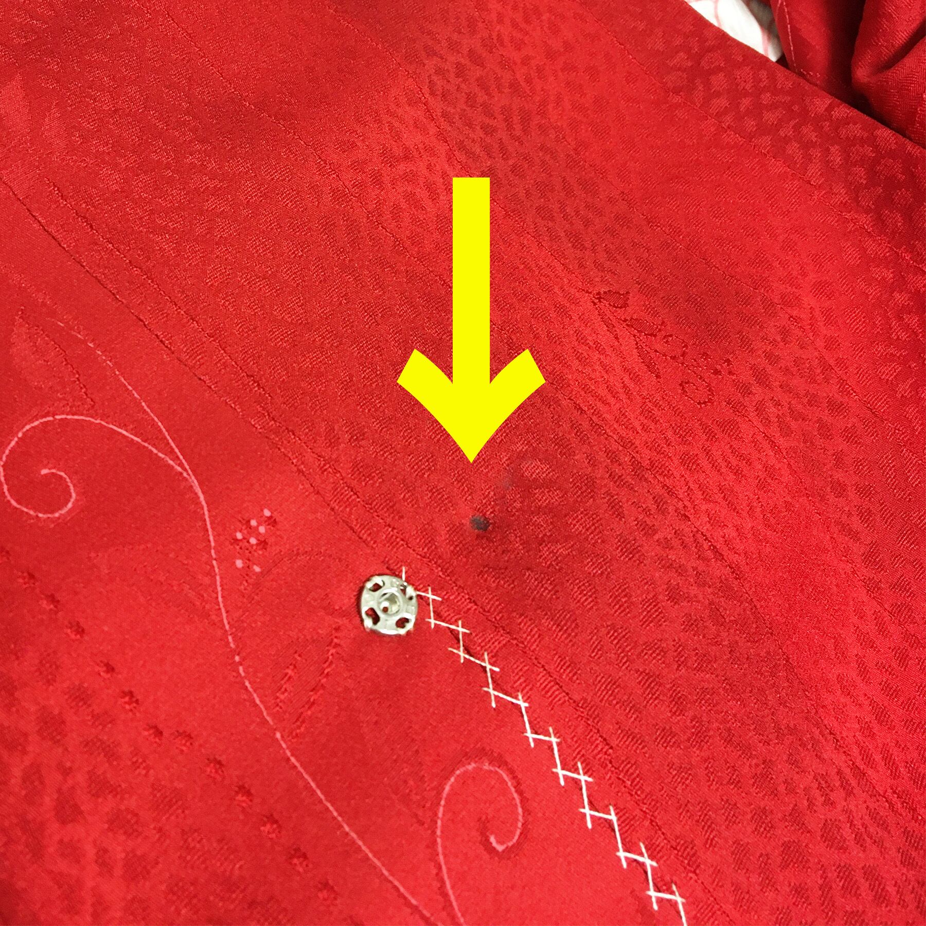 保管状態が良くキレイですが、一点、下前にボタン跡の小さい点シミがあります。