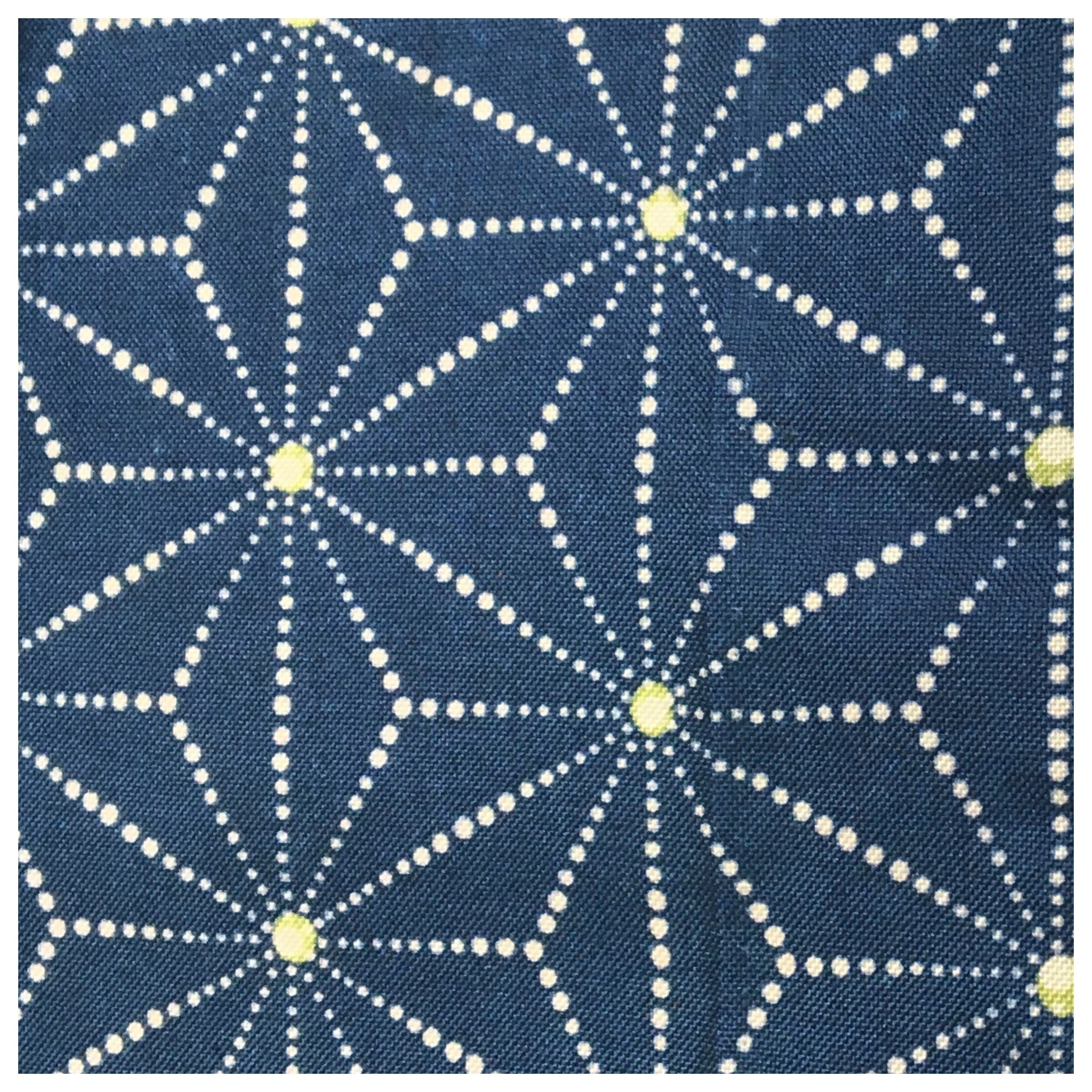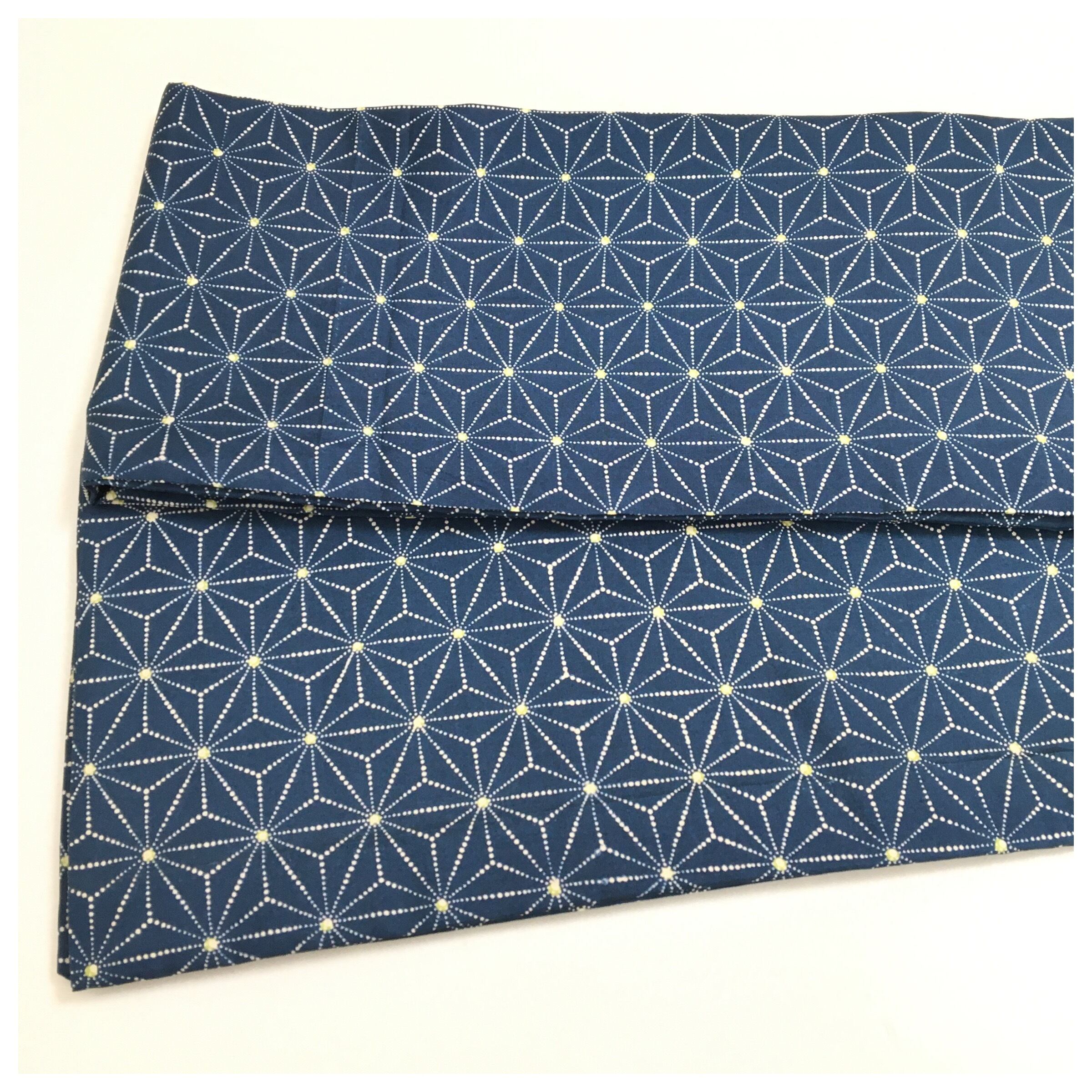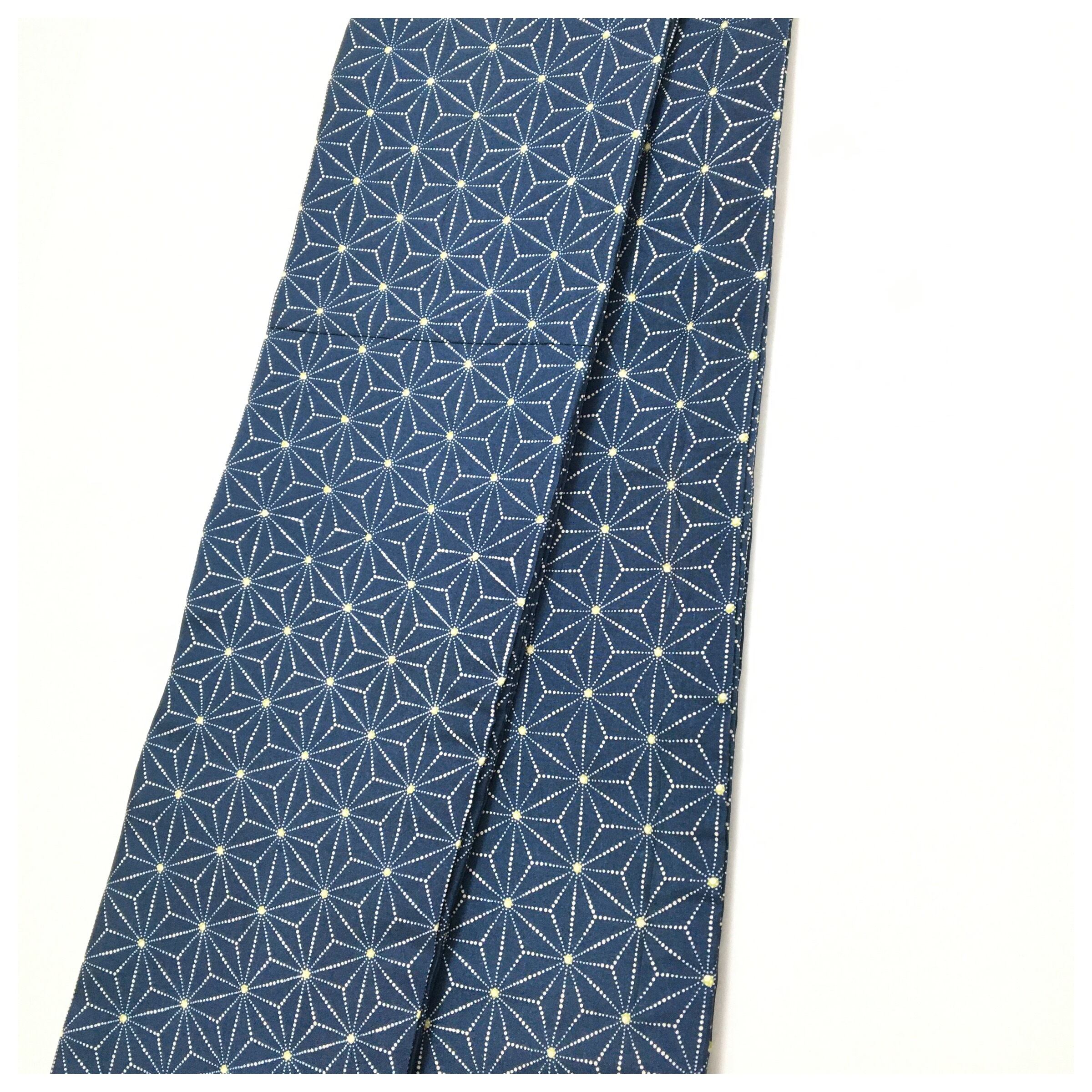 美品 上質 正絹 お召 麻の葉 全通柄 紺 長尺396cm
