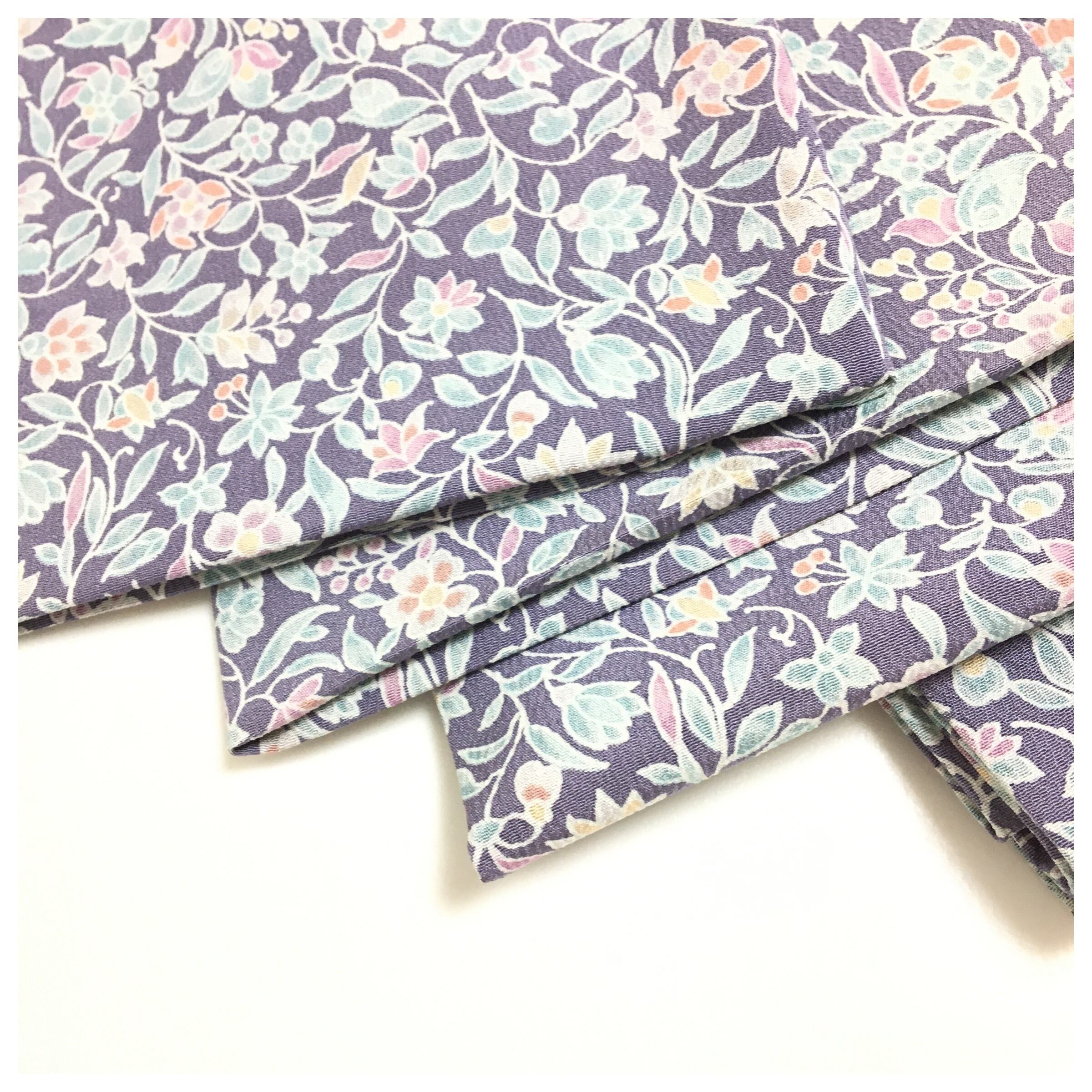 正絹素材の柔らかい小紋の反物で仕上げた半幅帯です。