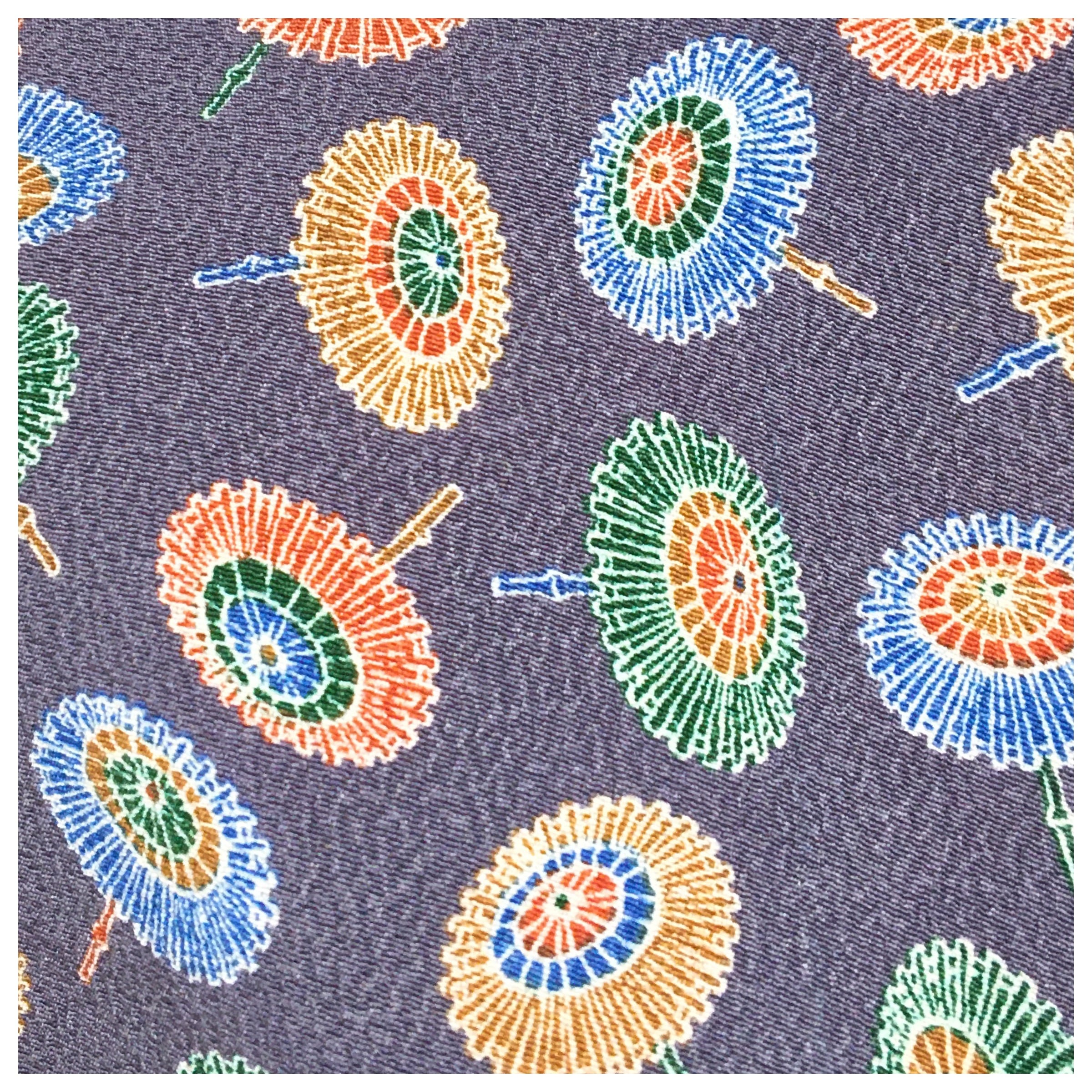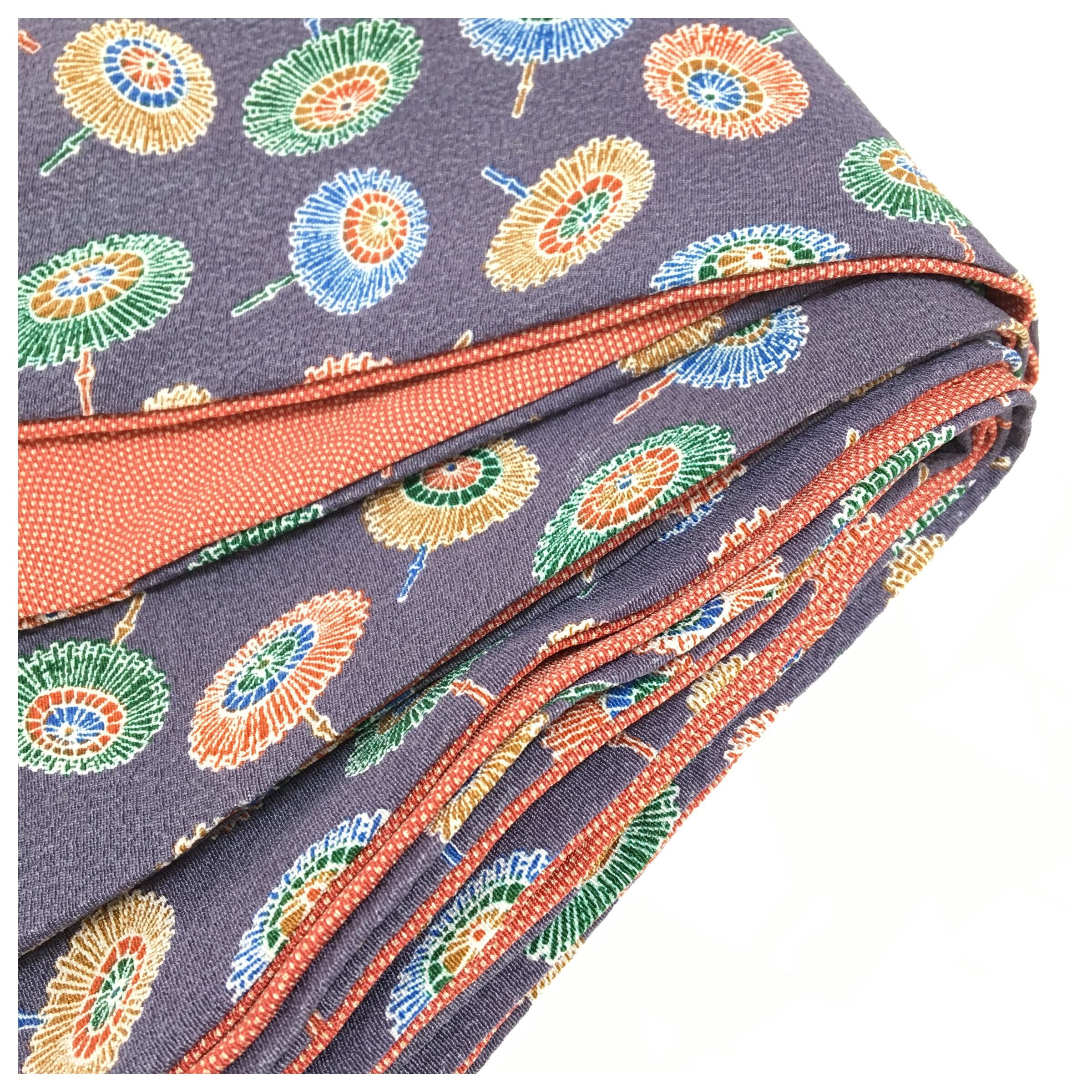 正絹 兵児帯 番傘x鮫小紋 薄手 個性派 両面違い 長さ404