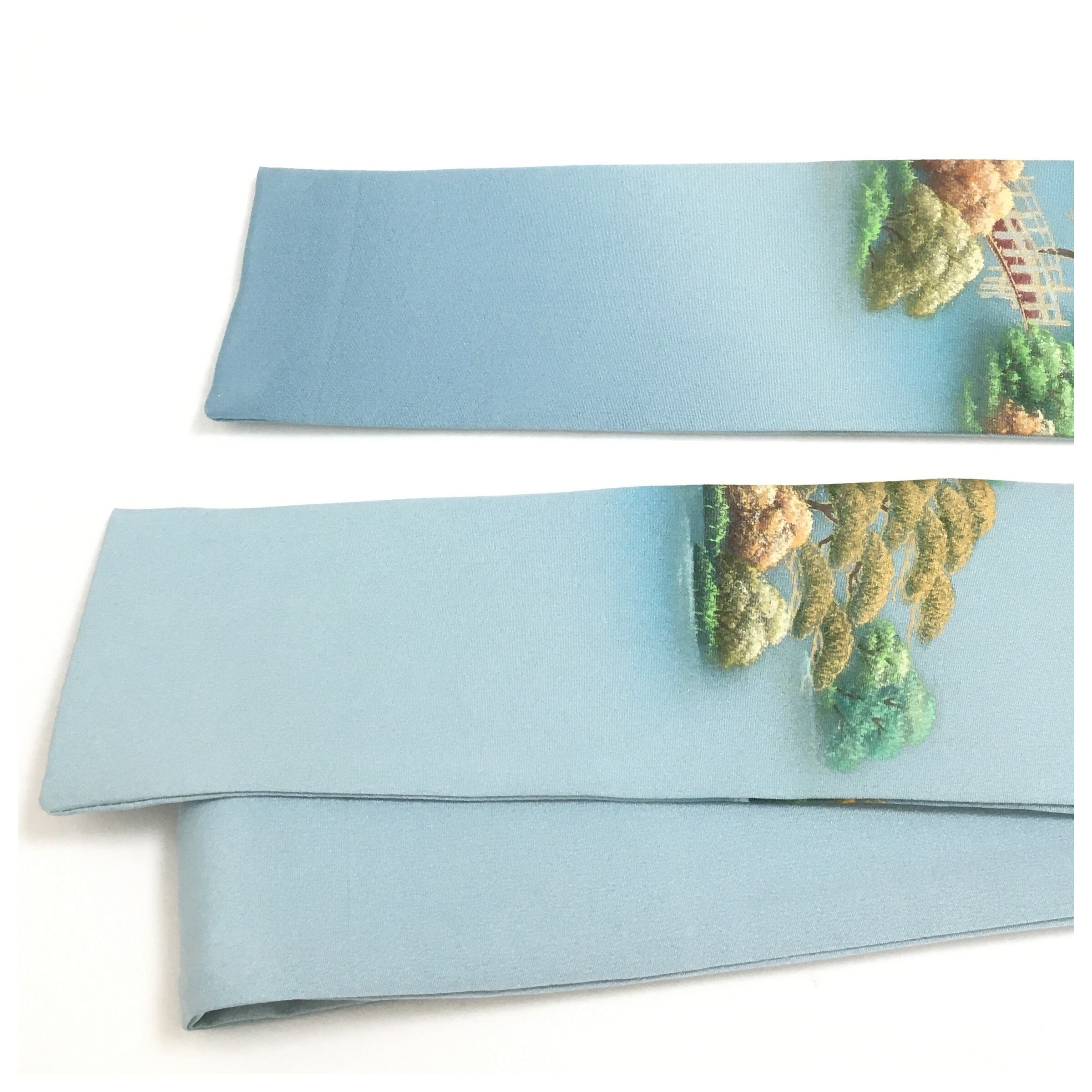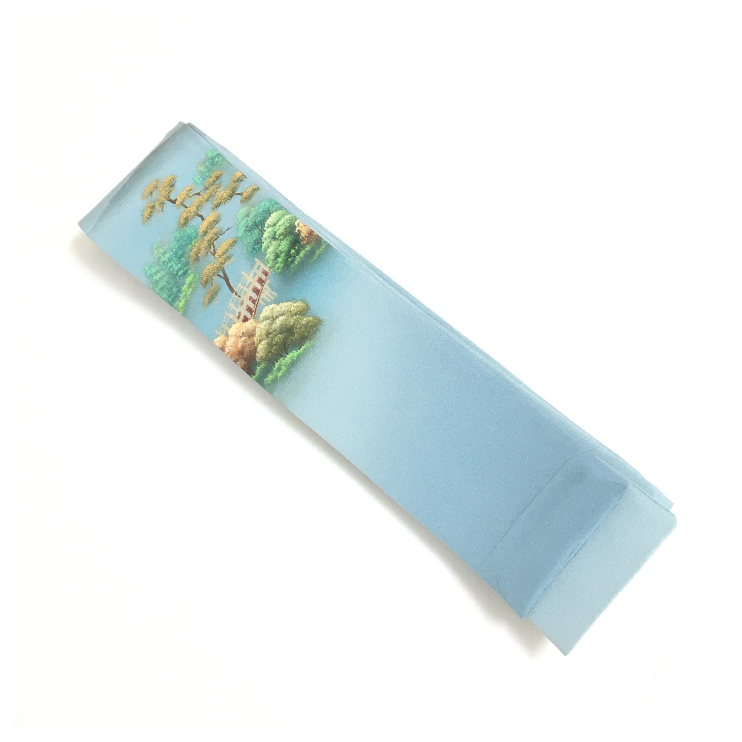 美品 上質 正絹 LL寸 水色 風景柄 男物 部分柄 長尺460cm
