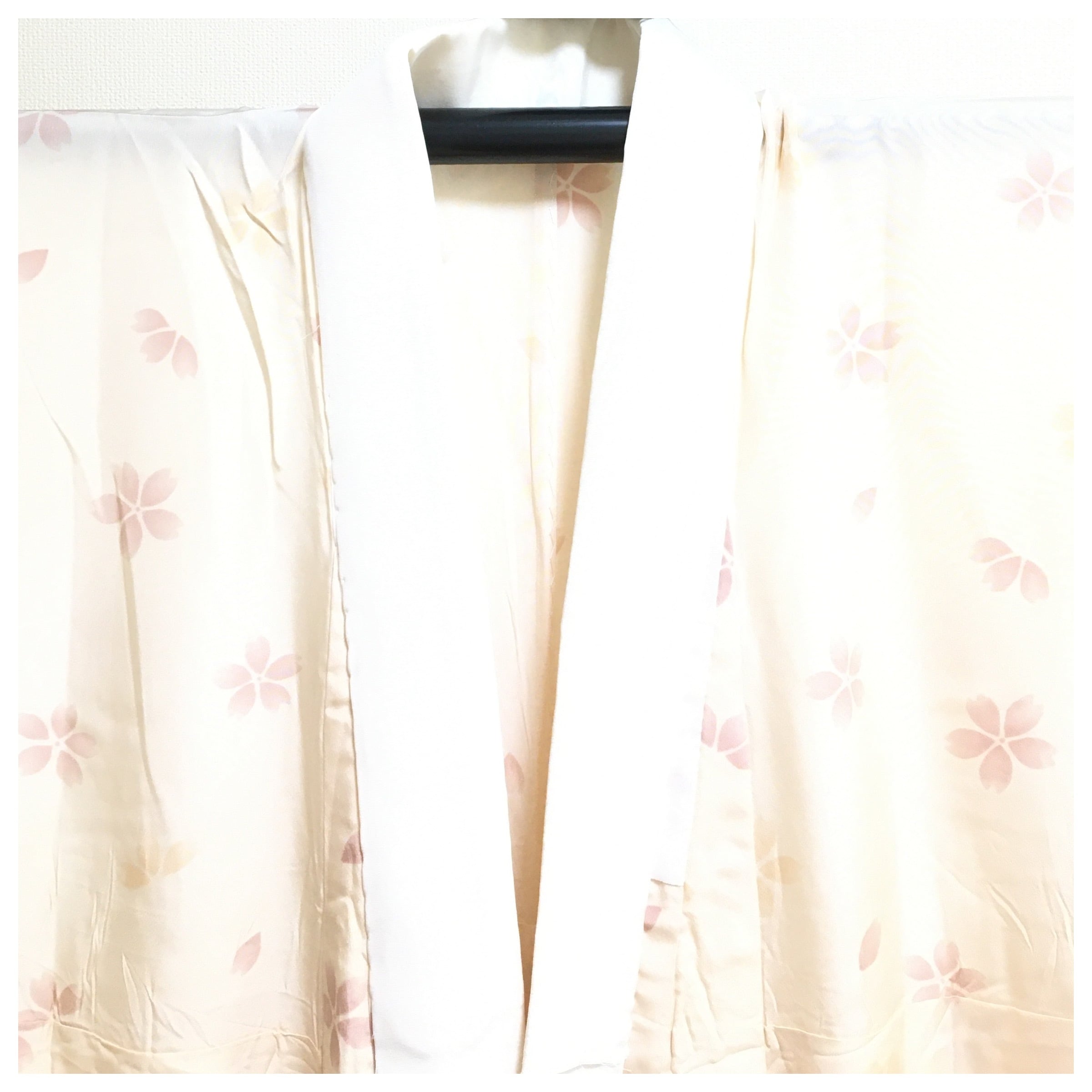 正絹 長襦袢 ピンク 花びら 身丈131 裄63 リサイクル 中古品 です。