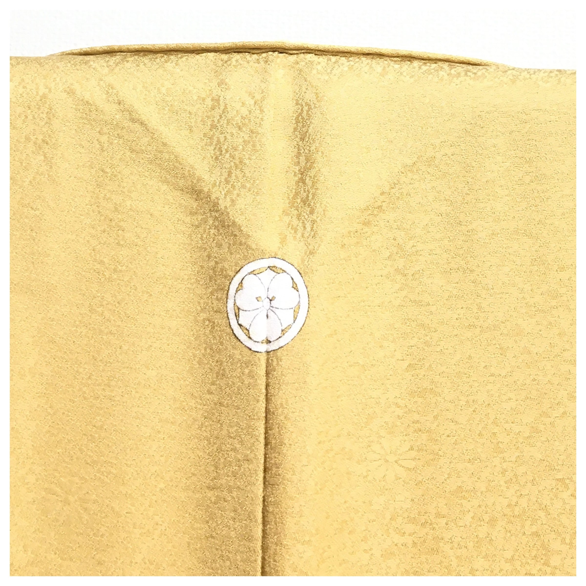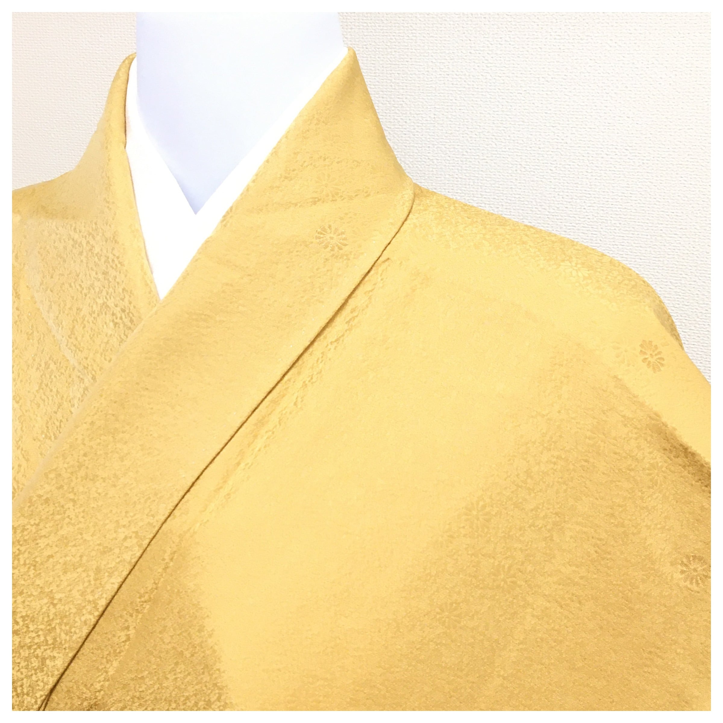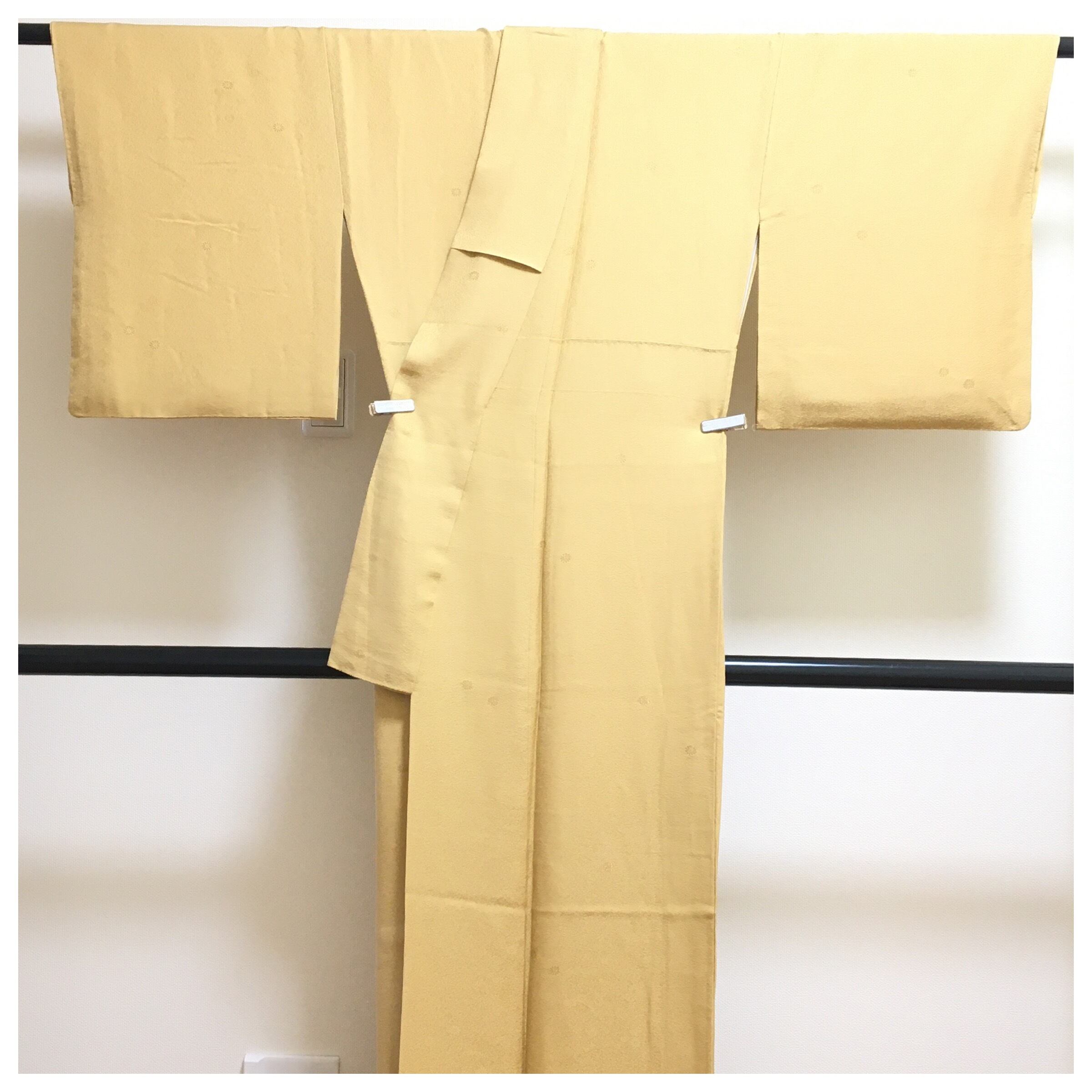 美品 上質 正絹 色無地 一紋入 山吹色 身丈159 裄65 リサイクル着物 です。