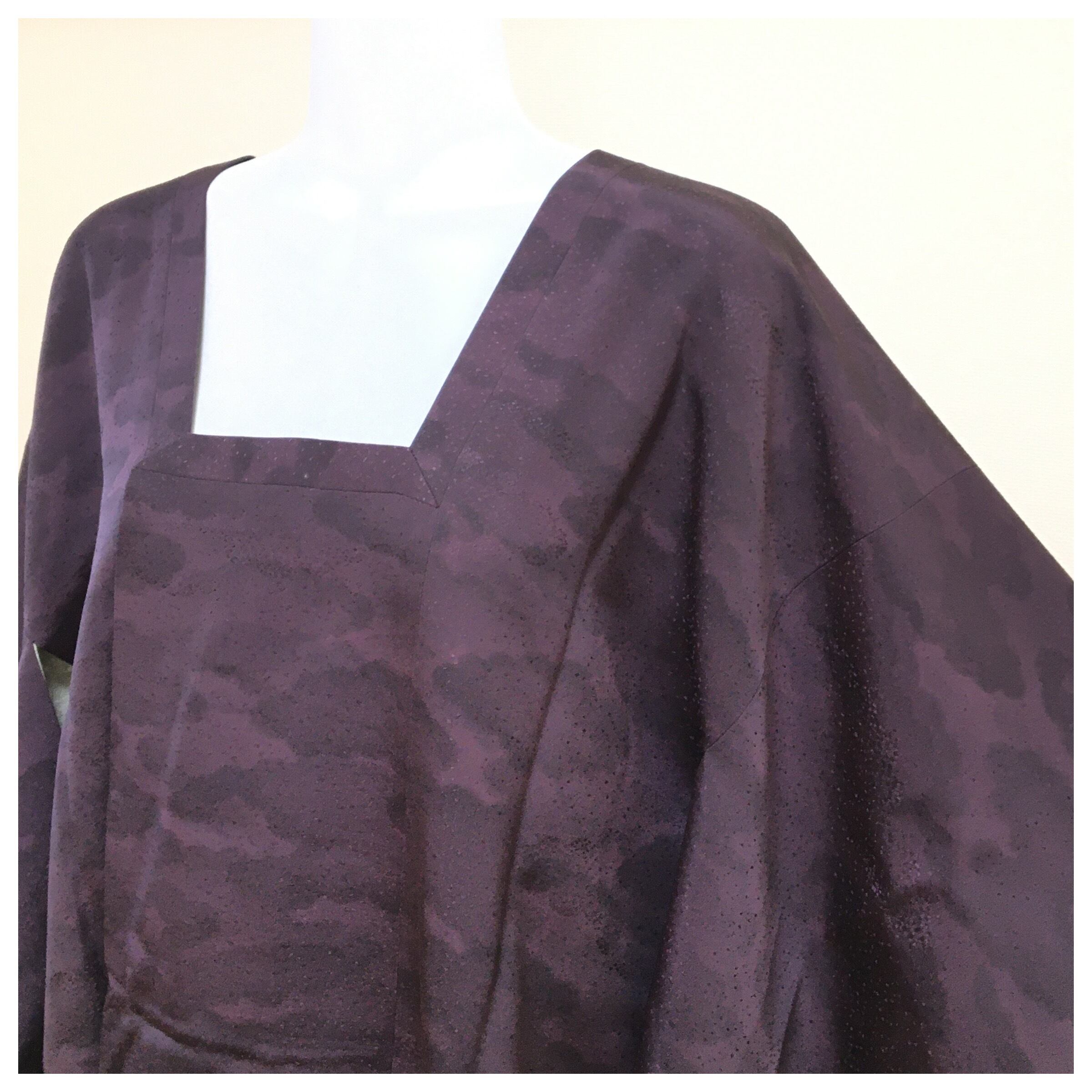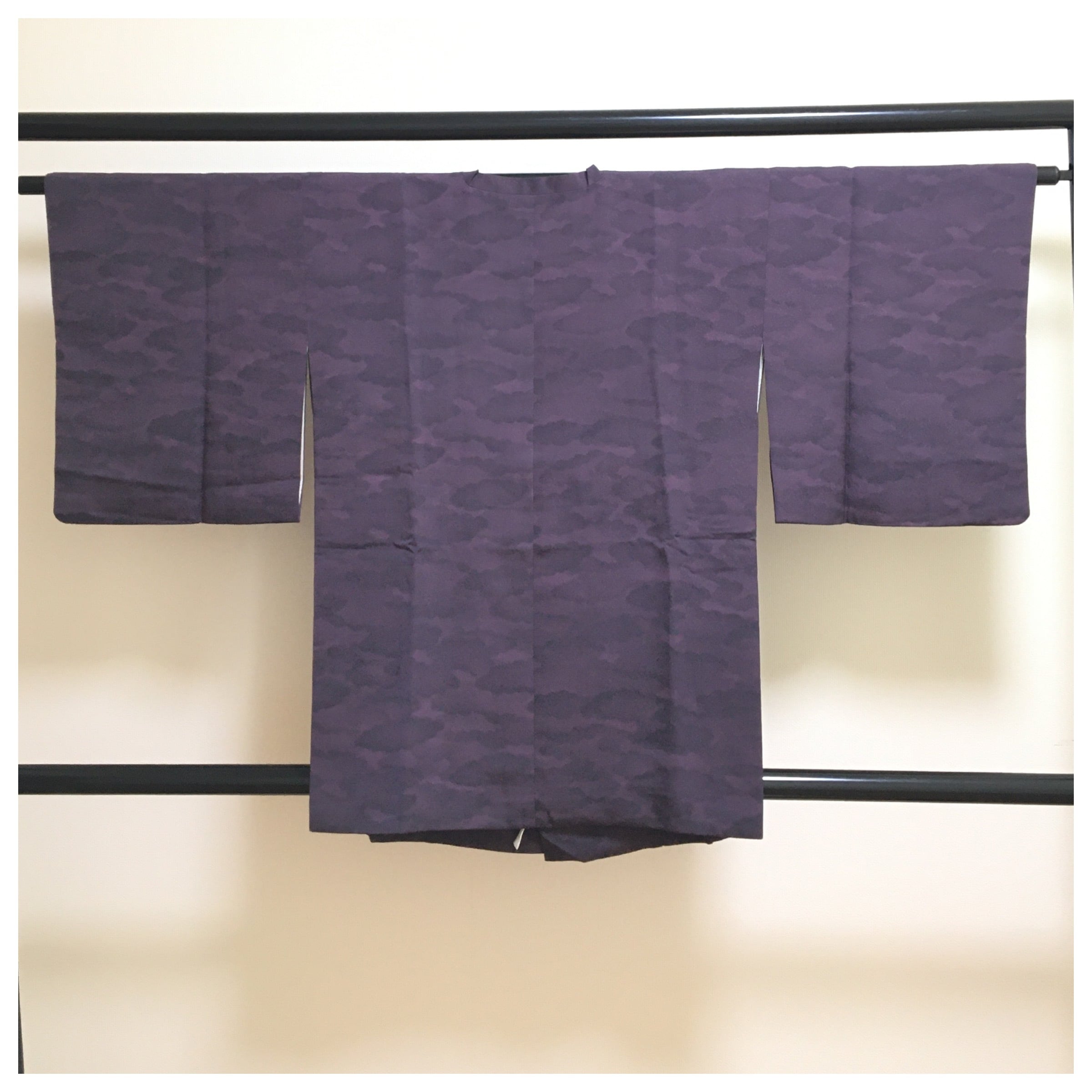 落ち着いた紫に雲取り柄をデザインした道行コートです。